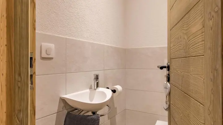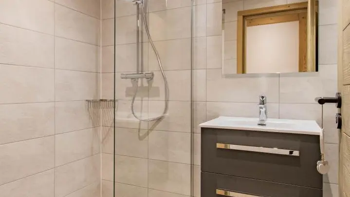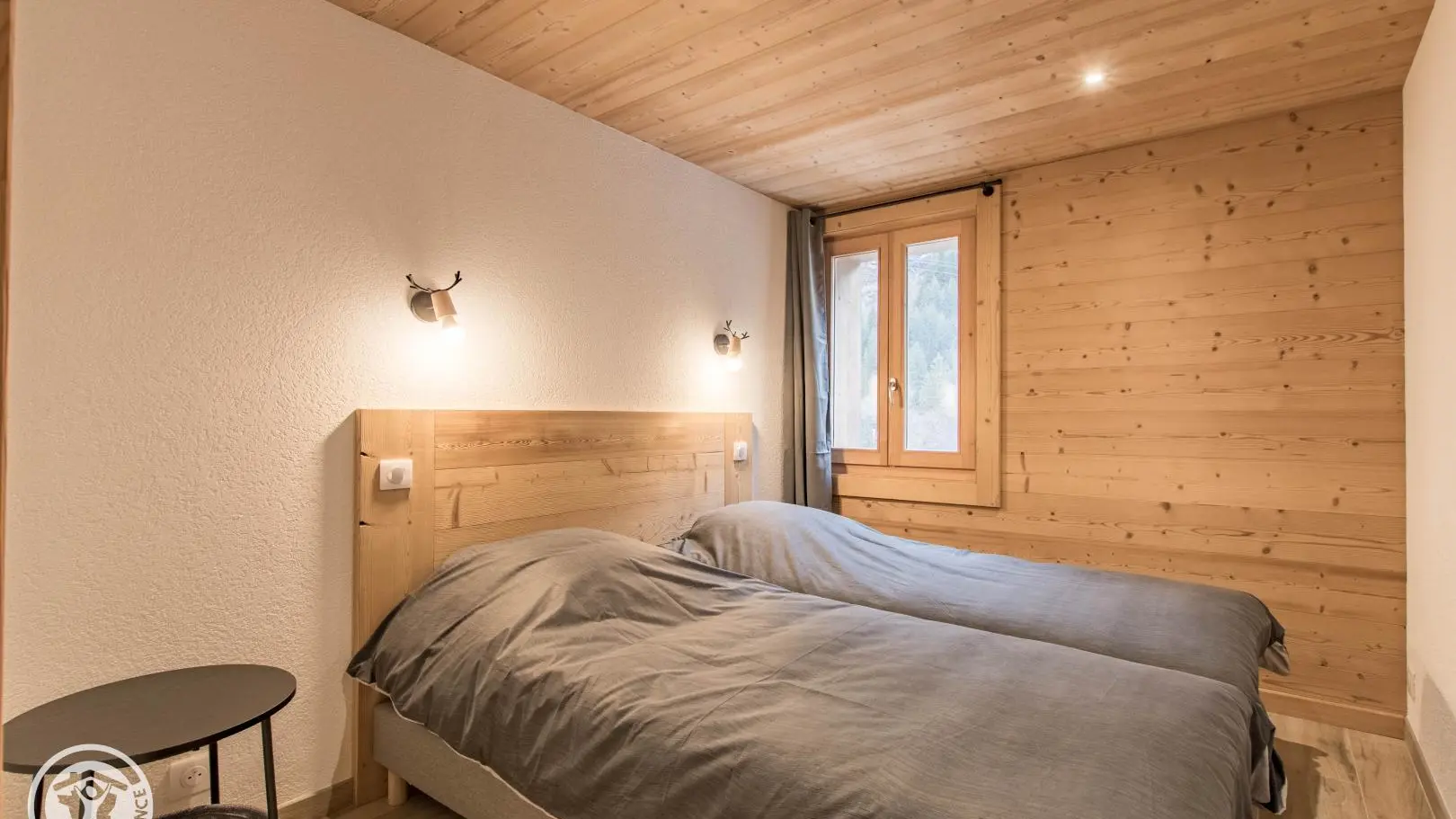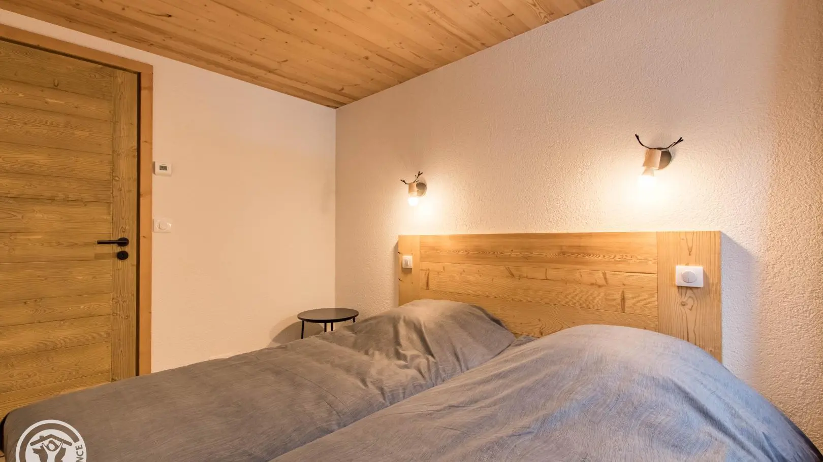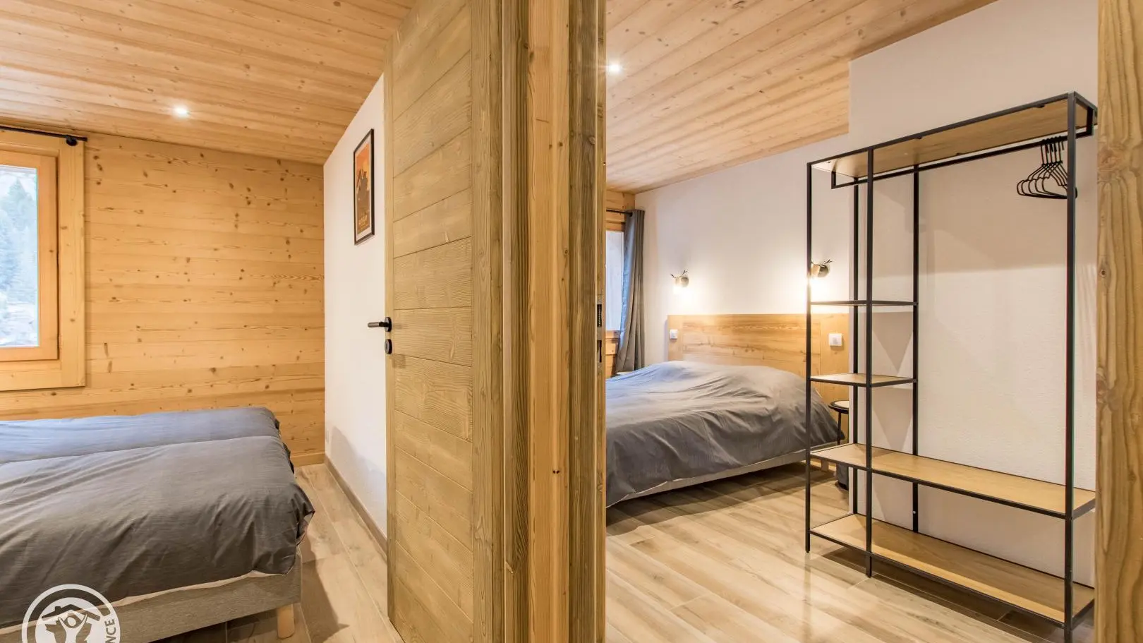 Chambre 1 (1 lit 160x200cm, salle d'eau avec vasque, douche à l'italienne, wc), chambre 2 (2 lits 90x190cm jumelables permettant de créer un lit double sur demande), coin montagne sans fenêtre (1 lit 90x190cm et 1 lit 90x190cm mezzanine). Salle d'eau avec vasque, douche à l'italienne. 1 wc indépendant. Buanderie avec lave-linge.