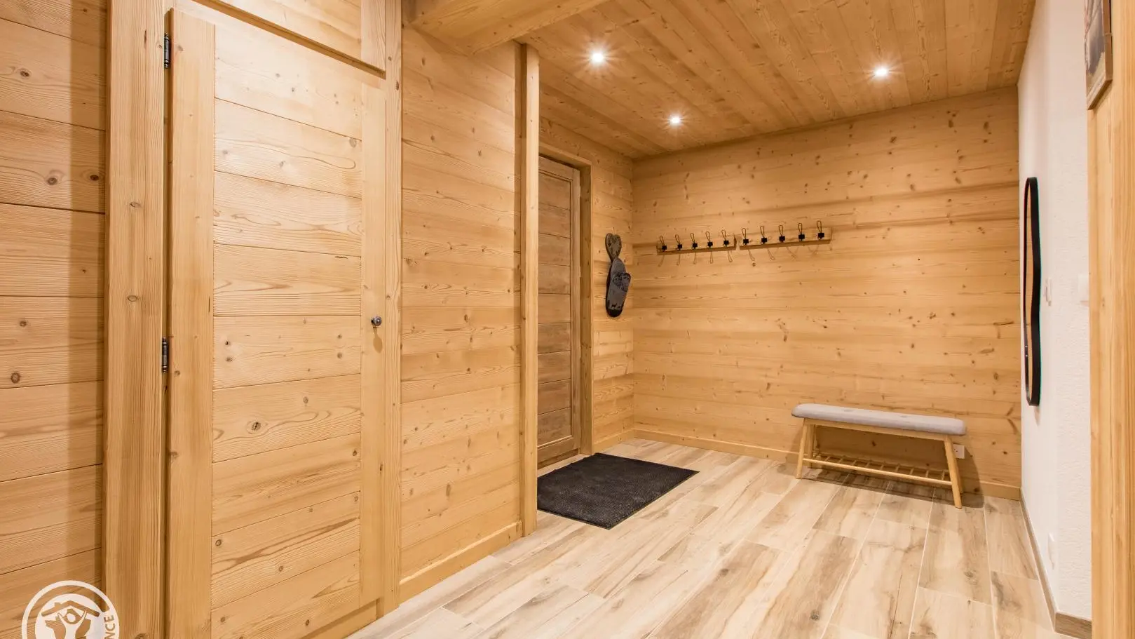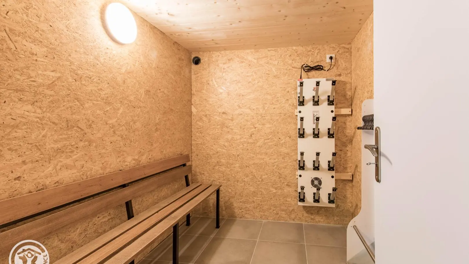 Local rangement vélos, poussettes.... Skiroom avec sèche-chaussures électrique et rack skis.