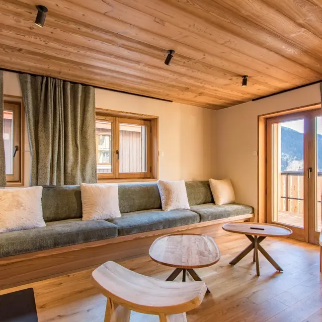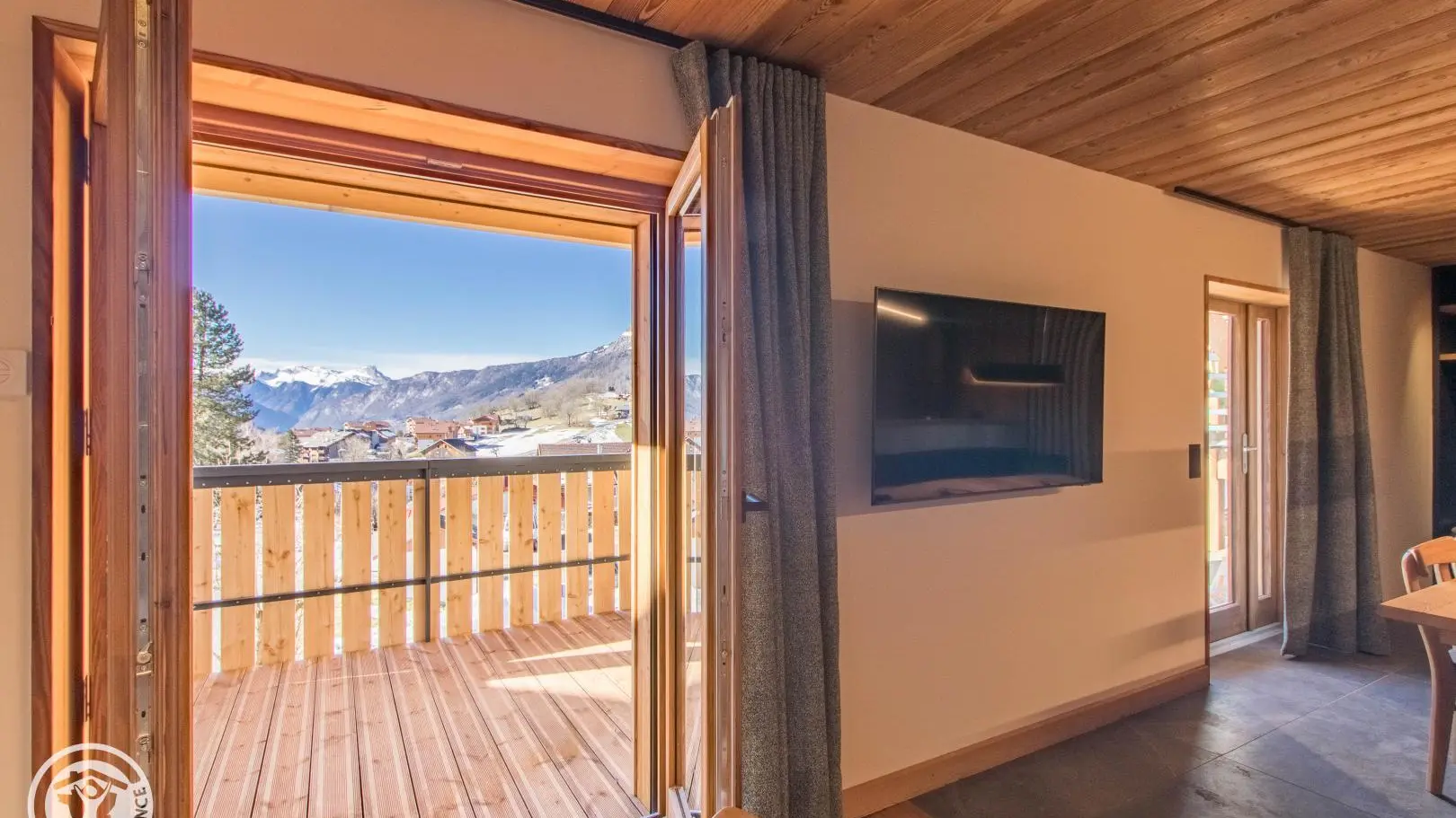 Exterieur : garage et balcon. Accès gratuit à la piscine en été. Accès gratuit au Chalet à Bulles (réservation sur planning horaires à voir avec la réception de l'Hôtel Beau Site).