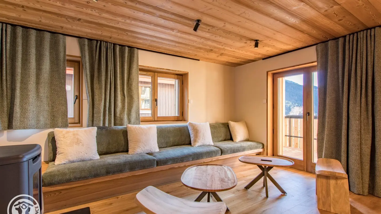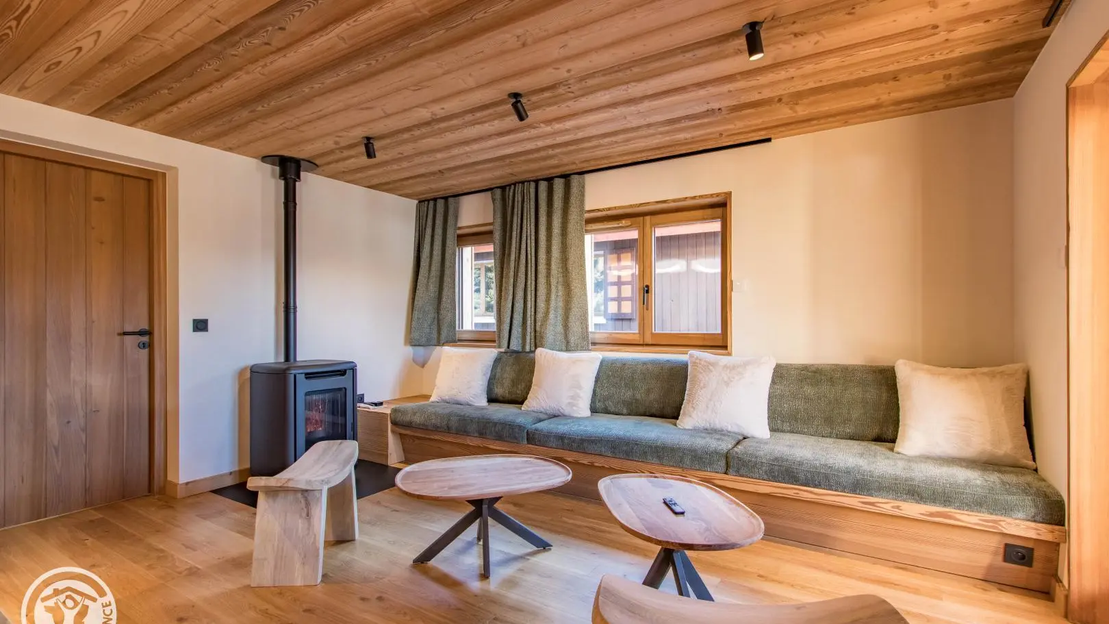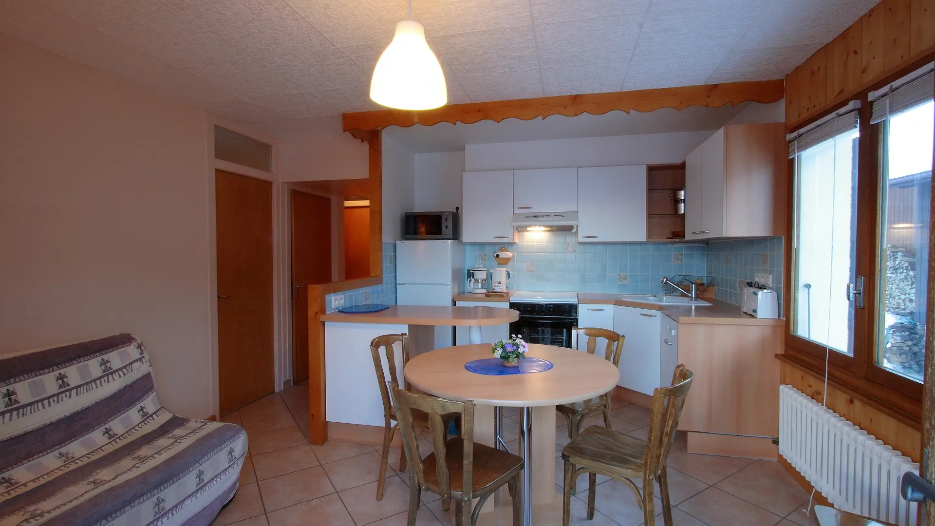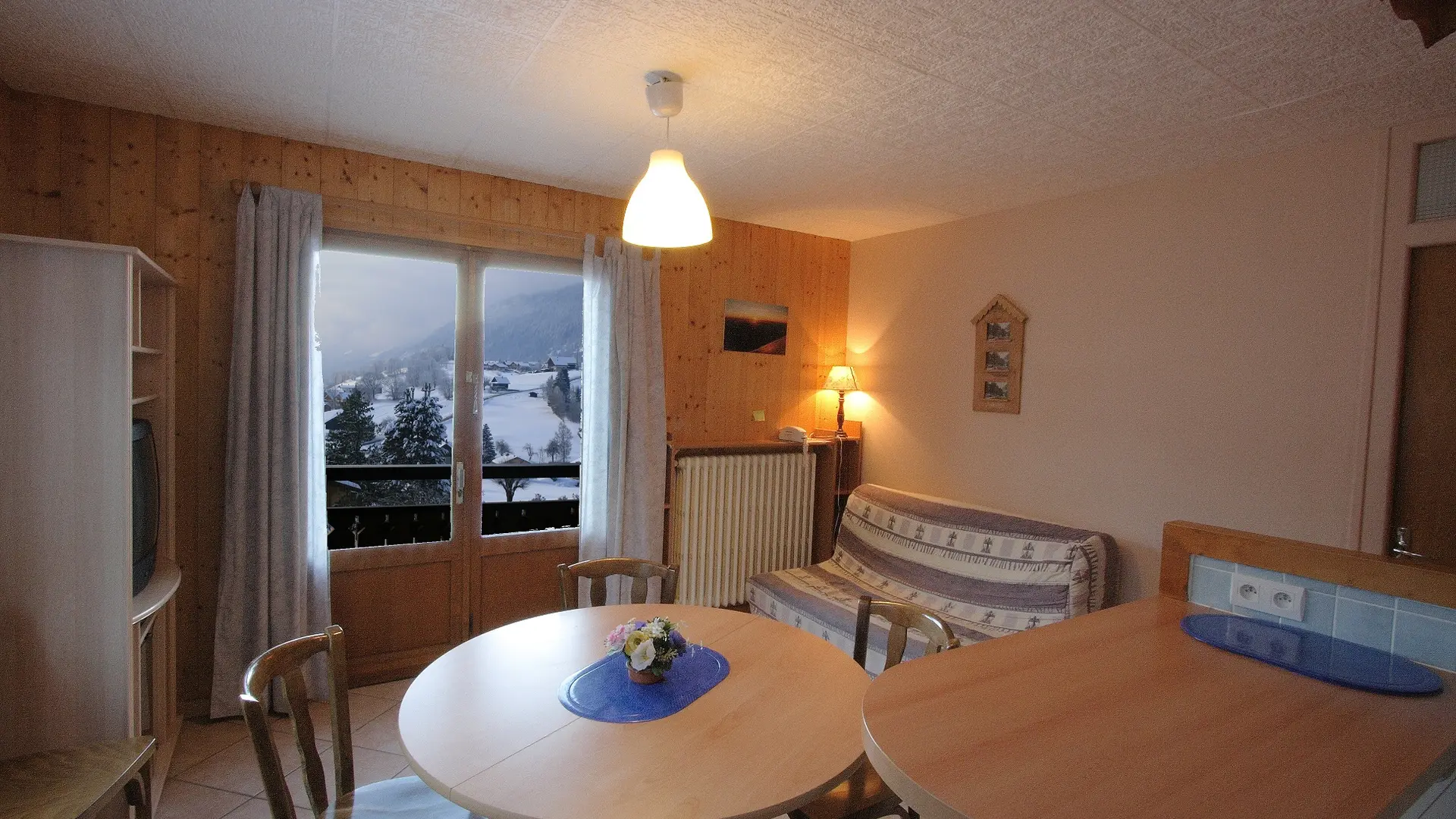 Appartement (de 44m²)exposition Sud-Ouest (très bon ensoleillement) face à la vallée de Thônes, situé au 1er étage du Chalet Chantoiseau. 300 mètres du centre du village. Liaison ski La Clusaz et Grand Bornand, par navettes gratuites.