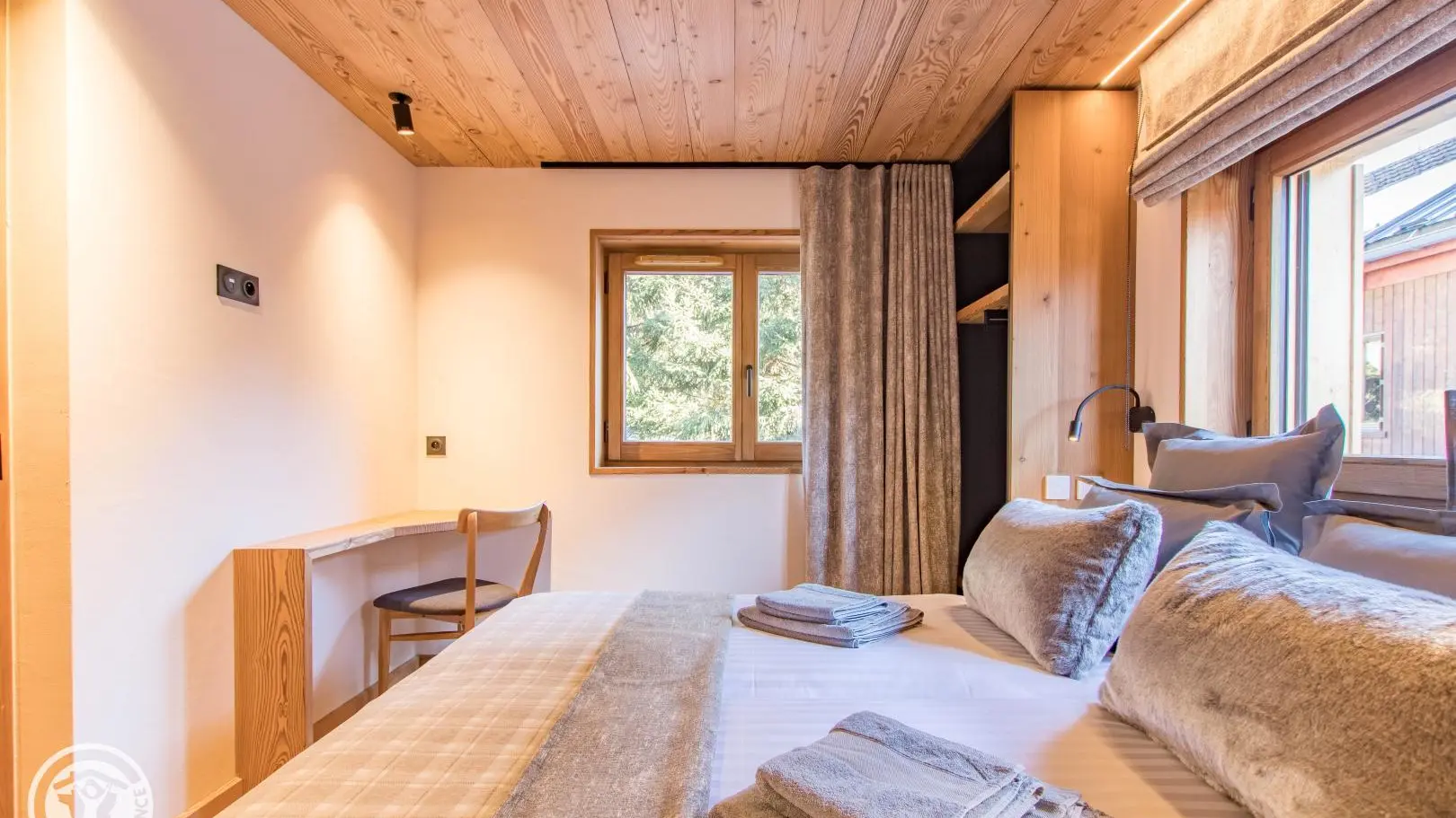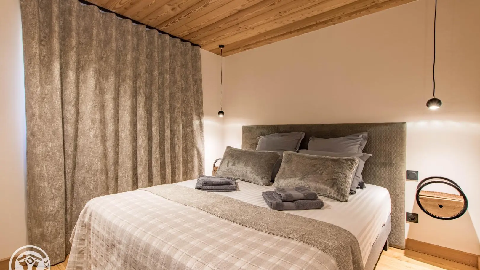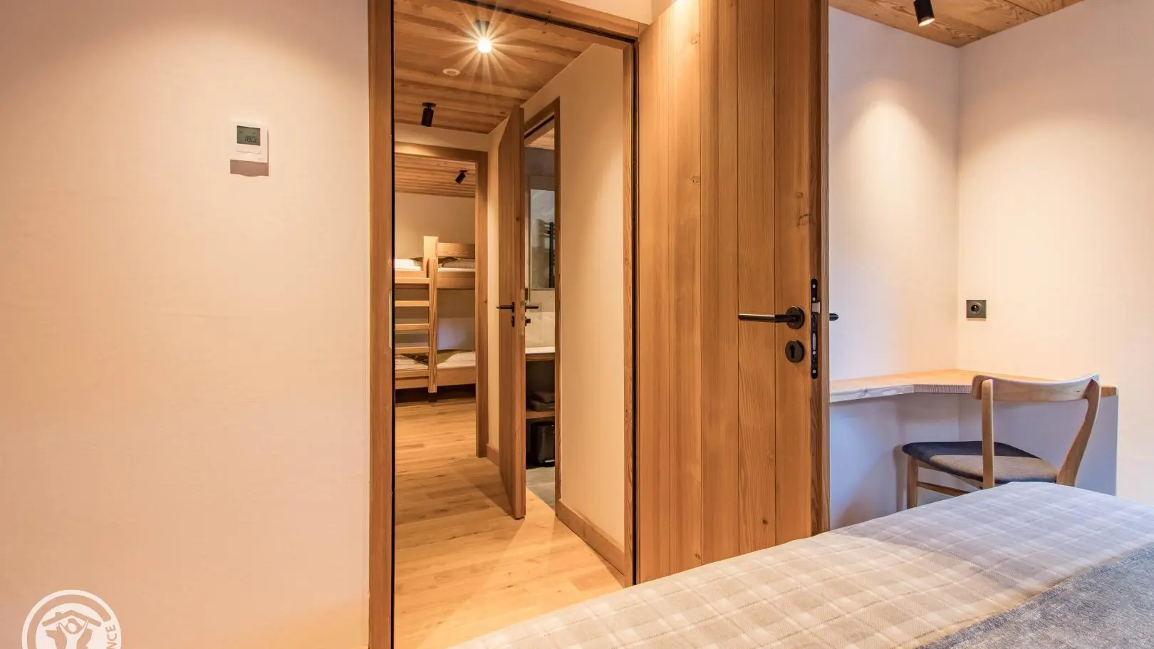 2 chambres séparées : 1 chambre double(1 lit 140) et une chambre triple (1 lit 140, 1 lit 90).