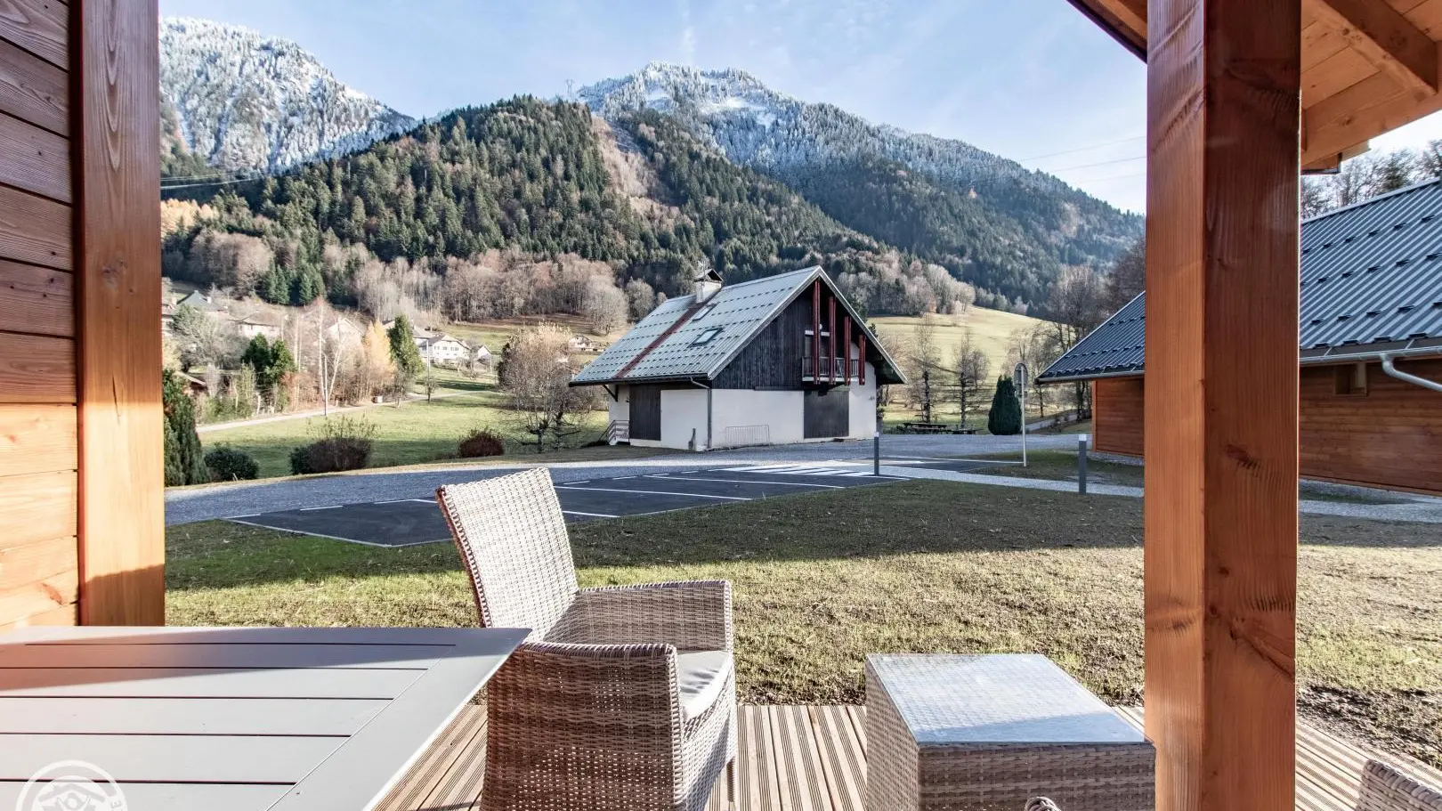 Terrasse privative accessible depuis porte fenêtre du salon avec mobilier d'extérieur. Randos à proximité, Abbaye de Tamié 4 km, Ski: stations des Aravis 35Km (La Clusaz, le Grand Bornand, La croix Fry Merdassier), navette l'été depuis Faverges. Lac d'Annecy, Doussard 14 km.