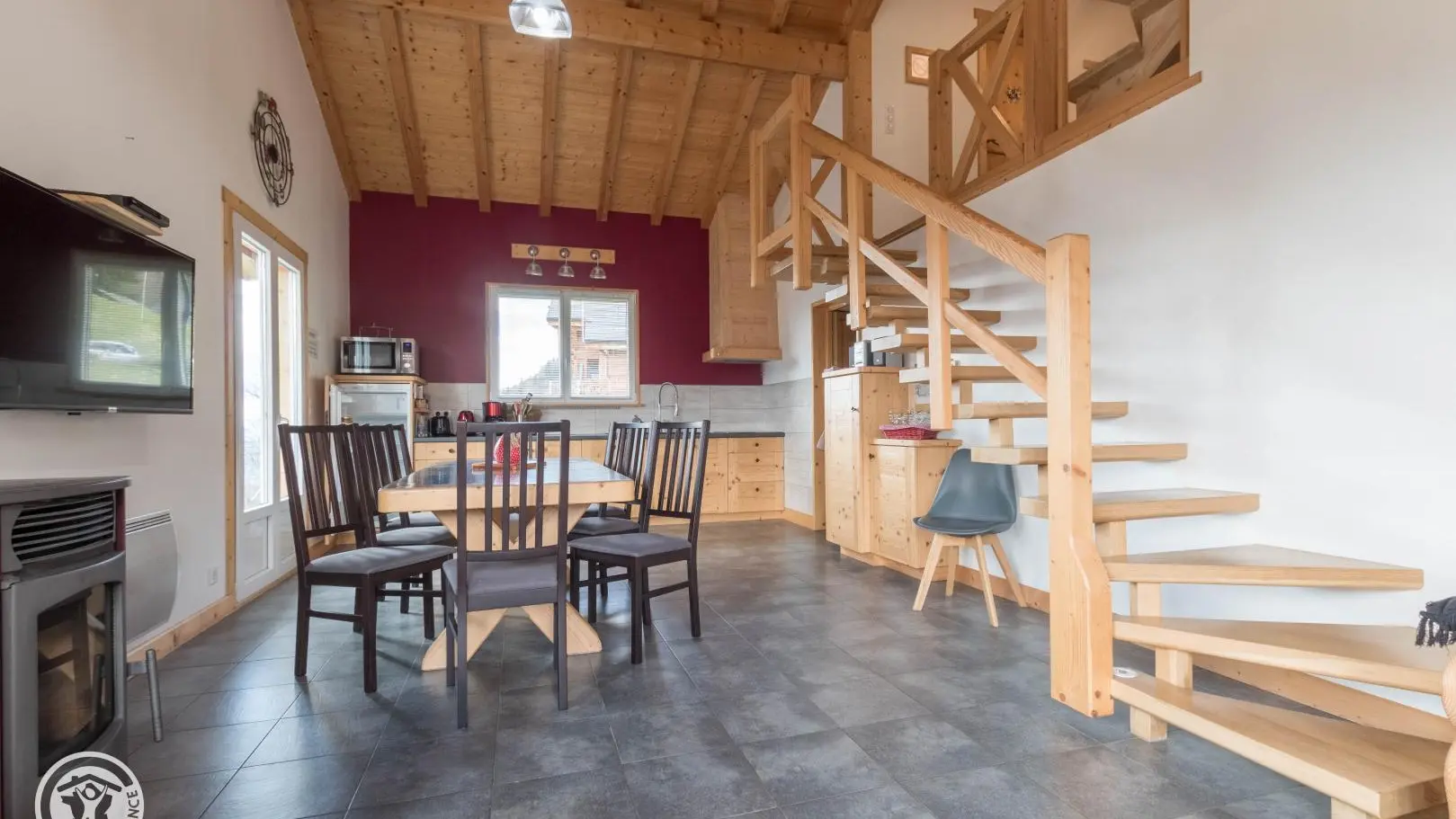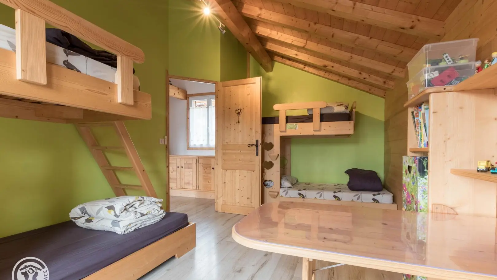 Très belle terrasse accessible depuis ce niveau avec salon de jardin, store, barbecue, transats. Au 1er étage du chalet (depuis l'entrée) : chambre 2 (4 lits 90x190cm superposés), chambre 3 (1 lit 140x190cm), salle d'eau (douche, wc). Les draps sont inclus. Parking : places derrière le chalet, ou dans une cour située juste à côté du chalet. Pour le ski : remontées mécaniques de Morillon à 5km (domaine skiable du Grand Massif reliant les stations Samoëns, Morillon, Les Carroz, Flaine).