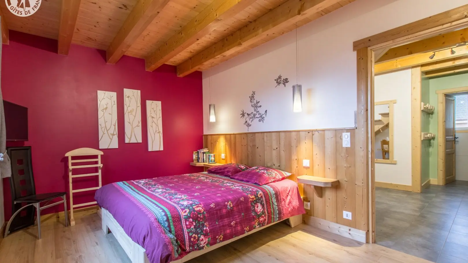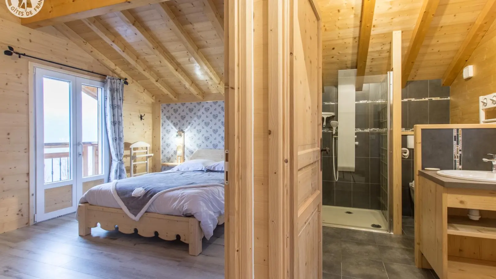 Entrée sur l'arrière du chalet. Au niveau de l'entrée (rez-de-chaussée) : vaste hall avec bureau, chambre 1 (1 lit 160x200cm), salle d'eau (douche à l'italienne), wc indépendant.