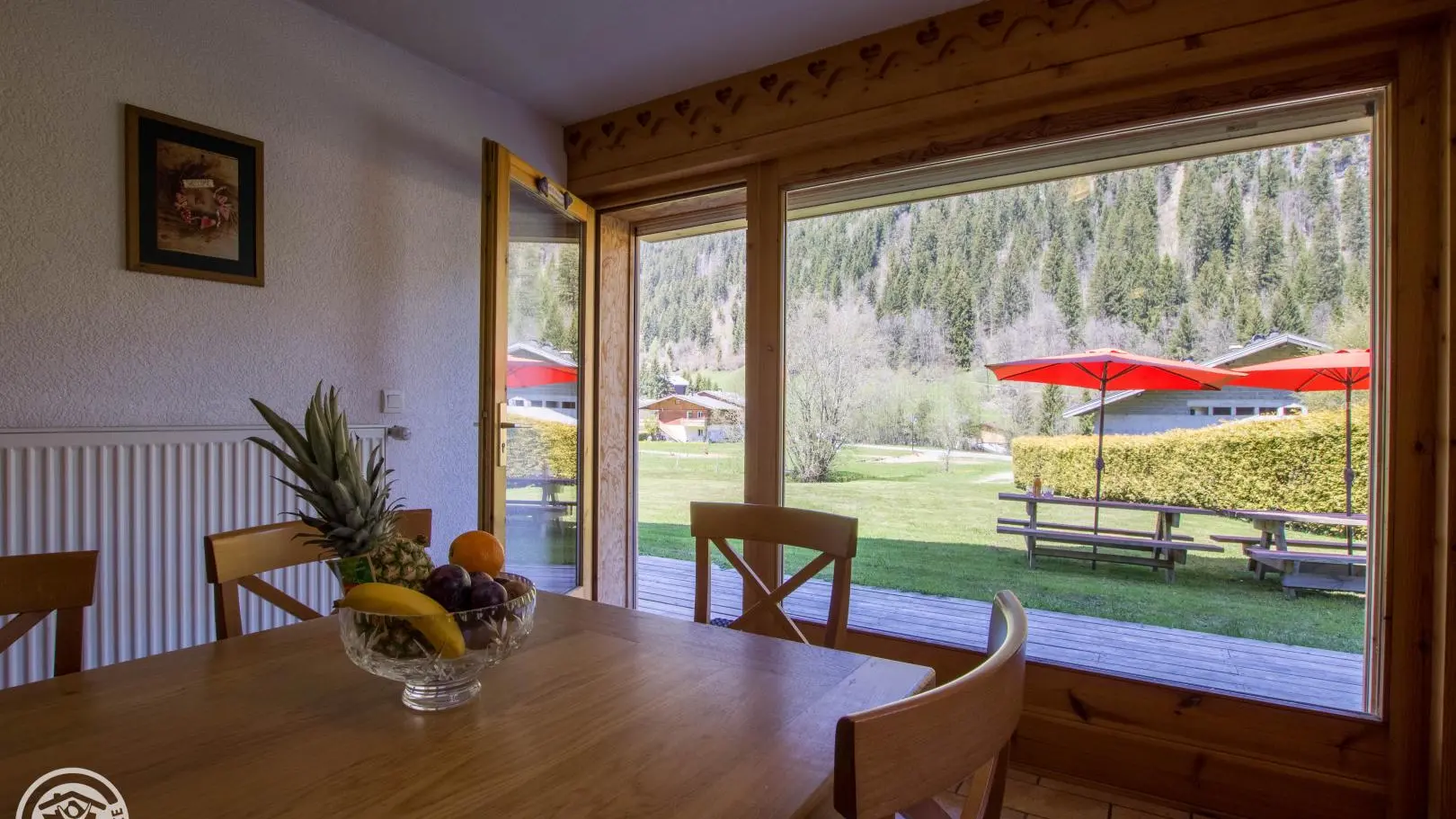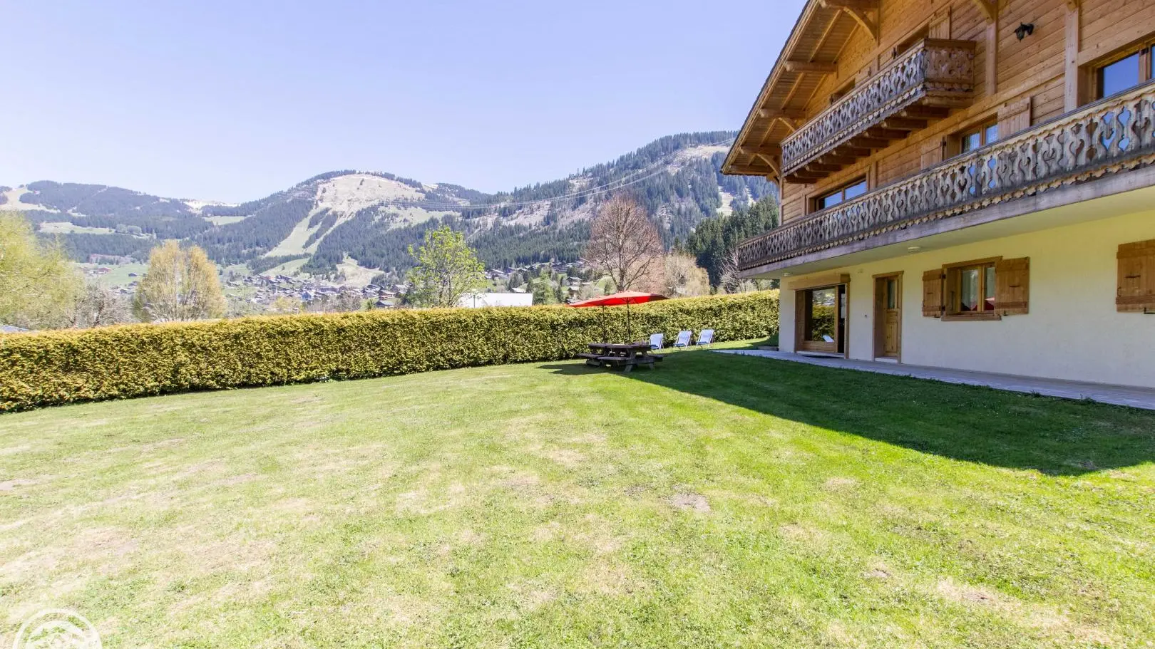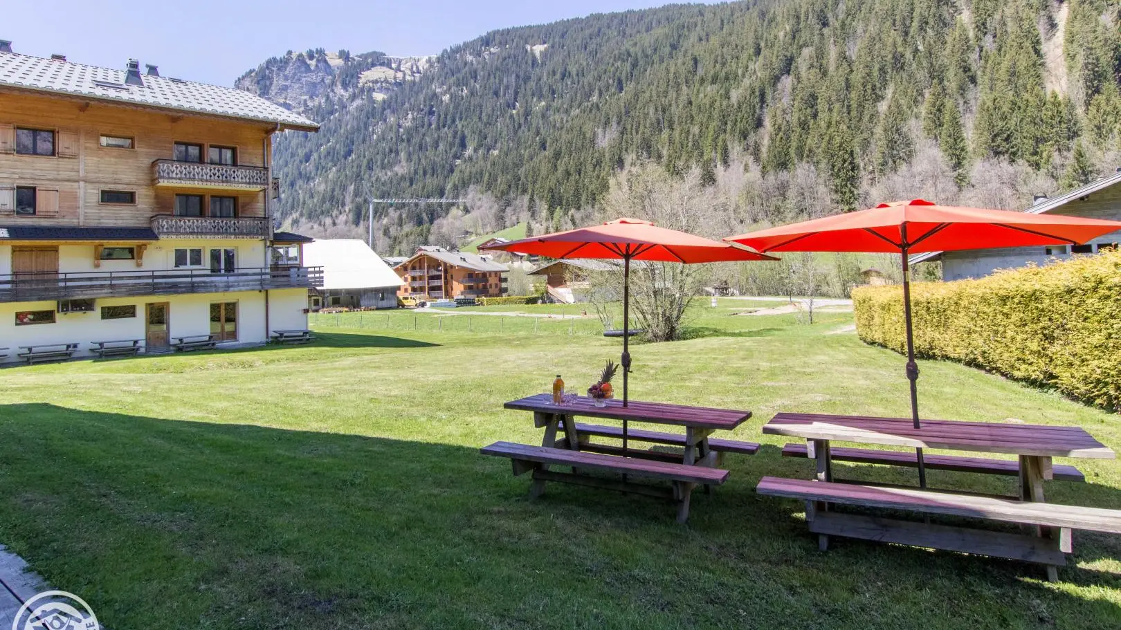 Terrasse et jardin avec tables forestières, transats. Le terrain/jardin devant le chalet est commun aux 2 gîtes. Barbecue. Parking privatif. Local skis / vélos commun avec sèche-chaussures électrique. Un petit ruisseau longe la propriété.
