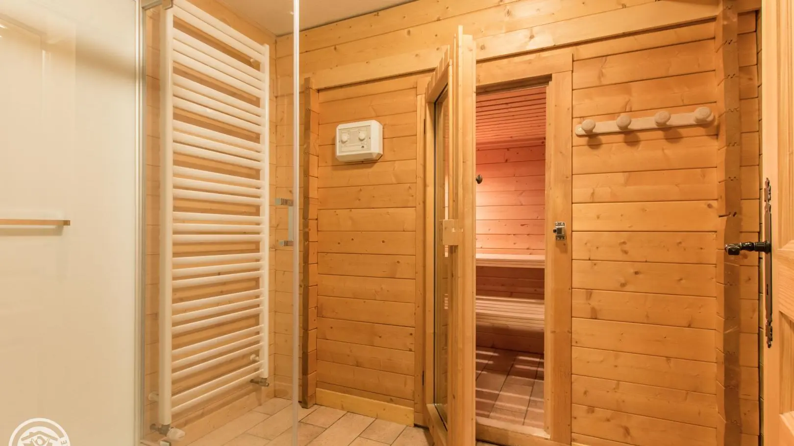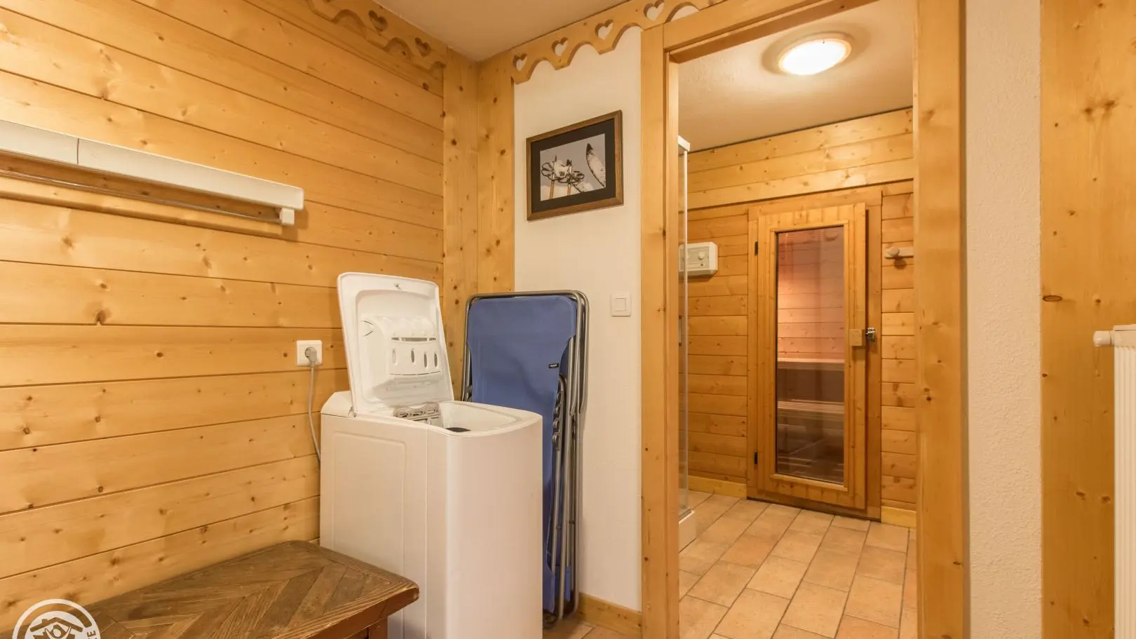 Cellier/buanderie avec lave-linge et espace sauna + douche, dans le gîte. Accès internet wifi. Possibilité de location de draps et de linge de toilette.