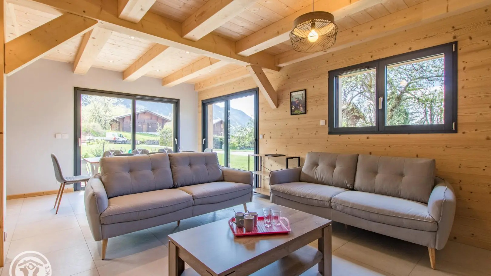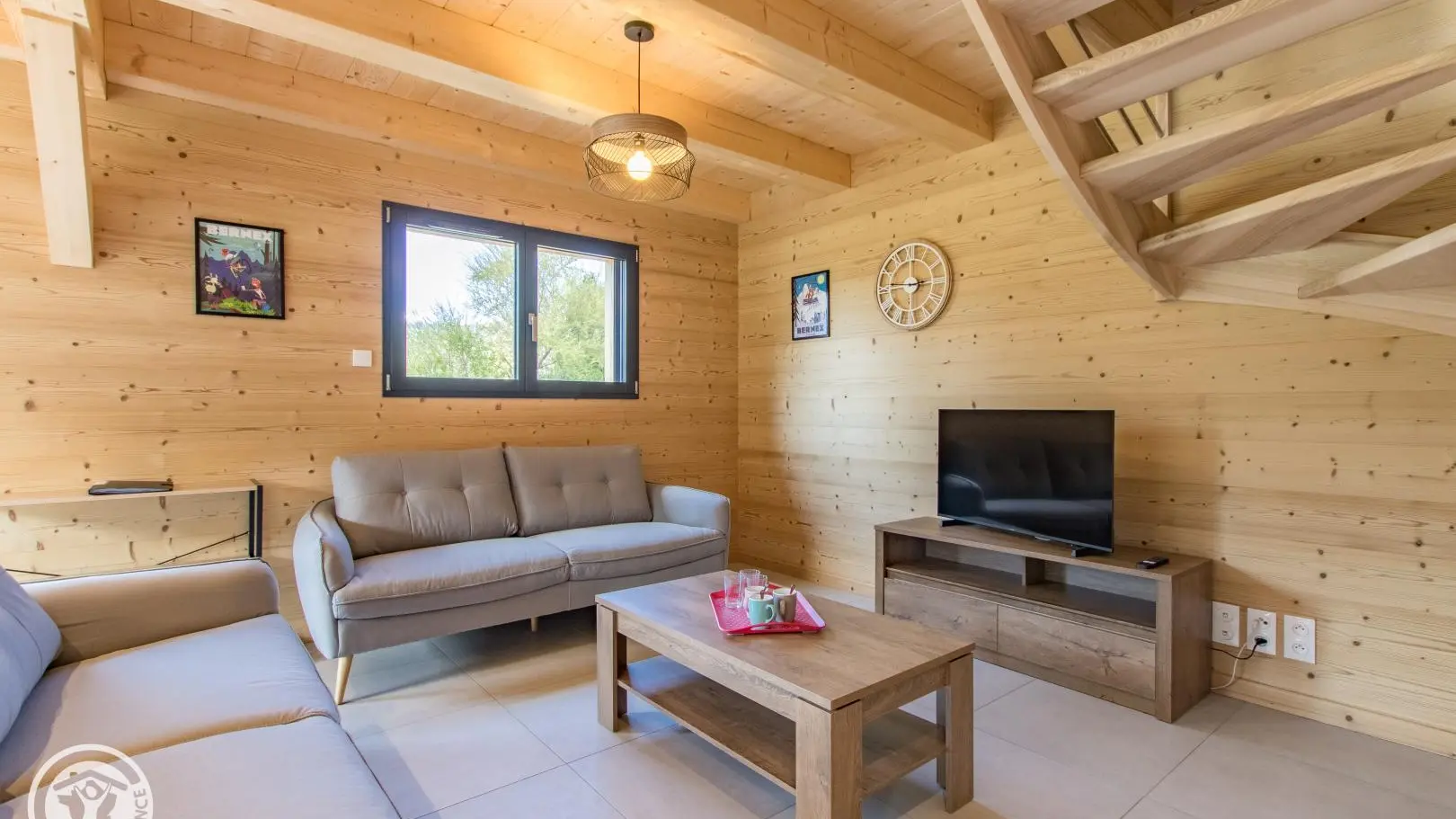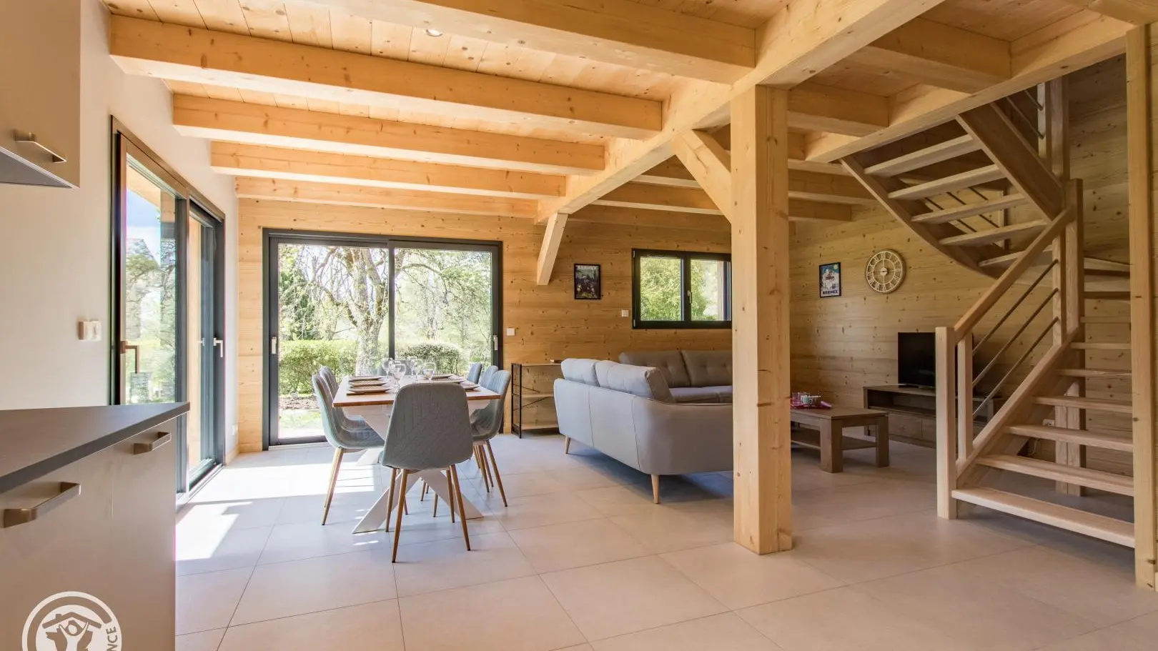 Chalet indépendant lumineux de 87m² aménagé sur 2 niveaux, dans une grande propriété familiale (chalet voisin comprenant également le gîte référencé 33030).