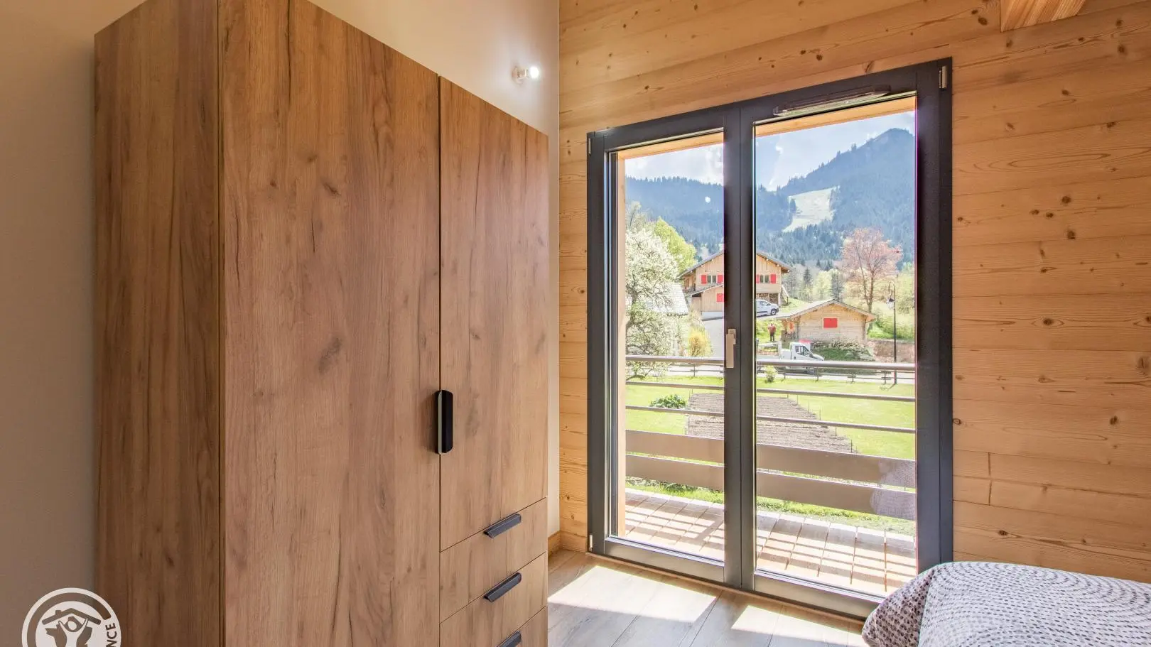 Cour, parking privé à côté du chalet. Local à skis/vélos privatif.