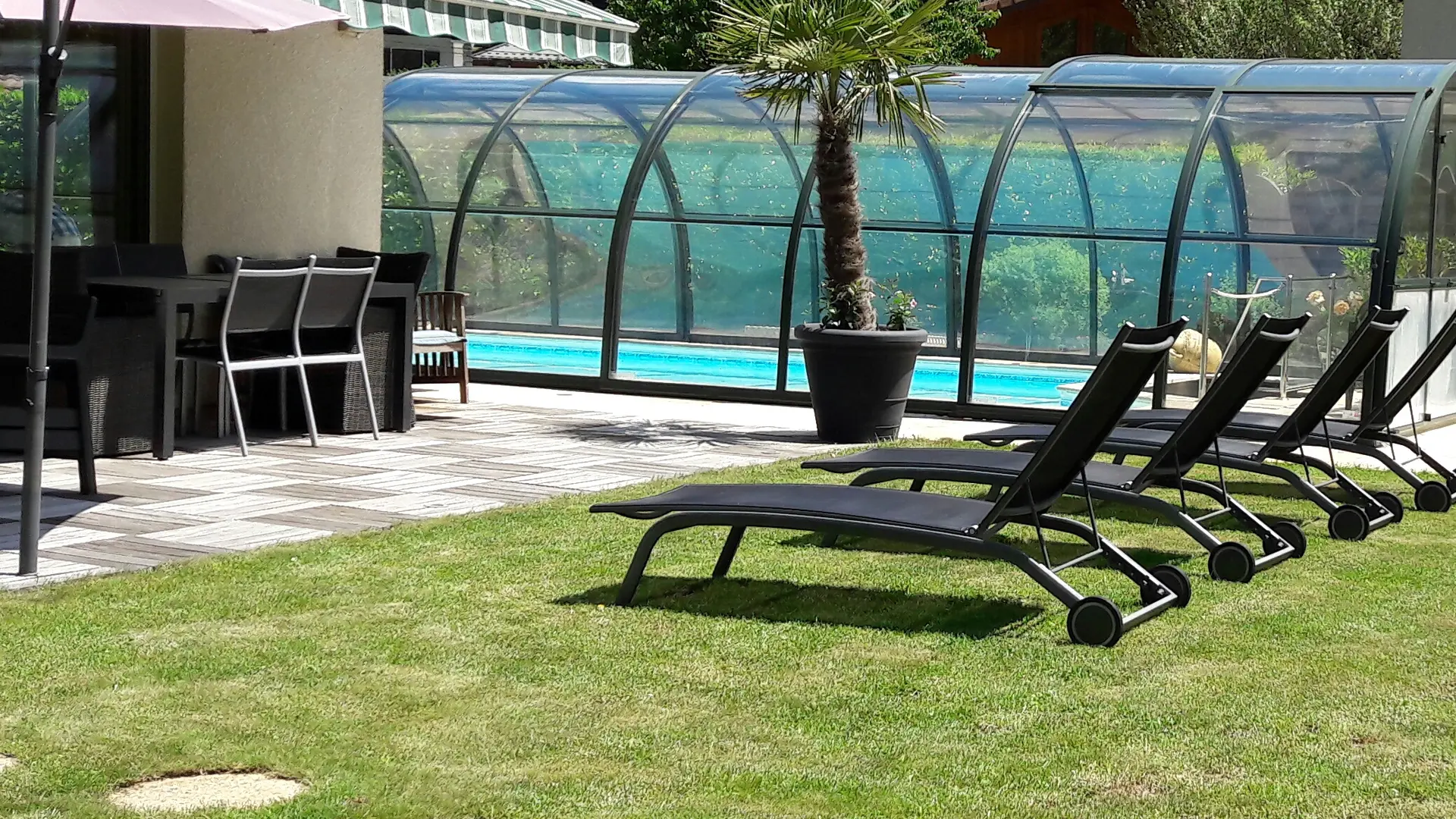 Chalet indépendant tout confort avec piscine entre lac et montagnes.