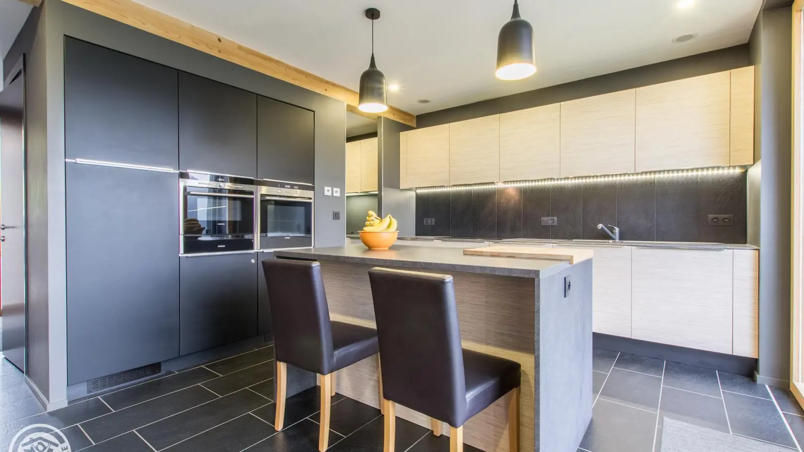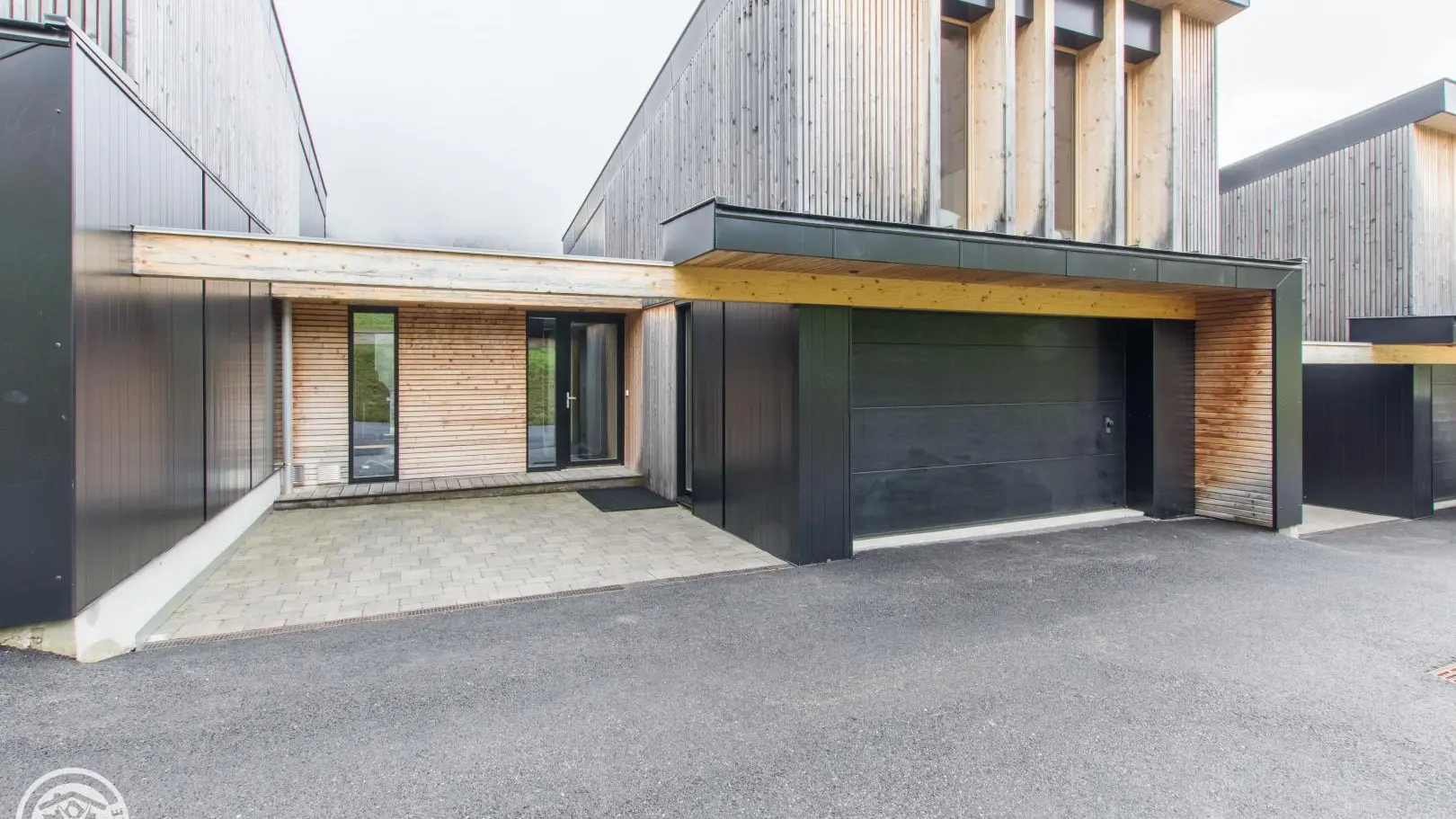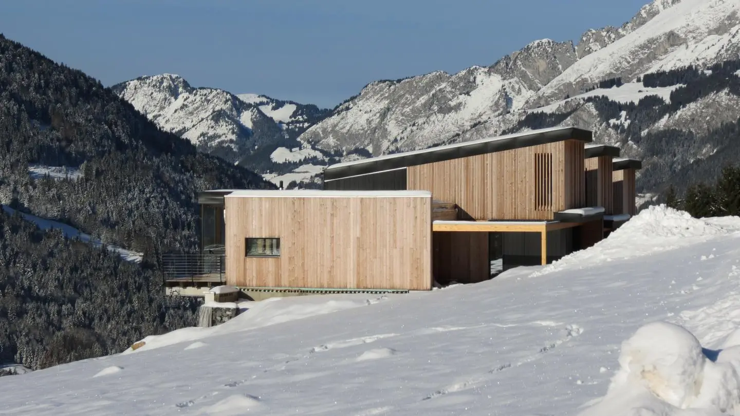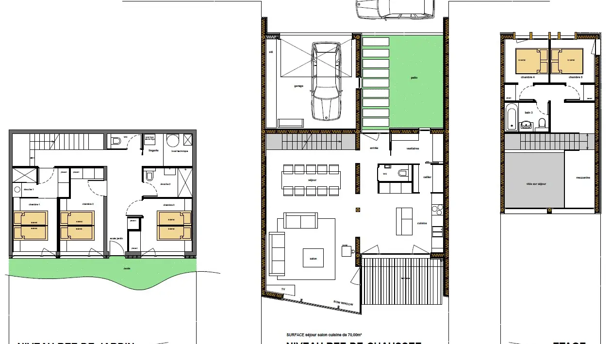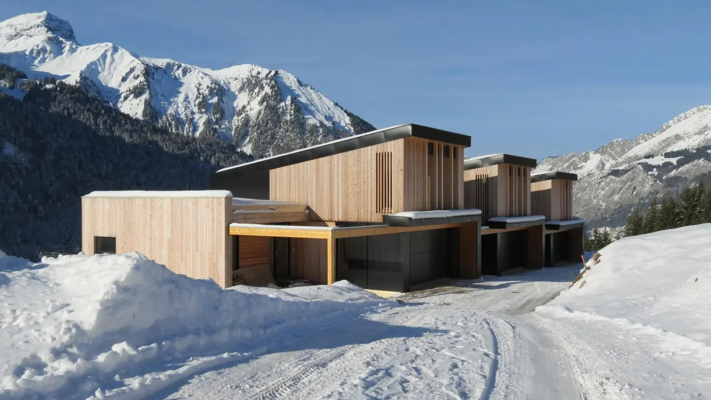 Chalet d'architecte mitoyen de 150m² orienté plein sud (ensemble de 3 logement mitoyens : 1 location et 2 logements occupés par la famille du propriétaire) aménagé sur 3 niveaux dans un style contemporain. Secteur calme. Piscine privative, garage.