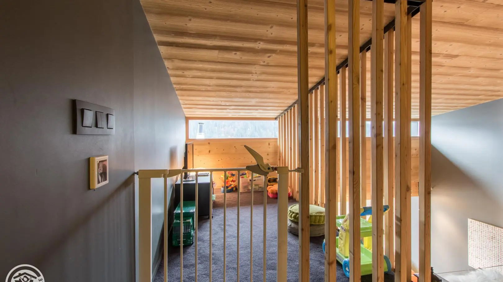 1er étage : espace jeux en mezzanine (télévision, jeux enfants), 2 petites chambres avec chacune 1 lit 140x190cm, salle de bains/wc (baignoire).