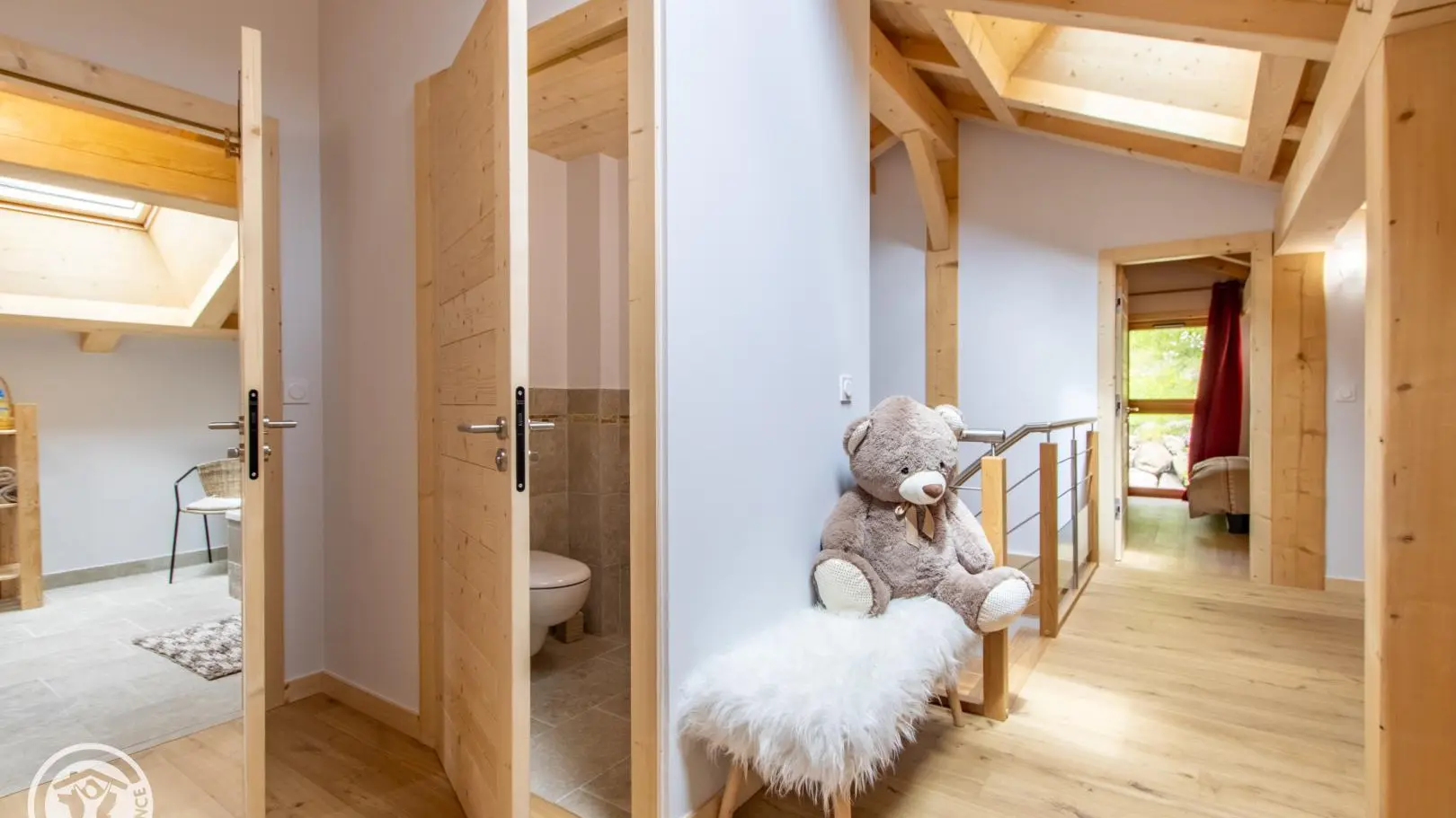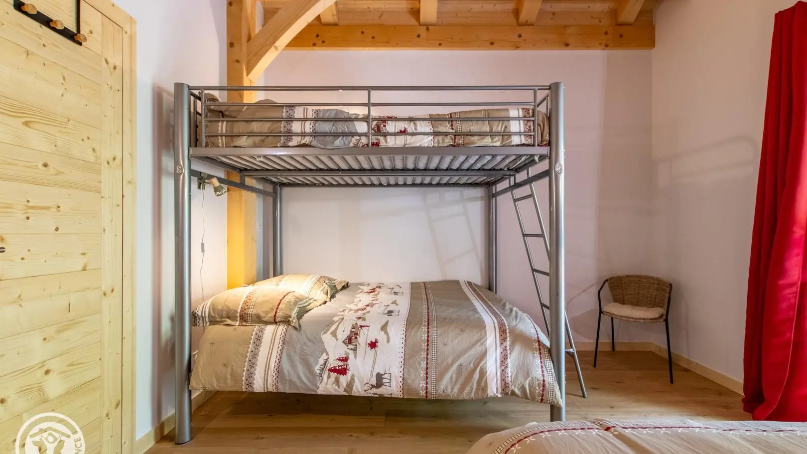 - Chambre 3 : 1 lit 140x200cm et 2 lits 140x190cm superposés.