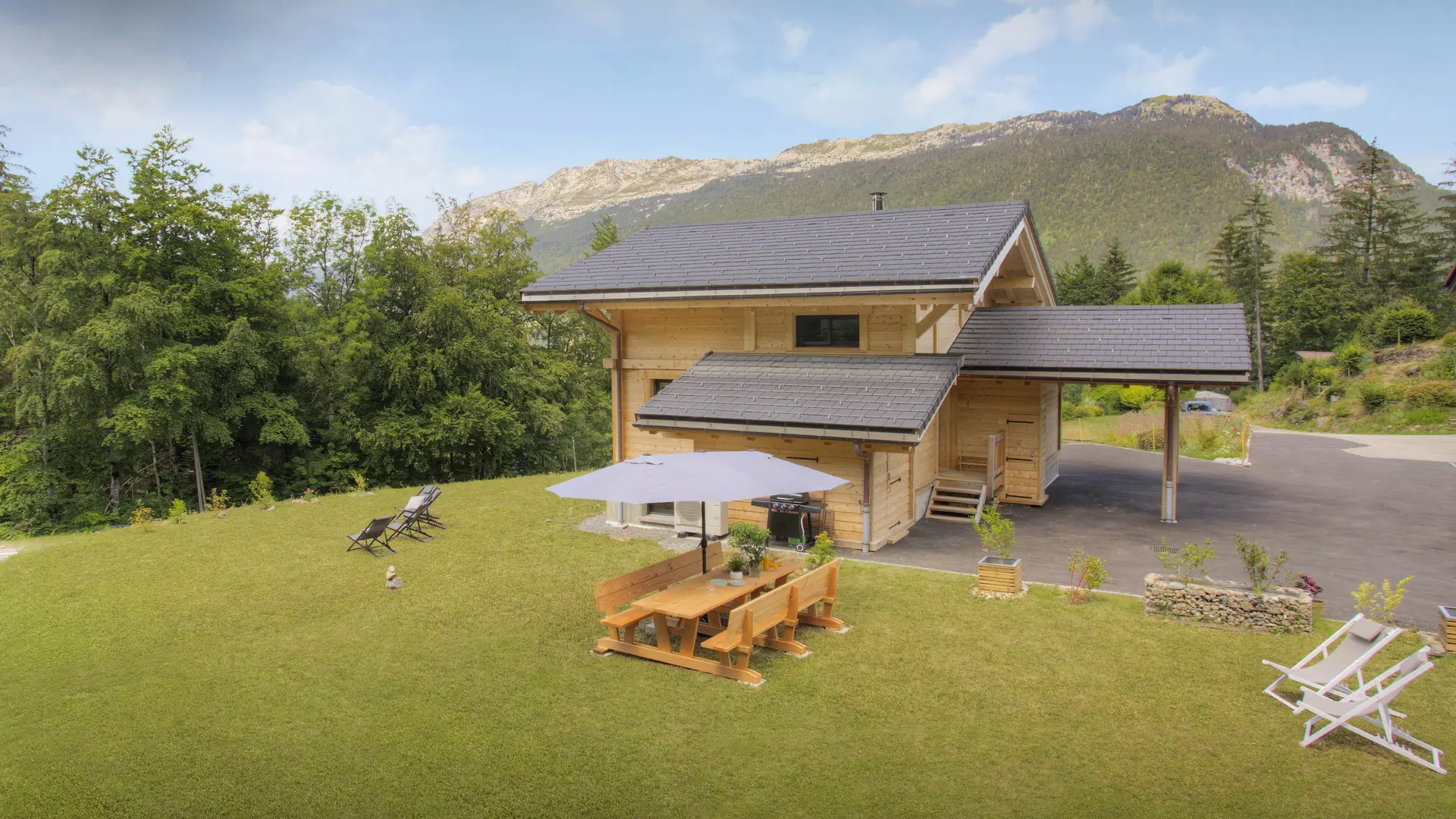 Chalet pour 14 personnes avec salle de jeux, terrasse et jardin.