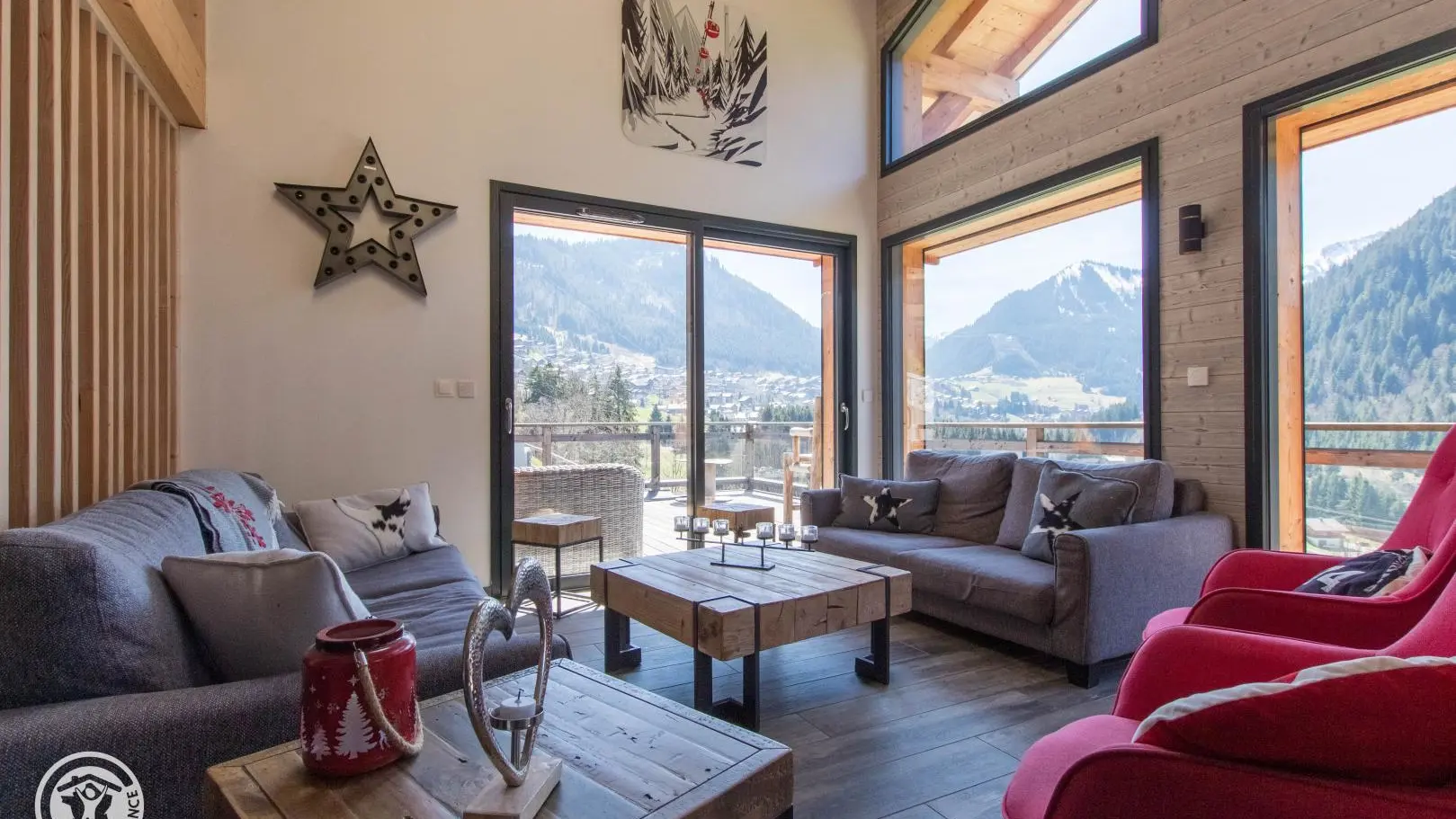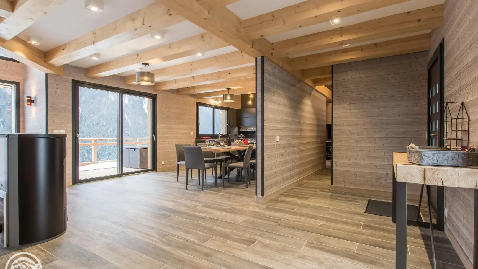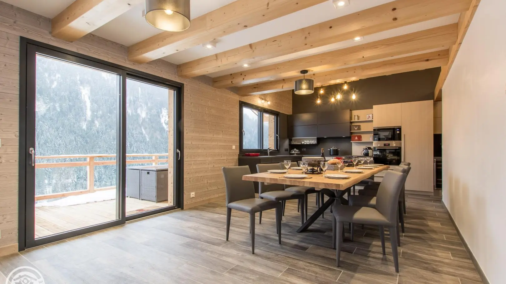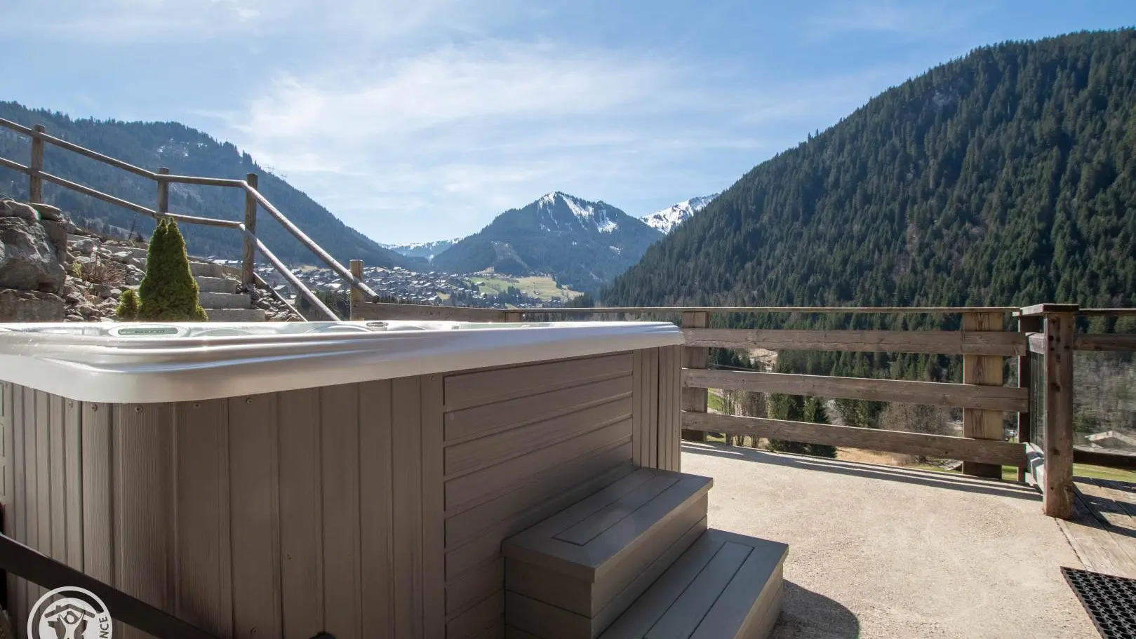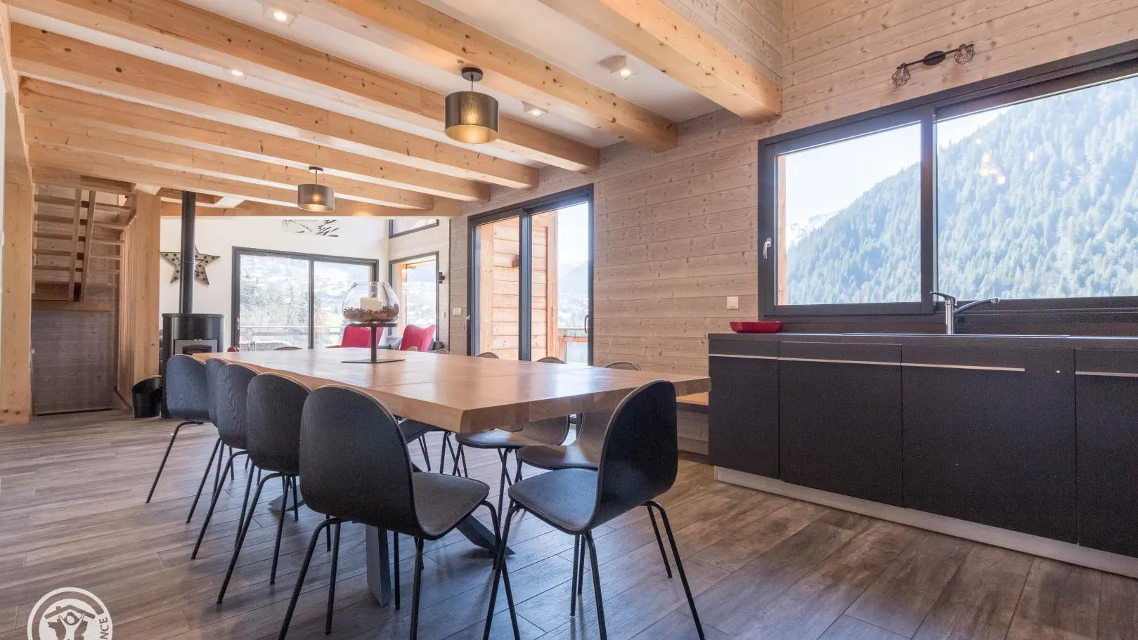 Magnifique chalet indépendant de 190m² aménagé sur 3 niveaux, avec spa sur la terrasse. Exceptionnel panorama sur les montagnes et le village de Chatel. Rez-de-chaussée : hall d'entrée, grande pièce à vivre lumineuse avec nombreuses ouvertures : cuisine intégrée ouverte sur séjour, poêle à granulés, tv, grande table pour les repas, cave à vin, cellier, accès terrasse et balcon. WC indépendant.