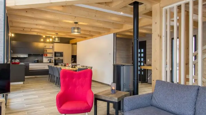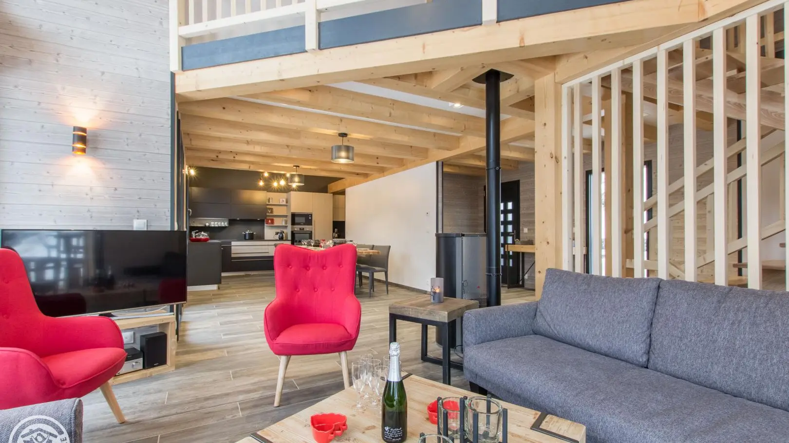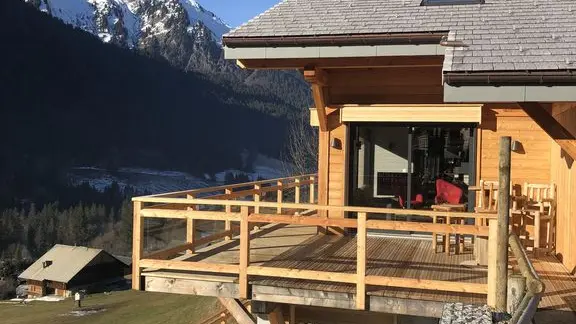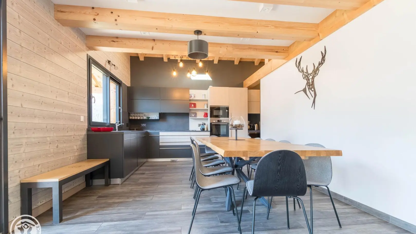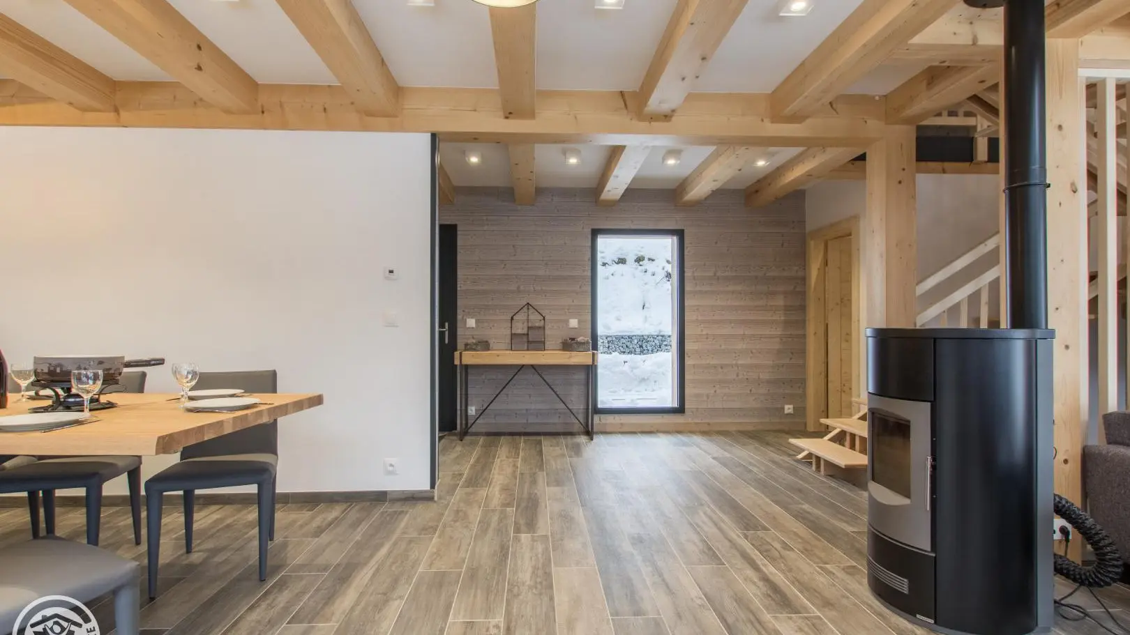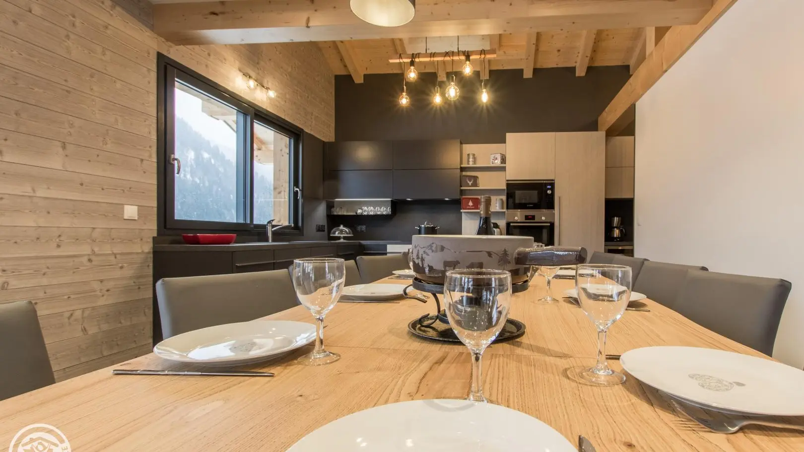 Magnifique chalet indépendant de 190m² aménagé sur 3 niveaux, avec spa sur la terrasse. Exceptionnel panorama sur les montagnes et le village de Chatel. Rez-de-chaussée : hall d'entrée, grande pièce à vivre lumineuse avec nombreuses ouvertures : cuisine intégrée ouverte sur séjour, poêle à granulés, tv, grande table pour les repas, cave à vin, cellier, accès terrasse et balcon. WC indépendant.