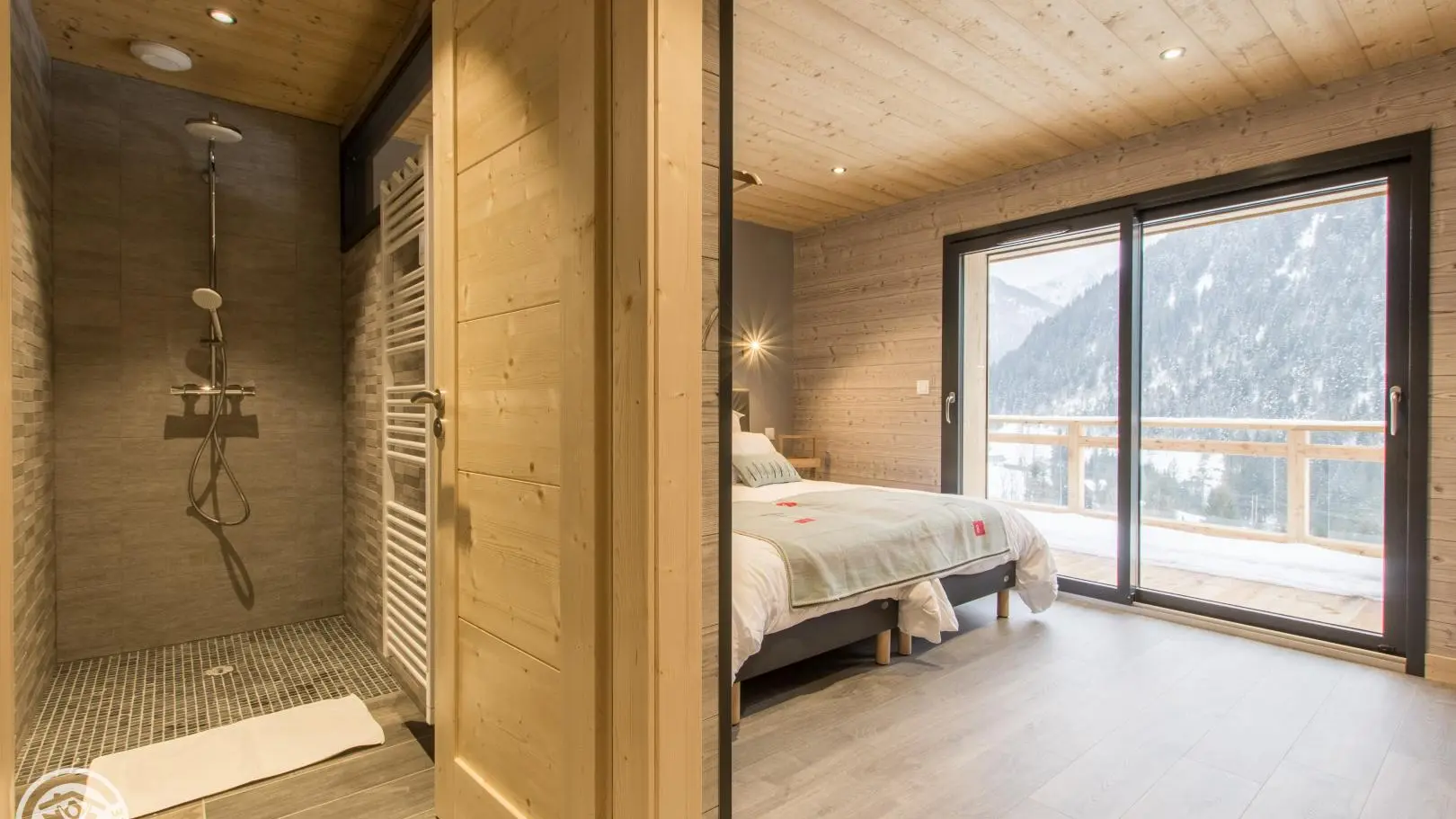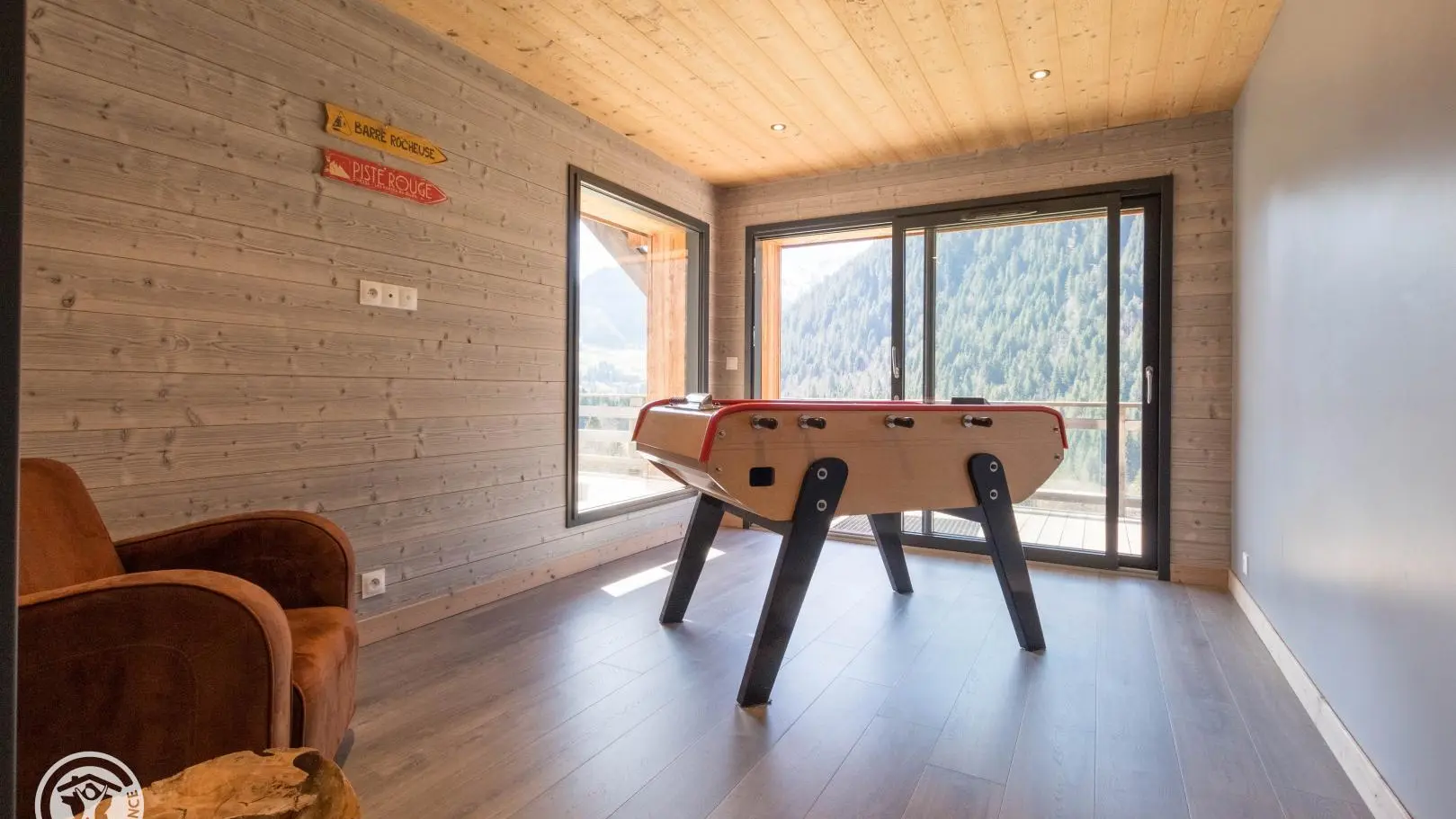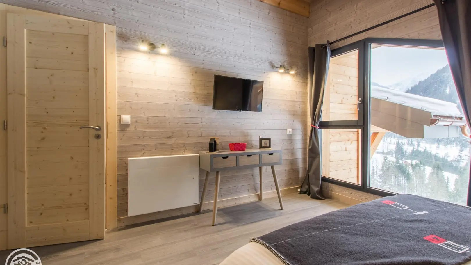 Rez-de-jardin (partie basse du chalet) : chambre 2 et 3 avec chacune 2 lits 90x200 jumelables pouvant créer 1 lit double, salle d'eau avec douche à l'italienne et wc, chambre 4 (2 lits 90x200 jumelables pouvant créer 1 lit double, tv), chambre 5 (4 lits : 2 x 2 lits 90x200 superposés), salle d'eau (douche à l'italienne), WC indépendant. Salle détente - repos donnant sur la terrasse équipée d'un SPA. Coin buanderie avec lave-linge. Draps fournis. Linge de toilette en location. Salon de jardin, barbecue. Cour, parking privatifs. Local skis (sèche-chaussures) + vélos. Chauffage aérothermie. Centre de la station à 900m, remontées mécaniques pour le ski à 1,2km. Arrêt navette gratuite sur place. Suisse à 5km (Morgins). Nombreuses randos à proximité. Lac Léman, Evian-les-Bains à 35km. Thermes à Evian, Thonon-les-Bains ou en Suisse (Val d'Hilliez à 16km). Multipass Portes du Soleil inclus dans le tarif (saison été).