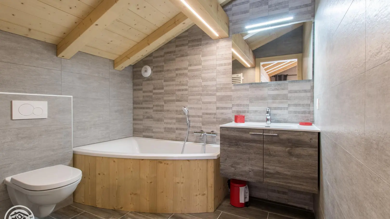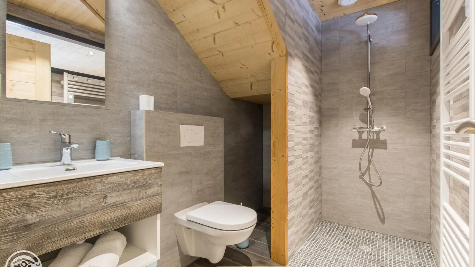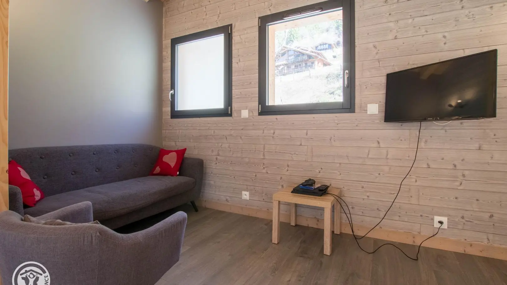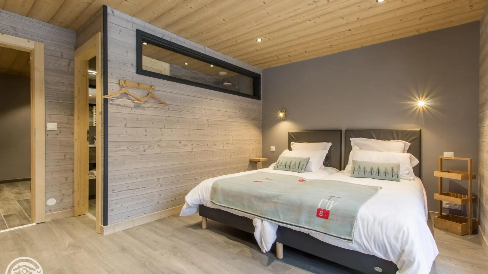 Rez-de-jardin (partie basse du chalet) : chambre 2 et 3 avec chacune 2 lits 90x200 jumelables pouvant créer 1 lit double, salle d'eau avec douche à l'italienne et wc, chambre 4 (2 lits 90x200 jumelables pouvant créer 1 lit double, tv), chambre 5 (4 lits : 2 x 2 lits 90x200 superposés), salle d'eau (douche à l'italienne), WC indépendant. Salle détente - repos donnant sur la terrasse équipée d'un SPA. Coin buanderie avec lave-linge. Draps fournis. Linge de toilette en location. Salon de jardin, barbecue. Cour, parking privatifs. Local skis (sèche-chaussures) + vélos. Chauffage aérothermie. Centre de la station à 900m, remontées mécaniques pour le ski à 1,2km. Arrêt navette gratuite sur place. Suisse à 5km (Morgins). Nombreuses randos à proximité. Lac Léman, Evian-les-Bains à 35km. Thermes à Evian, Thonon-les-Bains ou en Suisse (Val d'Hilliez à 16km). Multipass Portes du Soleil inclus dans le tarif (saison été).