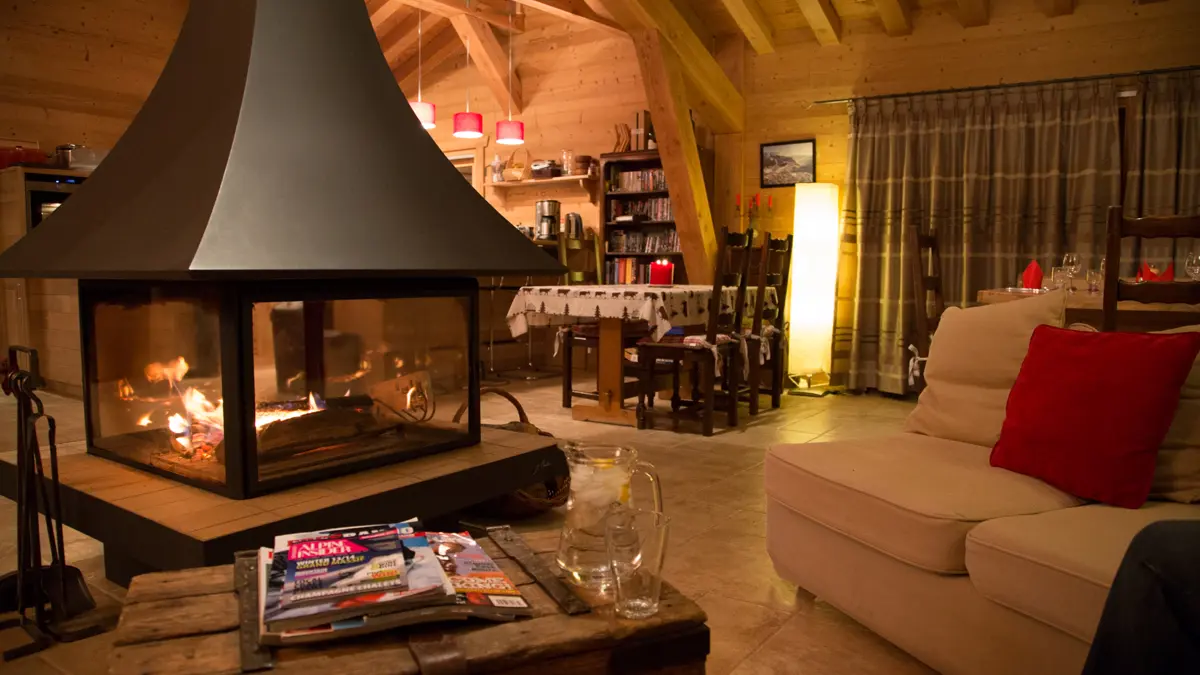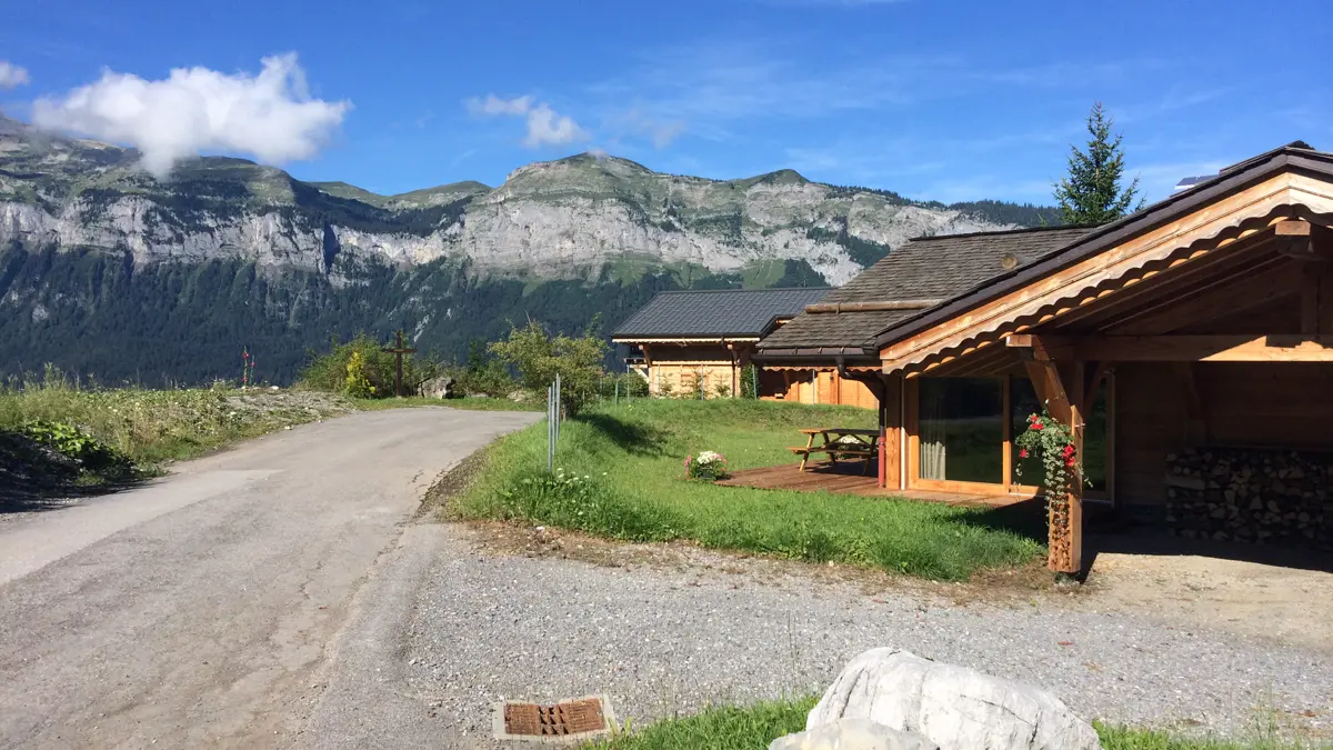 Chalet de 10 personnes avec une vue sur les sommets situé au hameau Les Feux sur la route de Flaine près d'un arrêt de skibus gratuit en hiver et au départ de sentiers de randonnée et VTT en été.