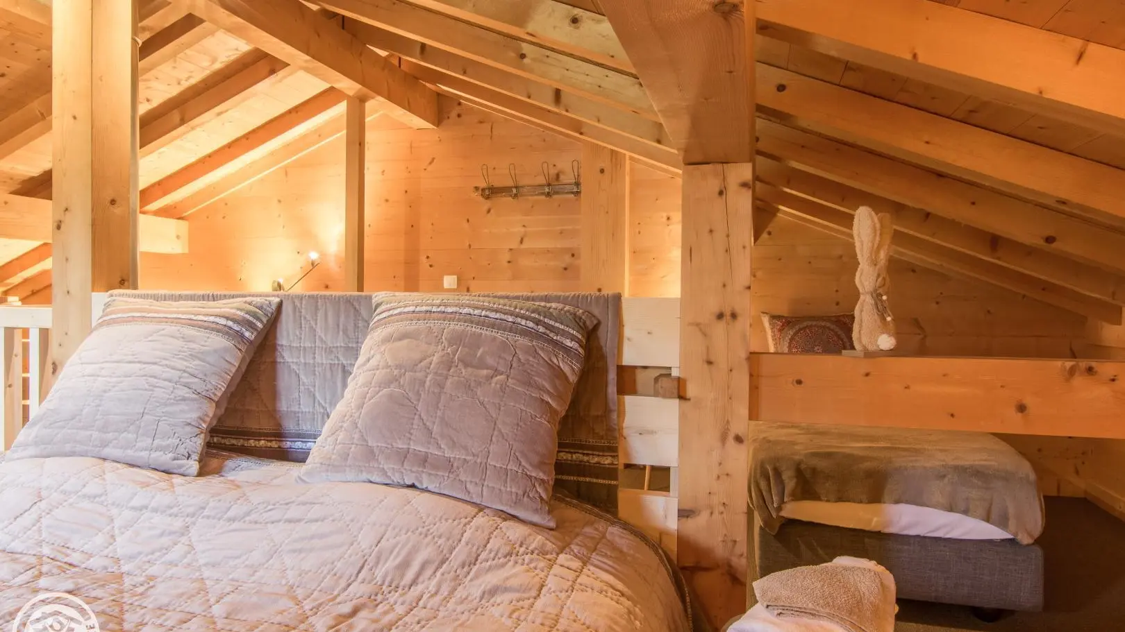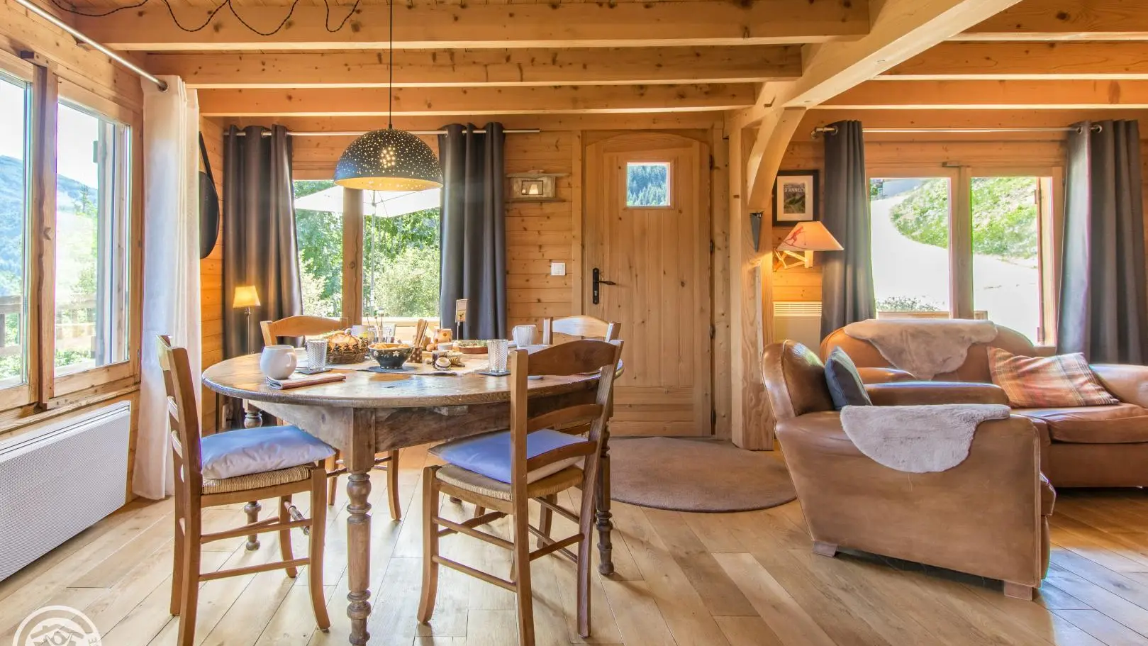 Chalet indépendante de 80m² (+ 25m² mansardés) aménagé sur 2 niveaux. Capacité jusqu'à 5 personnes (sans supplément).
