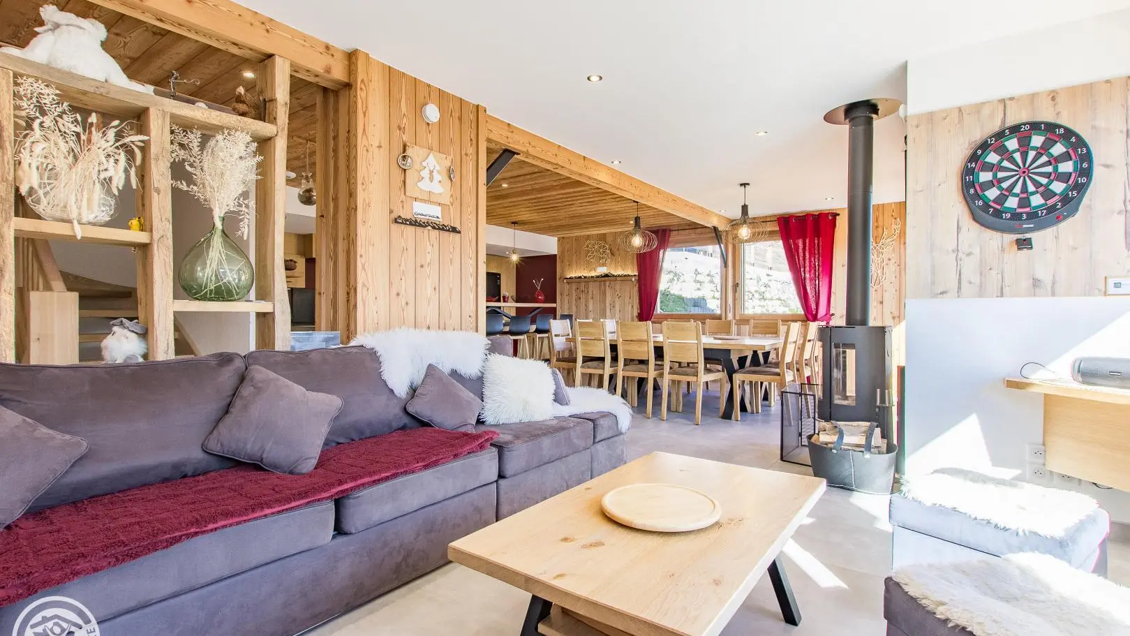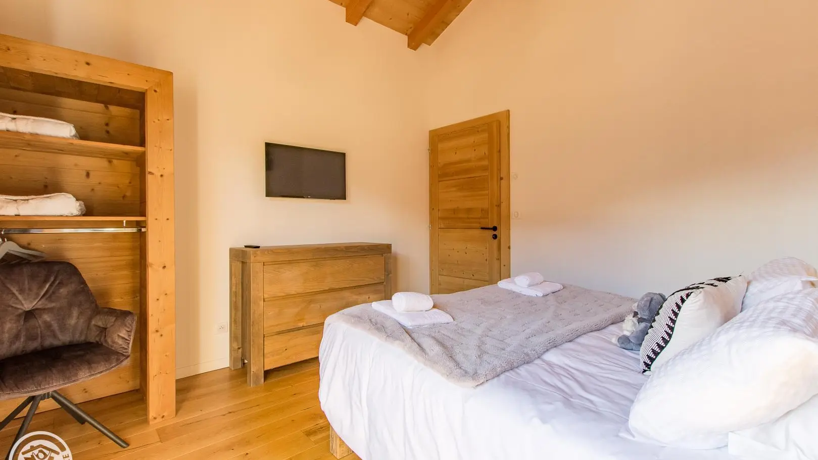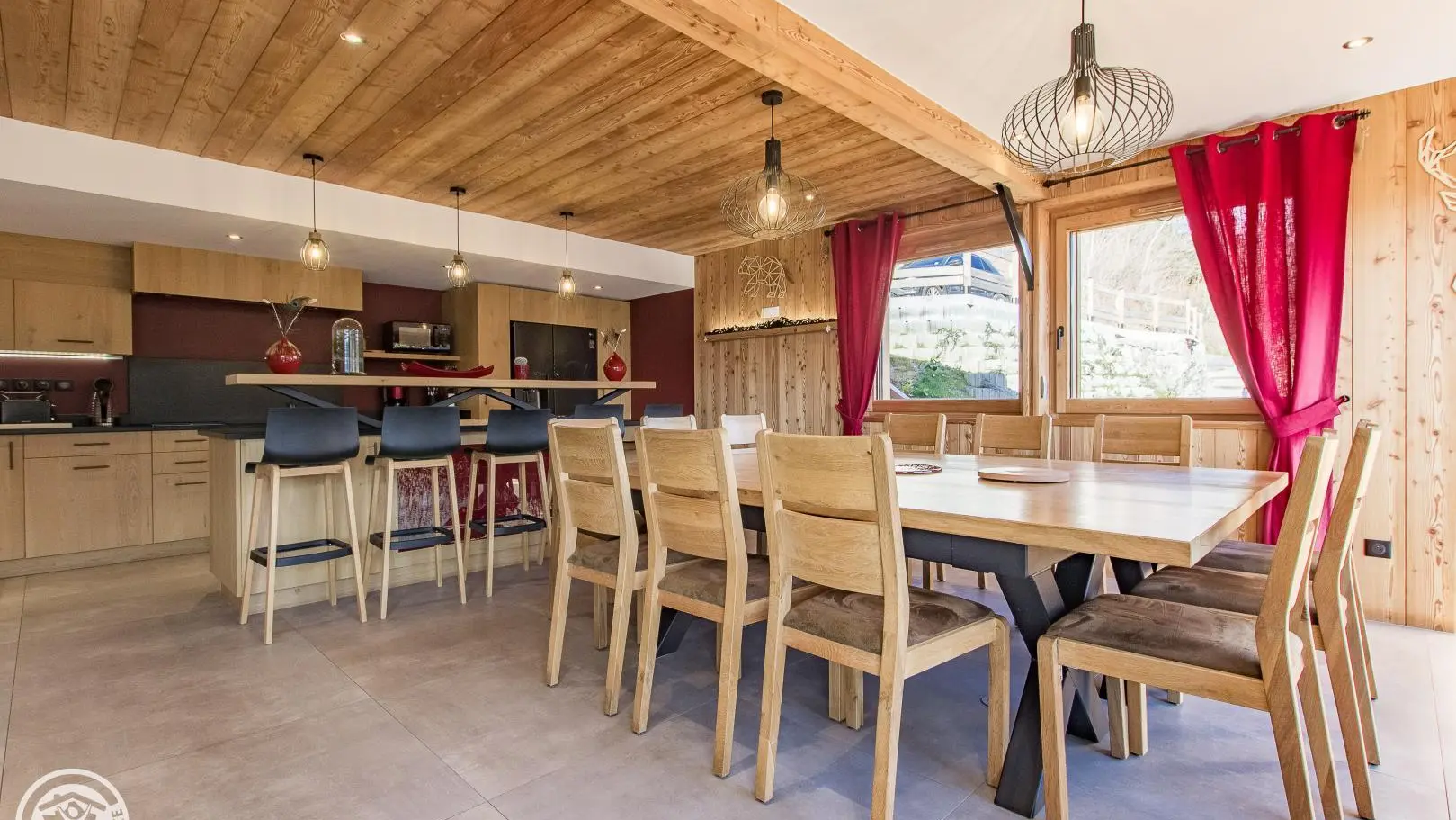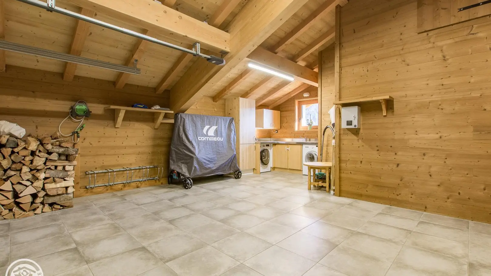 Magnifique chalet indépendant (190m²) aménagé sur 3 niveaux. Vous serez accueillis par le propriétaire qui habite dans le chalet voisin. Entrée par le dernier étage / rez-de-chaussée (niveau parking) : grand garage double de 36m² avec espace buanderie (lave-linge et sèche-linge), hall d'entrée / skiroom avec sèche-chaussures. Chambre 1 (1 lit 160x200cm, salle d'eau/wc). Niveau inférieur : cuisine équipée ouverte sur le séjour : grande table pour les repas, cave à vin, canapé d'angle, télévision, équipement Bluetooth, poêle à bois, jeu fléchettes... baie vitrée donnant accès au balcon avec la table de jardin. Chambre 2 (1 lit 160x200cm, salle d'eau), wc indépendant.