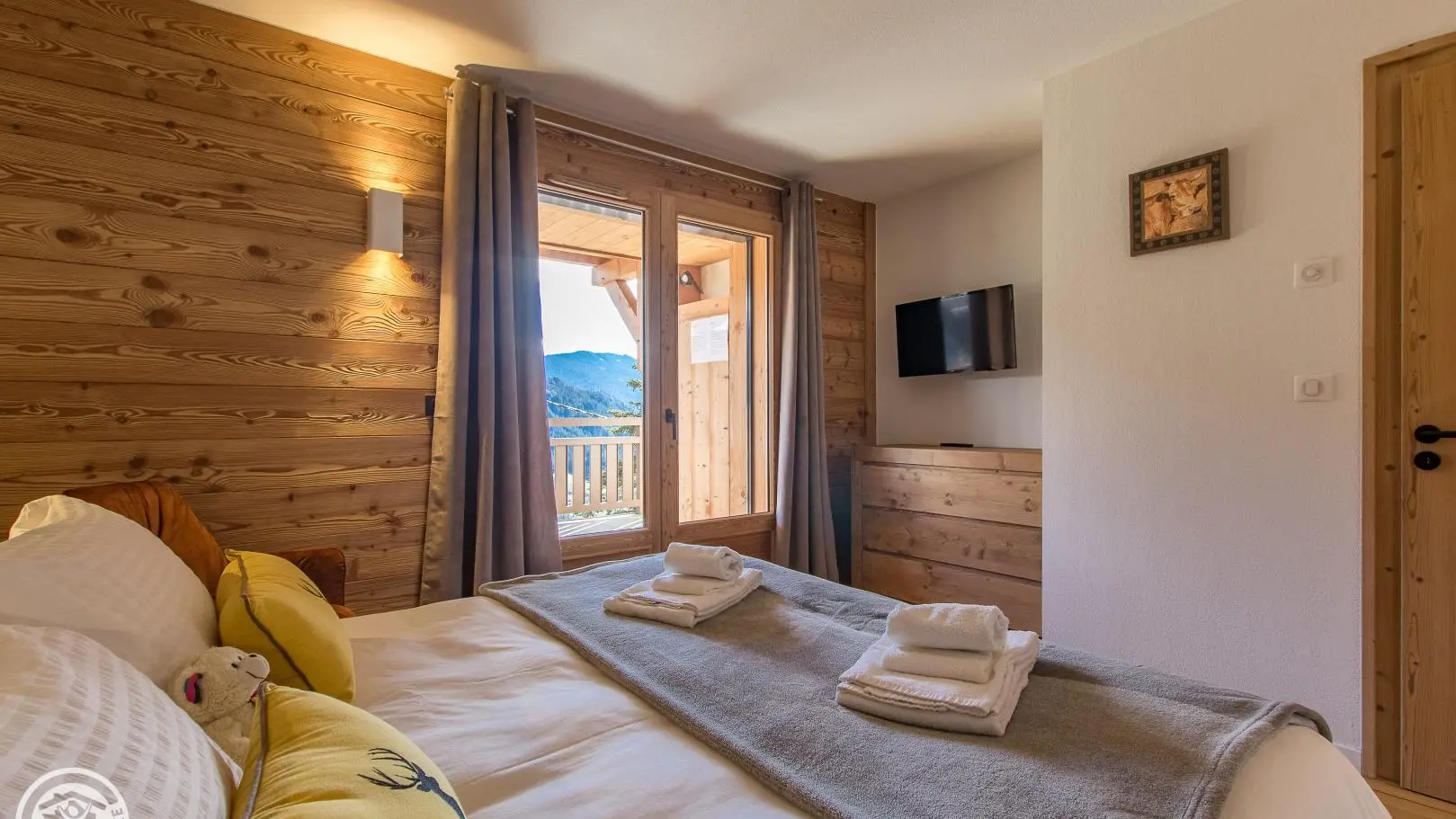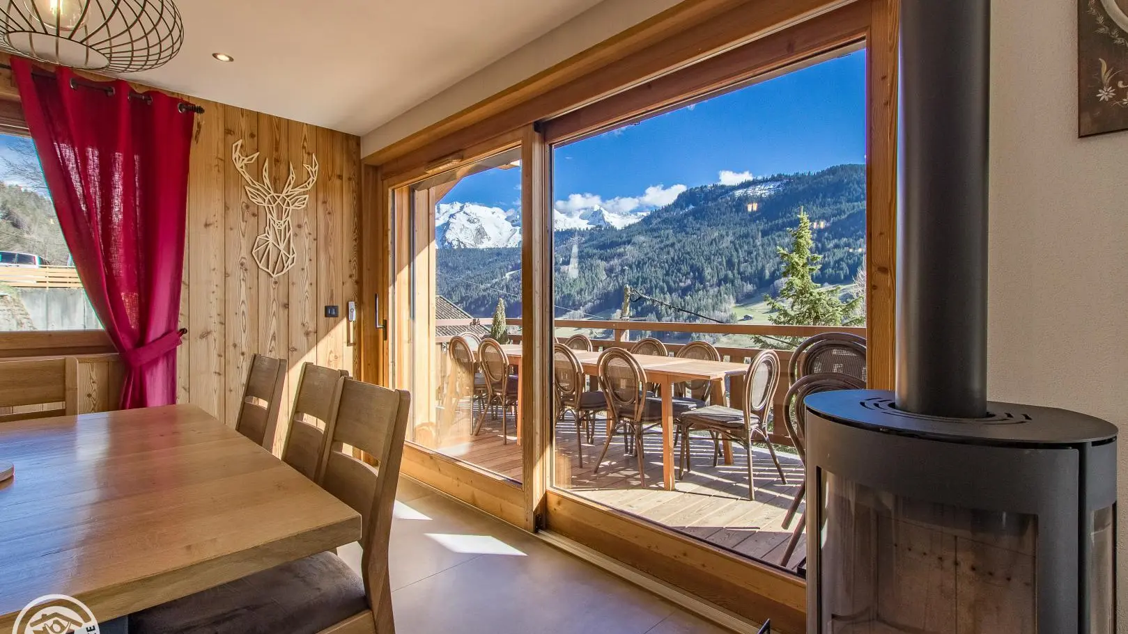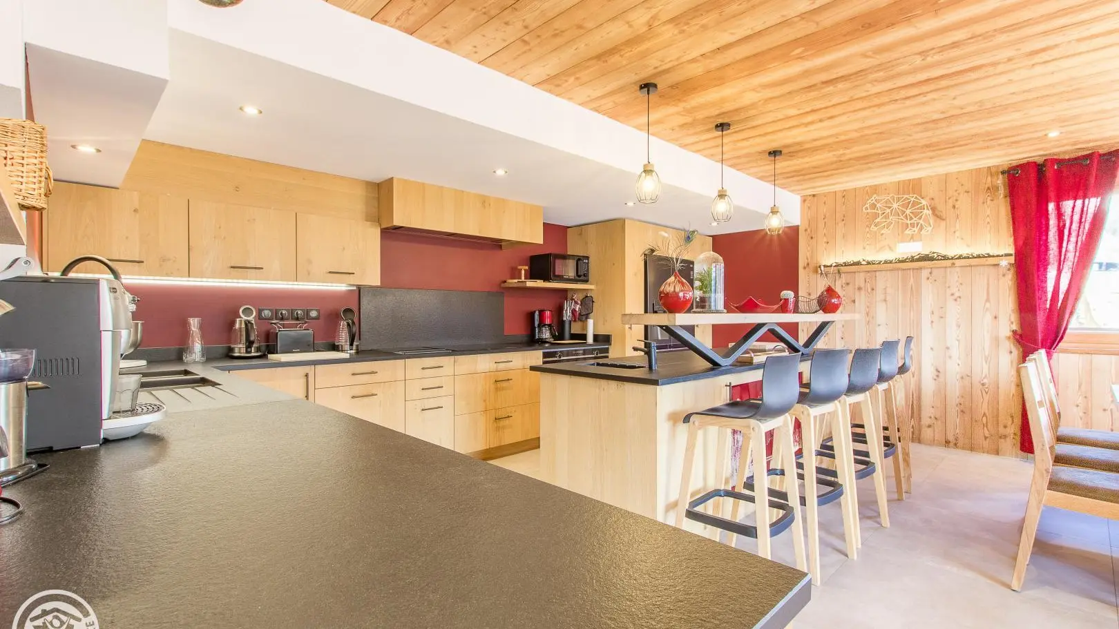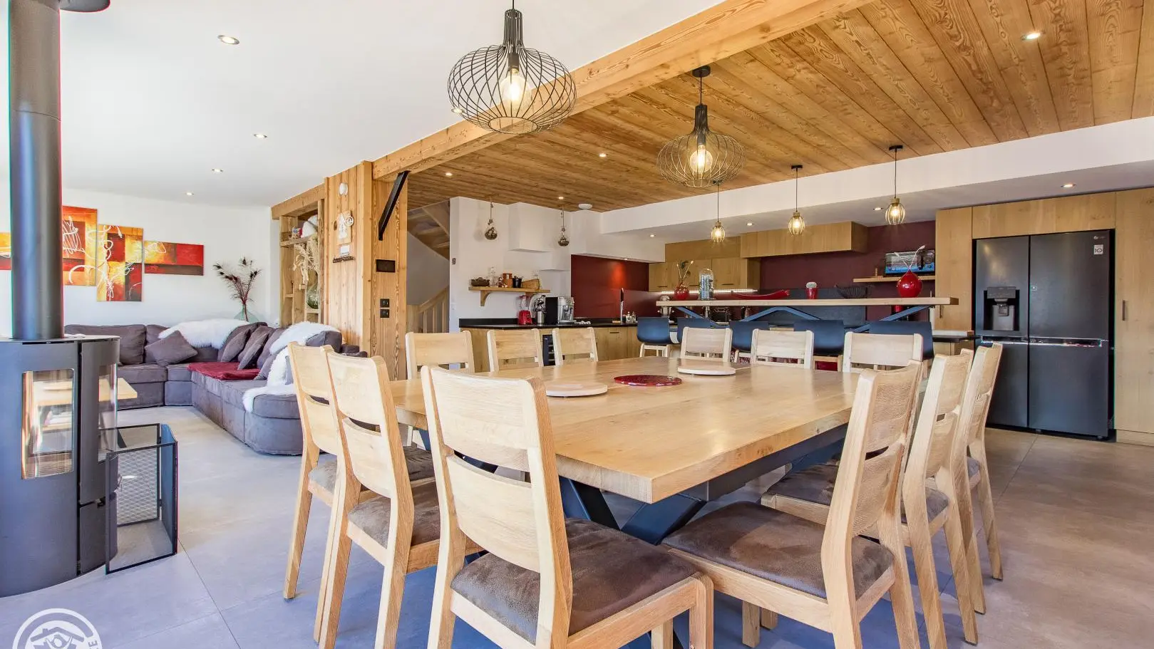 Magnifique chalet indépendant (190m²) aménagé sur 3 niveaux. Vous serez accueillis par le propriétaire qui habite dans le chalet voisin. Entrée par le dernier étage / rez-de-chaussée (niveau parking) : grand garage double de 36m² avec espace buanderie (lave-linge et sèche-linge), hall d'entrée / skiroom avec sèche-chaussures. Chambre 1 (1 lit 160x200cm, salle d'eau/wc). Niveau inférieur : cuisine équipée ouverte sur le séjour : grande table pour les repas, cave à vin, canapé d'angle, télévision, équipement Bluetooth, poêle à bois, jeu fléchettes... baie vitrée donnant accès au balcon avec la table de jardin. Chambre 2 (1 lit 160x200cm, salle d'eau), wc indépendant.