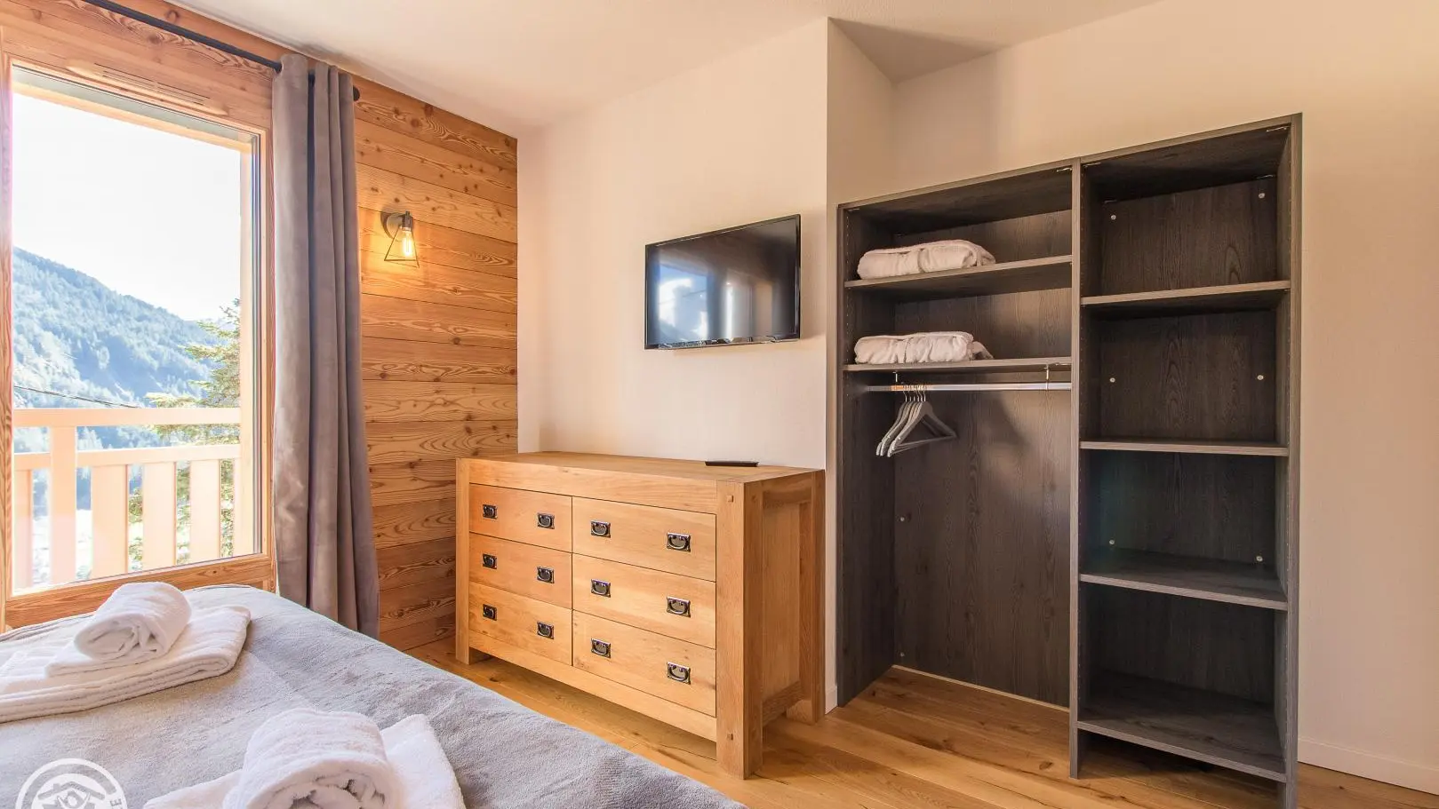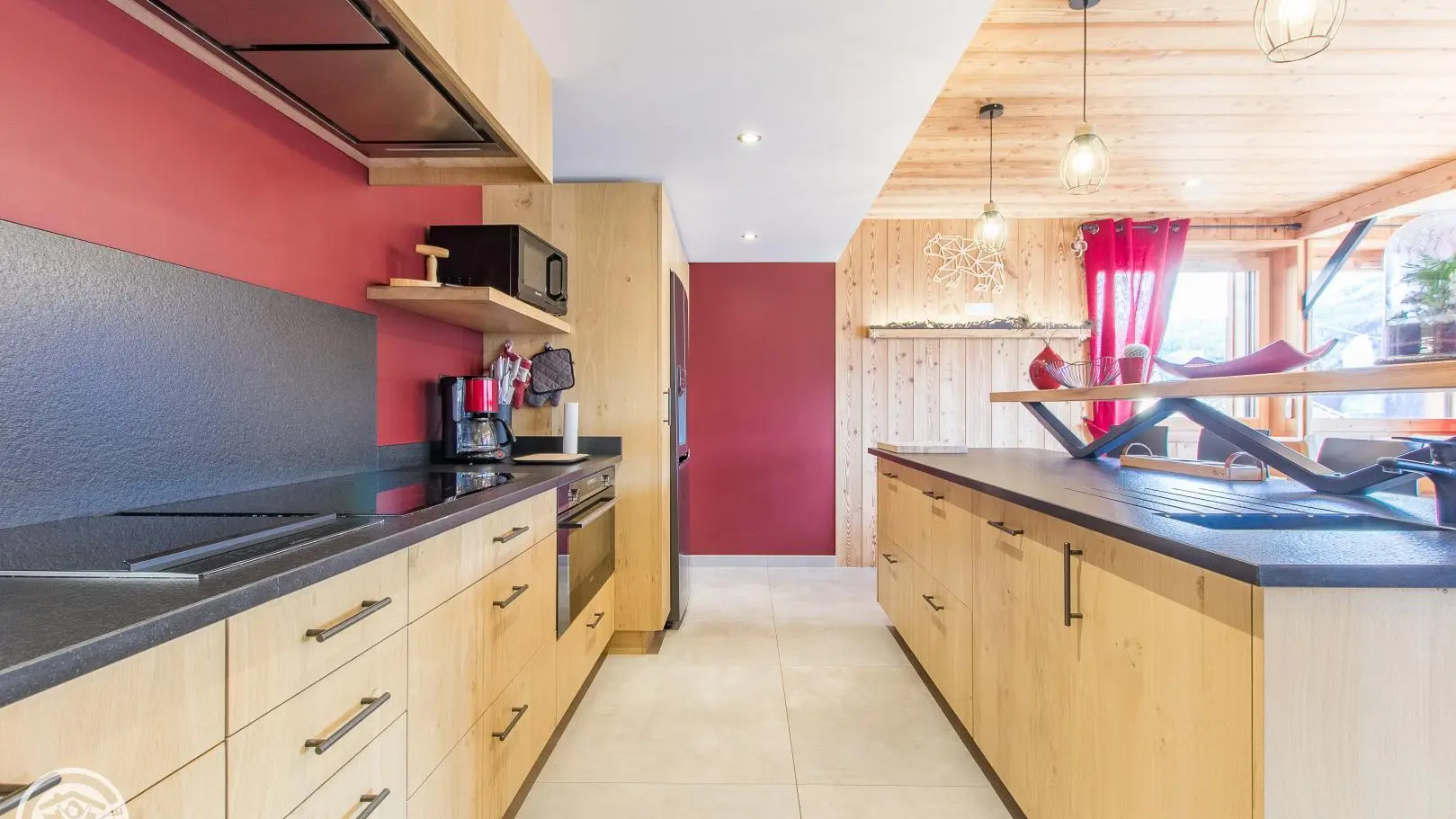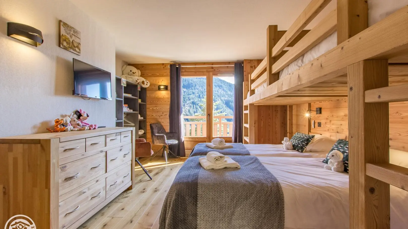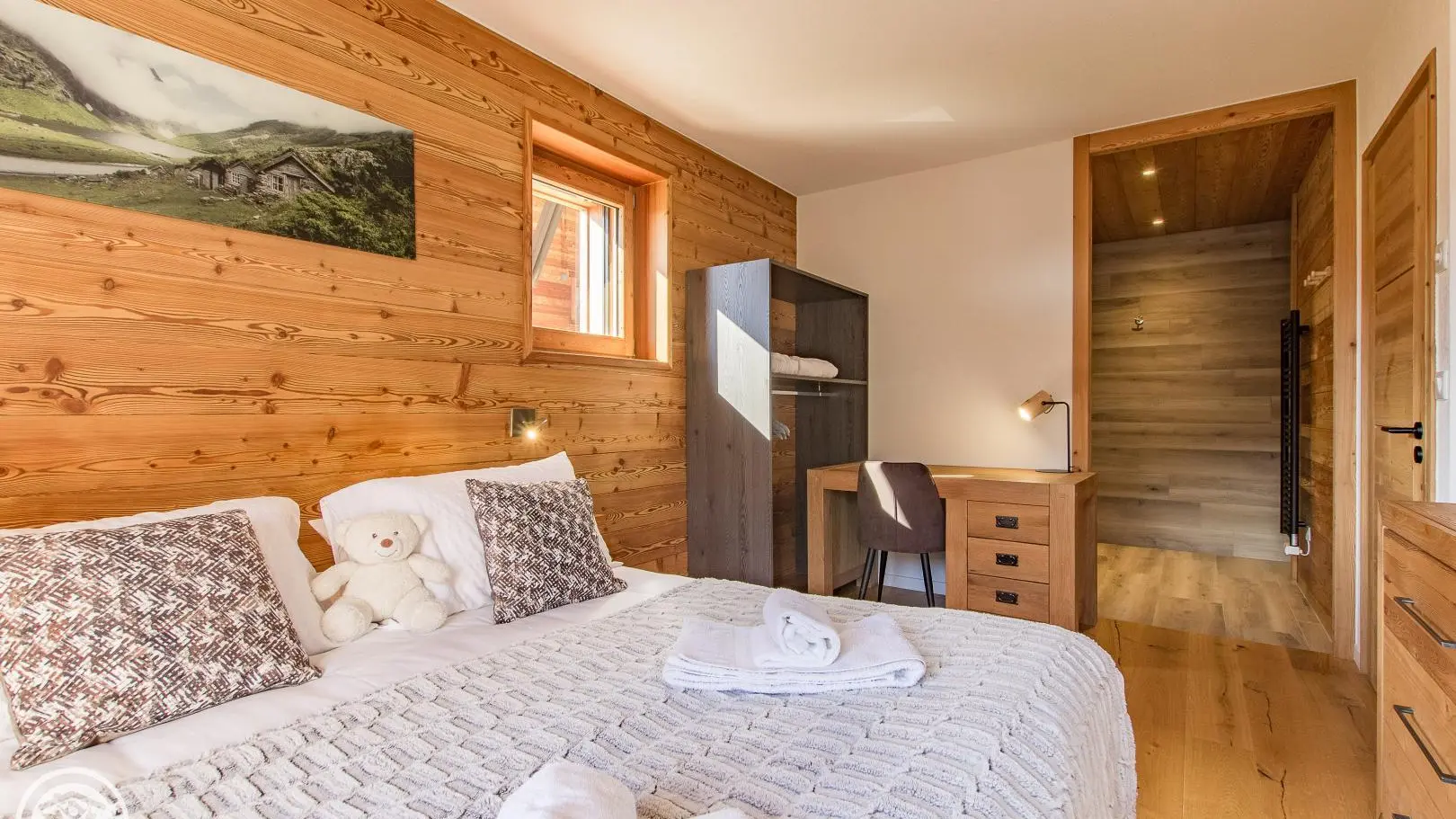 Magnifique chalet indépendant (190m²) aménagé sur 3 niveaux. Vous serez accueillis par le propriétaire qui habite dans le chalet voisin. Entrée par le dernier étage / rez-de-chaussée (niveau parking) : grand garage double de 36m² avec espace buanderie (lave-linge et sèche-linge), hall d'entrée / skiroom avec sèche-chaussures. Chambre 1 (1 lit 160x200cm, salle d'eau/wc). Niveau inférieur : cuisine équipée ouverte sur le séjour : grande table pour les repas, cave à vin, canapé d'angle, télévision, équipement Bluetooth, poêle à bois, jeu fléchettes... baie vitrée donnant accès au balcon avec la table de jardin. Chambre 2 (1 lit 160x200cm, salle d'eau), wc indépendant.
