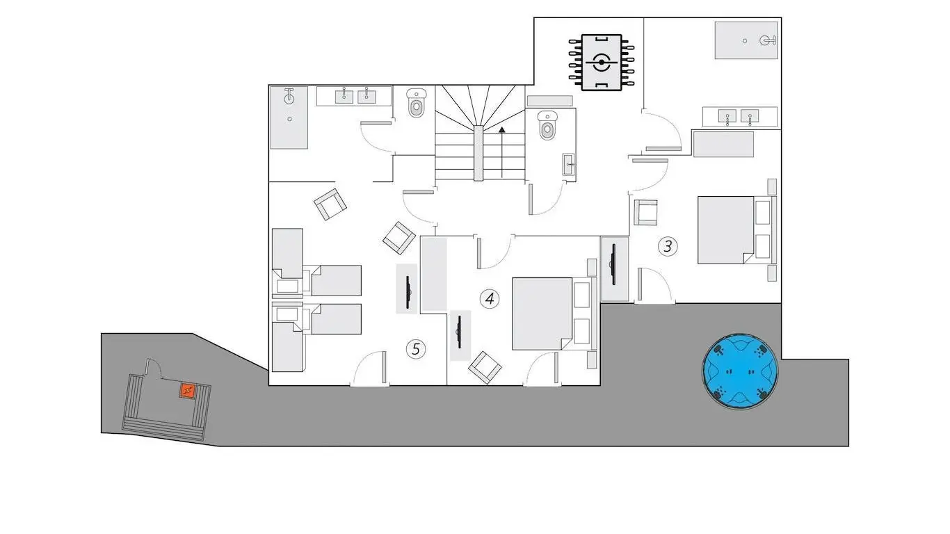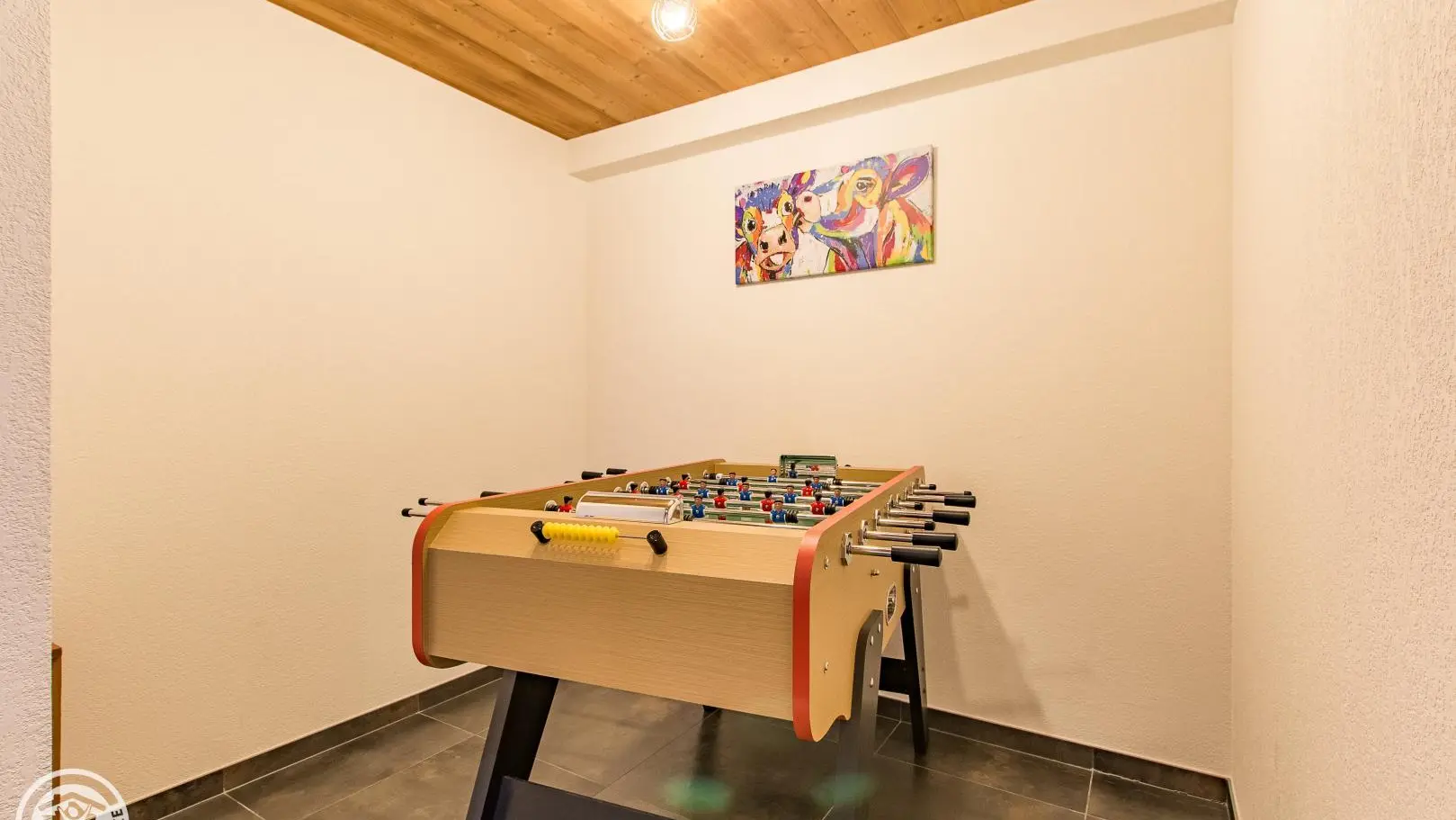 Au niveau inférieur, 3 autres chambres : chambre 3 pour 4 personnes (2 lits 90x200cm rapprochables et 2 lits 90x200cm en hauteur, salle d'eau/wc), chambre 4 (1 lit 160x200cm), chambre 5 (1 lit 160x200cm), salle d'eau, wc indépendant. Baby-foot. Télévision connectée (sans chaines tnt - uniquement accès aux applications) dans toutes les chambres.