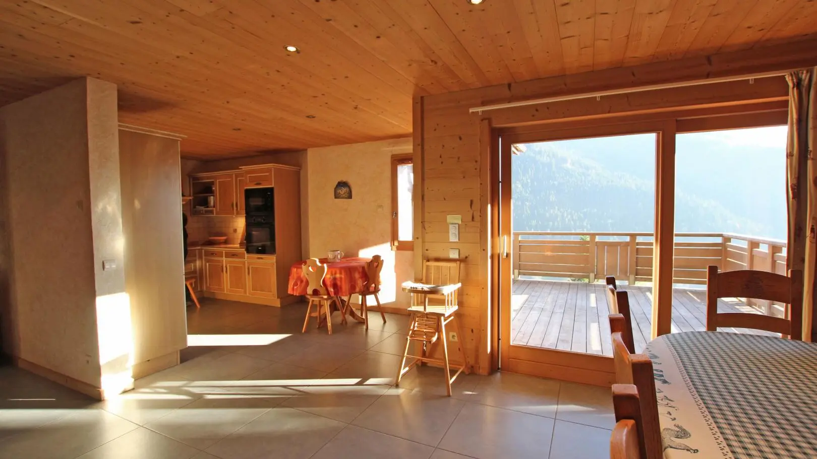 Chalet comprenant 3 gîtes avec vue panoramique sur la chaine des Aravis. Gîte de 128 m² au 1er étage.