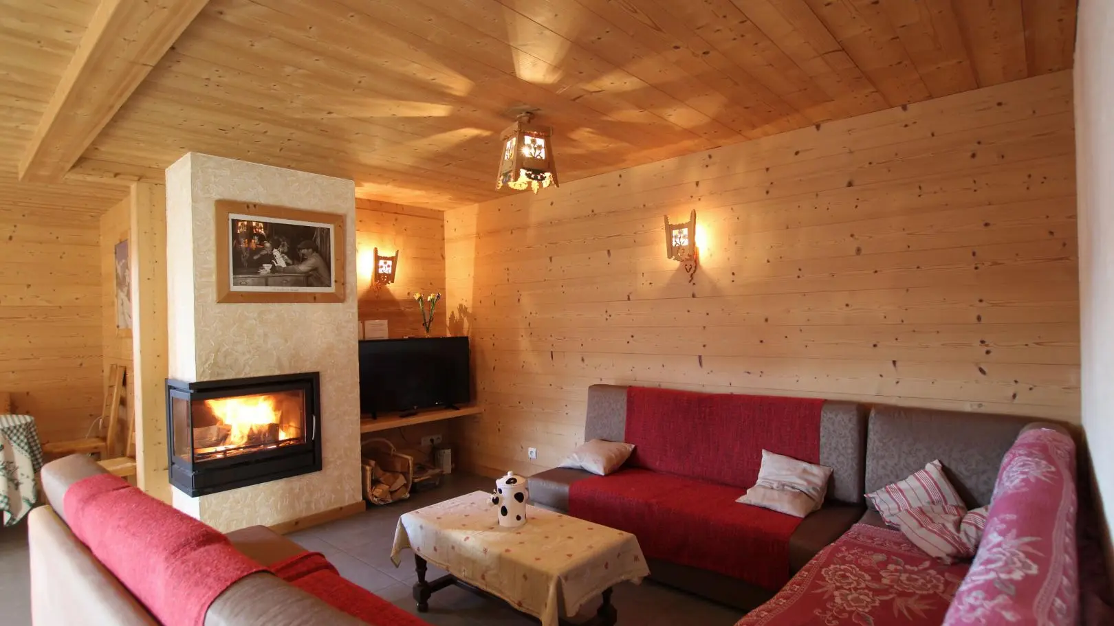 Grand séjour avec cuisine intégrée. Chambre 1 (1 lit 140 + 1 lit 90), Chambre 2 (1 lit 140), Chambre 3 (1 lit 140), Chambre 4 (2 lits 90), Chambre 5 (3 lits 90 dont 1 superposé, salle d'eau privative). Salle d'eau, 2 WC indépendants. Chauffage central. Local ski, buanderie commune, garage. 2 terrasses sud, terrain commun. Domaines skiables de La Clusaz/Balme à 1 km. Navettes à 200m. Nombreuses randonnées à proximité. Lac des Confins (pêche) à 1 km. Centre de la station, tous commerces et activités à 2 km. A découvrir : Col des Aravis, alpages, visite de la ferme des propriétaires.