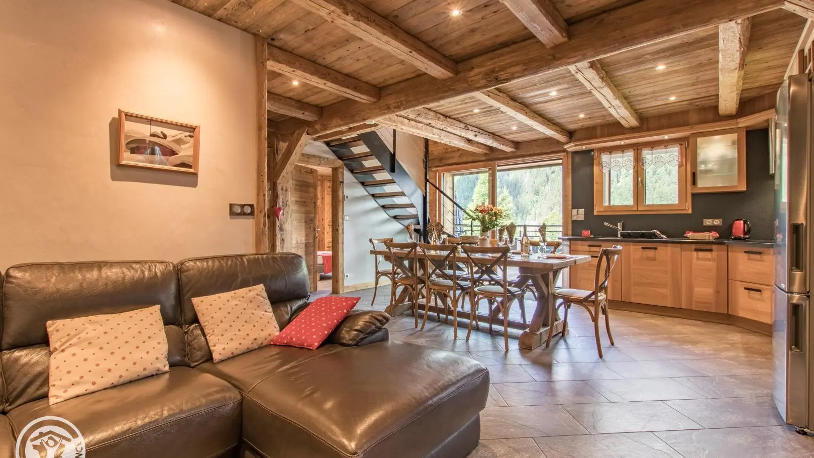 Gite de 92m² aménagé sur 2 niveaux avec son entrée indépendante sur le côté d'un grand chalet comprenant des autres locations (dont gite référencé 63059), un logement propriétaires et le magasin de location de skis des propriétaires.