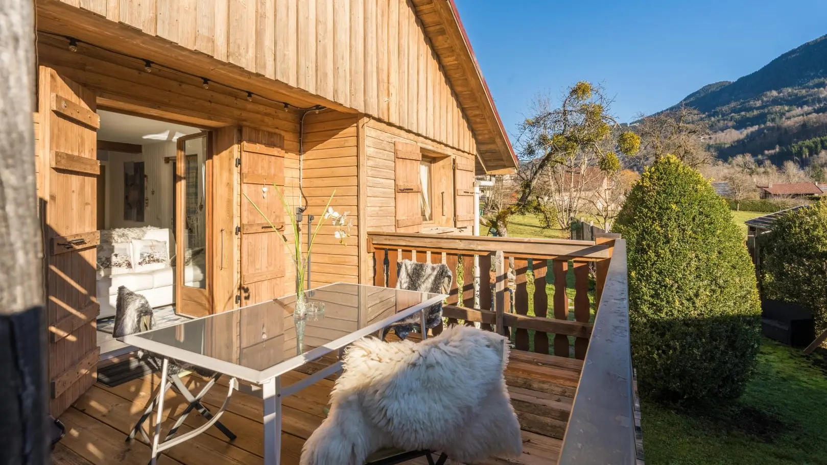 Portique avec 3 balançoires et 1 toboggan. Buanderie avec lave-linge commun. Balcon-Terrasse côté Est avec mobilier de jardin, transats, barbecue. 2ème balcon-terrasse plein Sud. Terrain commun autour du chalet (1800m²). Cour, parking. Centre de Thônes (nombreux commerces) à 2,5km. Supermarché à 1,5km. Ski: stations Aravis (La Clusaz, Grand-Bornand) à 8,5km, Manigod à 15km. Lac d'Annecy à 16.5km, Annecy à 24km. Nombreuses randonnées - balades, via ferrata à proximité.