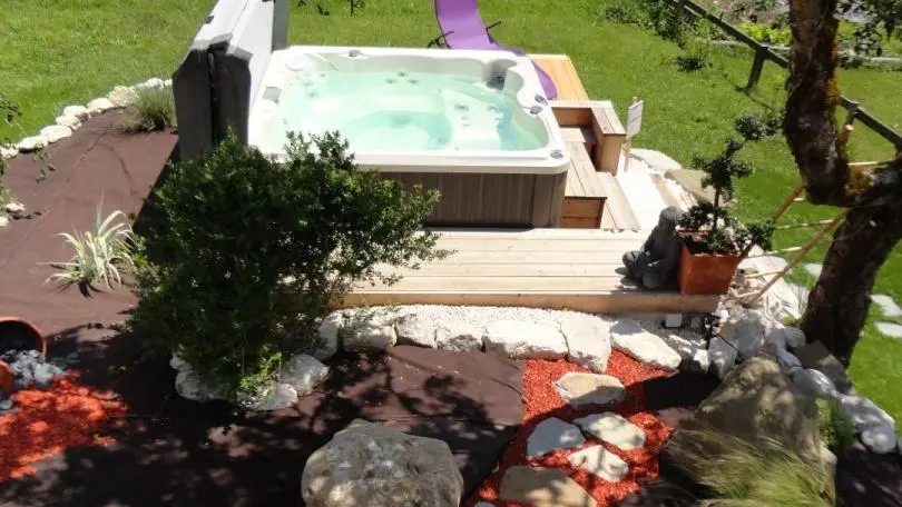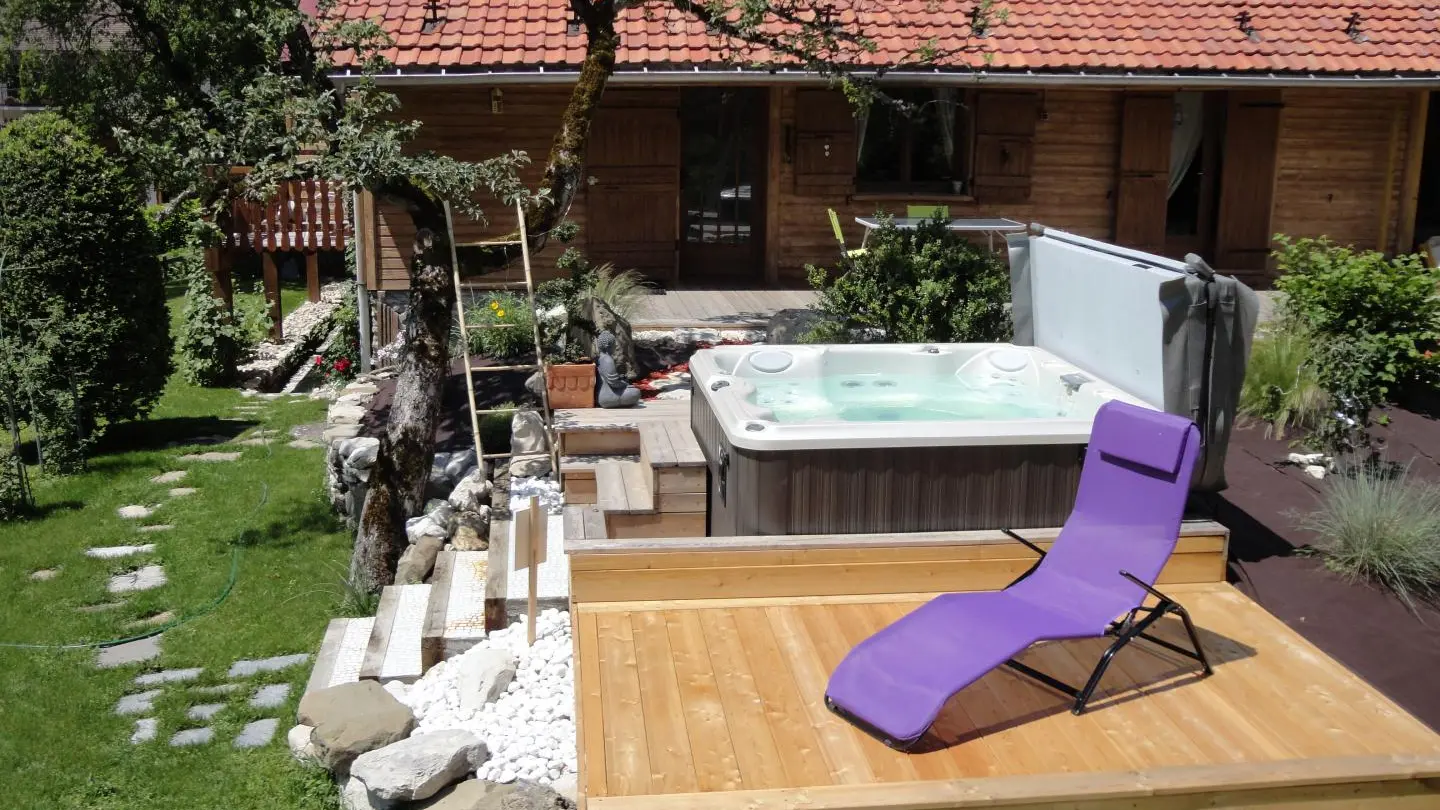 Grand jacuzzi 6 places commun (accès sans supplément, sur réservation). Réservé aux adultes et enfants de plus de 12 ans.