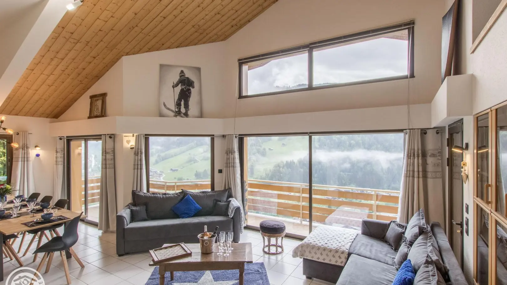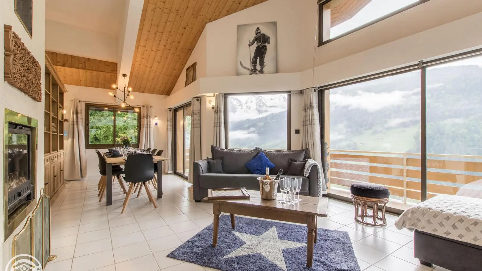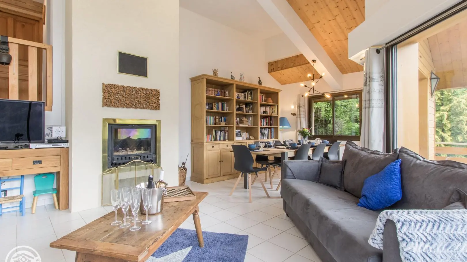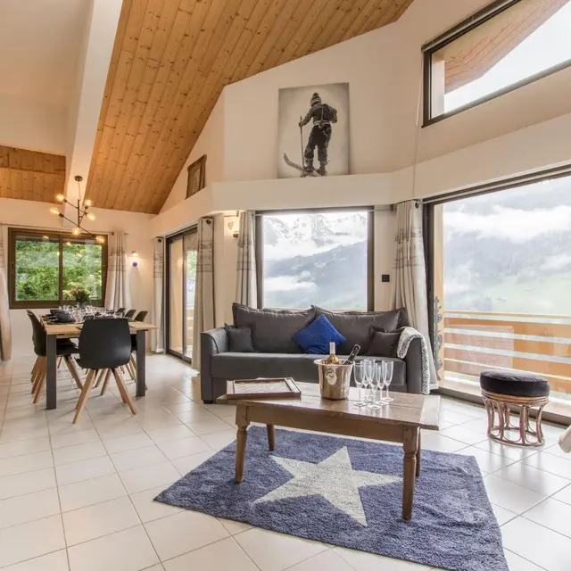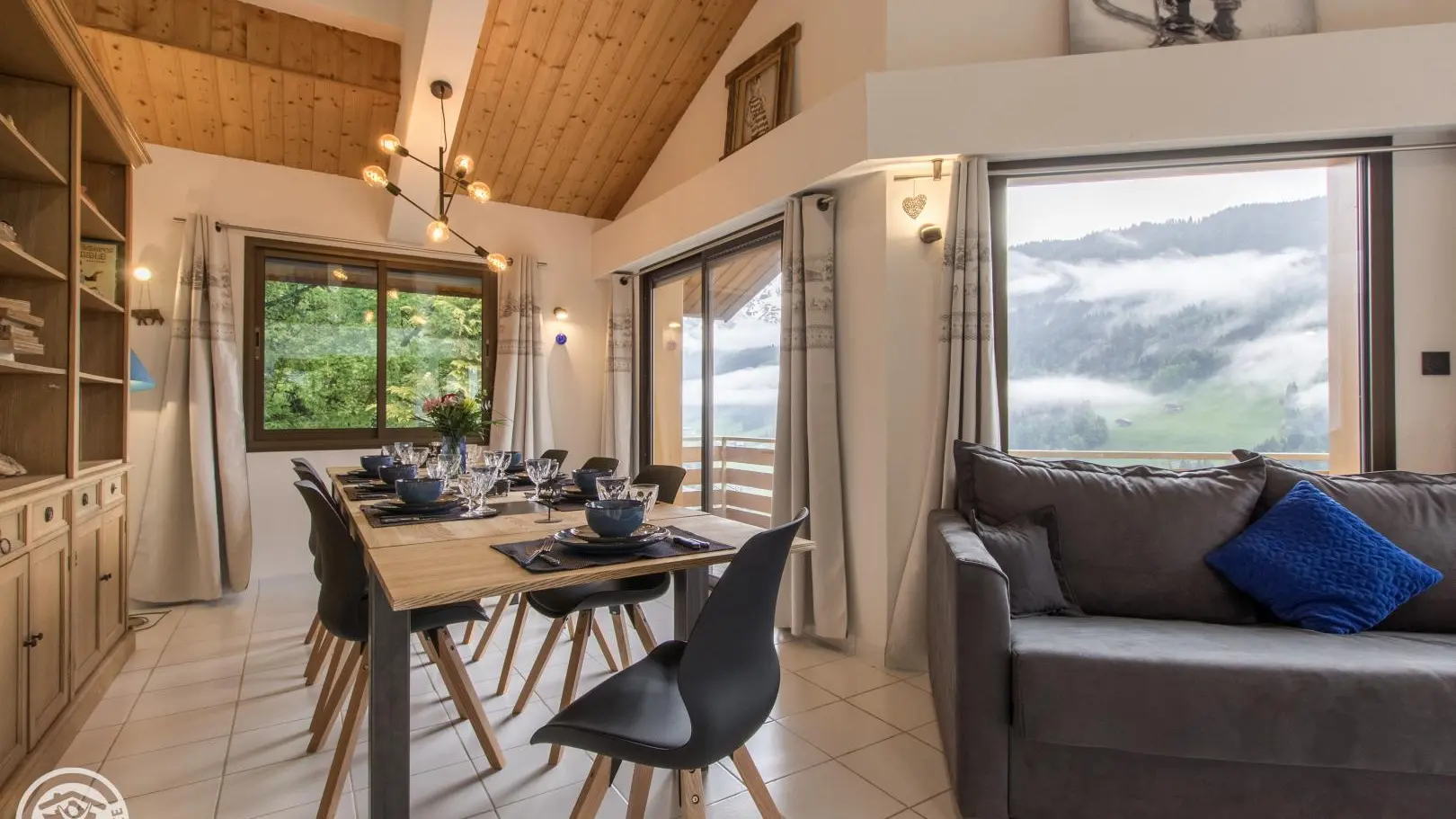 Gîte aménagé sur 2 demi-niveaux : Sur le demi-niveau inférieur, très agréable séjour/salle à manger avec une belle hauteur sous plafond, cheminée (bois inclus), 1 canapé d'angle + 1 canapé (tous les 2 sont convertibles), TV, lecteur DVD, bibliothèque. Grande baie vitrée avec magnifique vue sur les montagnes et le village du Grand-Bornand, accès balcon-terrasse. Cuisine entièrement équipée. Sur le demi-niveau supérieur, 2 chambres : entrée du gîte, chambre 1 parentale (1 lit 160x200cm, salle de bains/wc), chambre 2 (1 lit 160x200 et 1 lit 90x200cm superposés). Salle d'eau (douche), wc indépendant. Balcon/terrasse orienté sud, vue montagnes et village, salon de jardin, transats, plancha. Buanderie/local skis indépendant avec lave-linge. Parking privatif. Chalet situé entre le centre du village et le Chinaillon, arrêt navettes à moins de 100m du gîte. Centre du Grand-Bornand, commerces, restaurants, piscine 1,3km. Ski : télécabines La Joyère et Le Rosay au village à 1,8km ou remontées ski au Chinaillon à 4,5km. Nombreuses activités été et/ou hiver dans la station et les Aravis : piscines, patinoire, via ferrata,golf, randonnée (départ des sentiers à 50m). Lac d'Annecy (baignade, plages) 26km, Annecy 32km. Thônes à 13km.