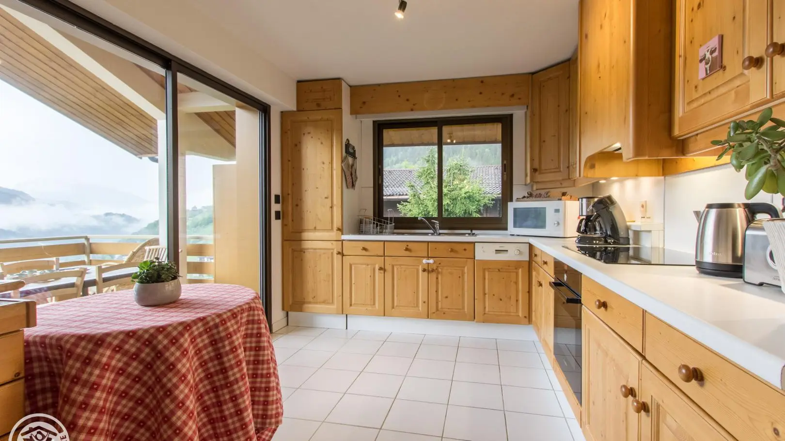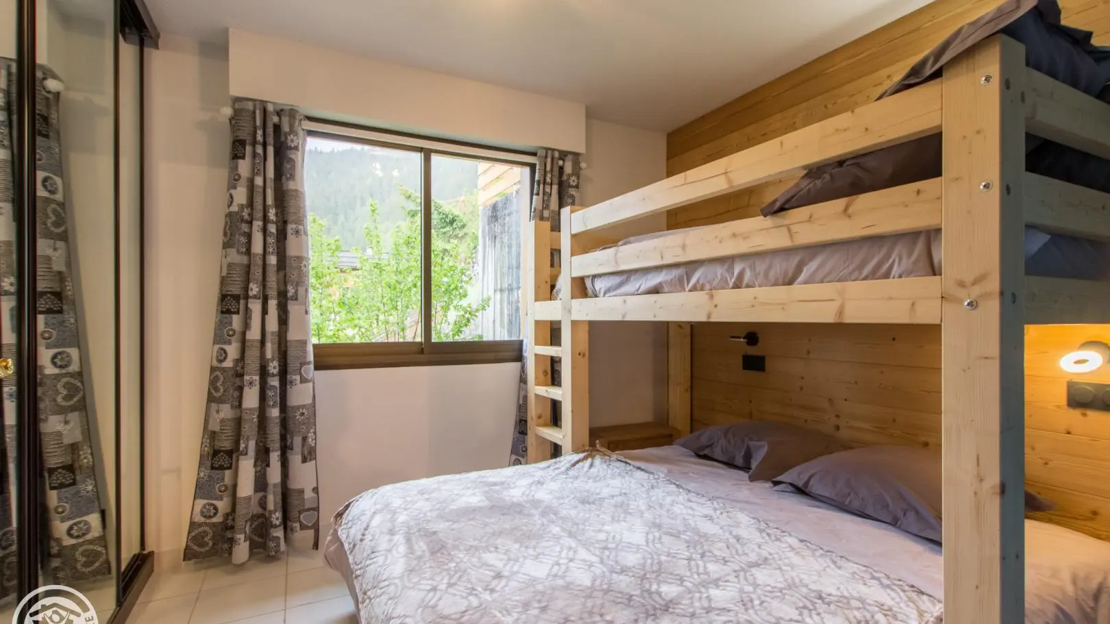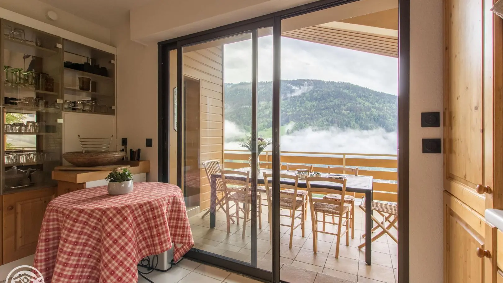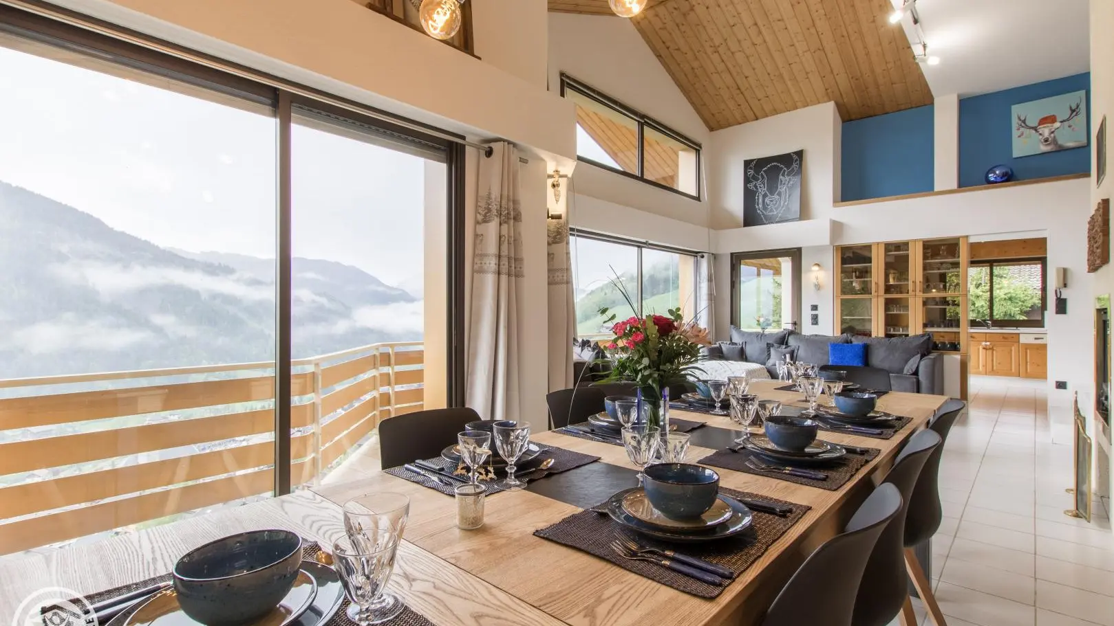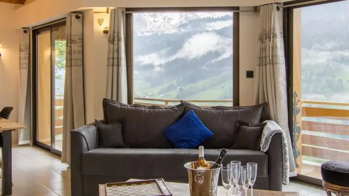 Gîte aménagé sur 2 demi-niveaux : Sur le demi-niveau inférieur, très agréable séjour/salle à manger avec une belle hauteur sous plafond, cheminée (bois inclus), 1 canapé d'angle + 1 canapé (tous les 2 sont convertibles), TV, lecteur DVD, bibliothèque. Grande baie vitrée avec magnifique vue sur les montagnes et le village du Grand-Bornand, accès balcon-terrasse. Cuisine entièrement équipée. Sur le demi-niveau supérieur, 2 chambres : entrée du gîte, chambre 1 parentale (1 lit 160x200cm, salle de bains/wc), chambre 2 (1 lit 160x200 et 1 lit 90x200cm superposés). Salle d'eau (douche), wc indépendant. Balcon/terrasse orienté sud, vue montagnes et village, salon de jardin, transats, plancha. Buanderie/local skis indépendant avec lave-linge. Parking privatif. Chalet situé entre le centre du village et le Chinaillon, arrêt navettes à moins de 100m du gîte. Centre du Grand-Bornand, commerces, restaurants, piscine 1,3km. Ski : télécabines La Joyère et Le Rosay au village à 1,8km ou remontées ski au Chinaillon à 4,5km. Nombreuses activités été et/ou hiver dans la station et les Aravis : piscines, patinoire, via ferrata,golf, randonnée (départ des sentiers à 50m). Lac d'Annecy (baignade, plages) 26km, Annecy 32km. Thônes à 13km.