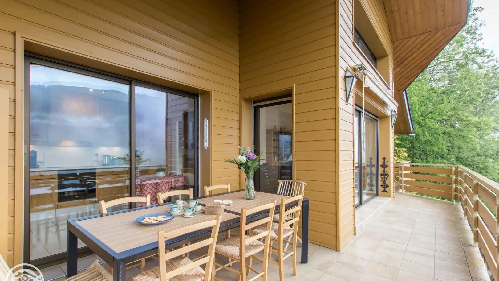 Chalet comprenant uniquement 2 logements : 1 gîte de 81m² pour 5 à 7 personnes et 1 autre logement (résidence secondaire). Entrée commune sur l'arrière du chalet. Accès et stationnement directement sur la partie supérieure du chalet.