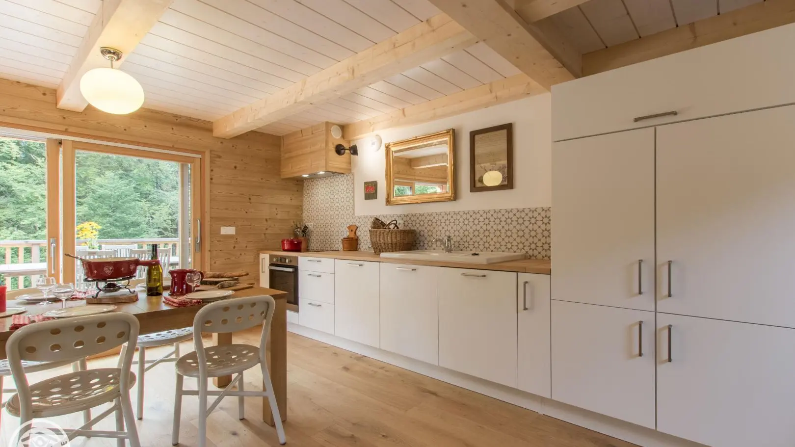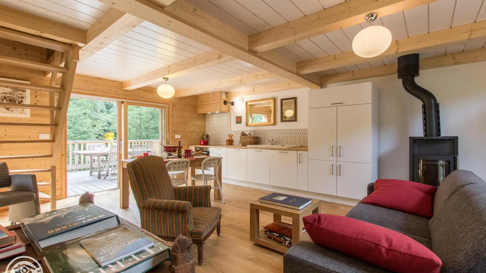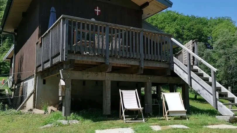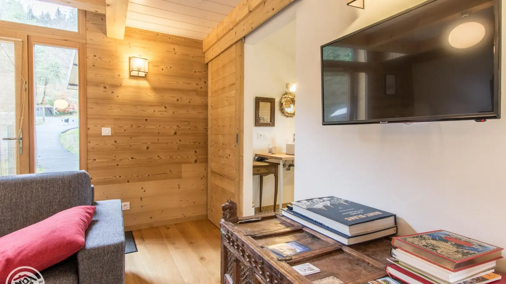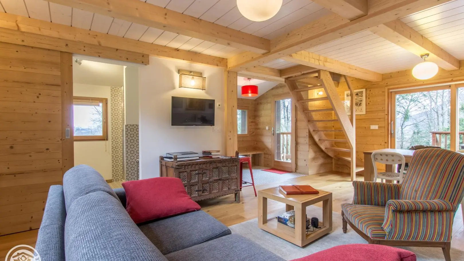 Chalet indépendant de 50m² (+16m² mansardés) aménagé sur 2 niveaux, situé à côté de l'habitation des propriétaires. Secteur très calme.