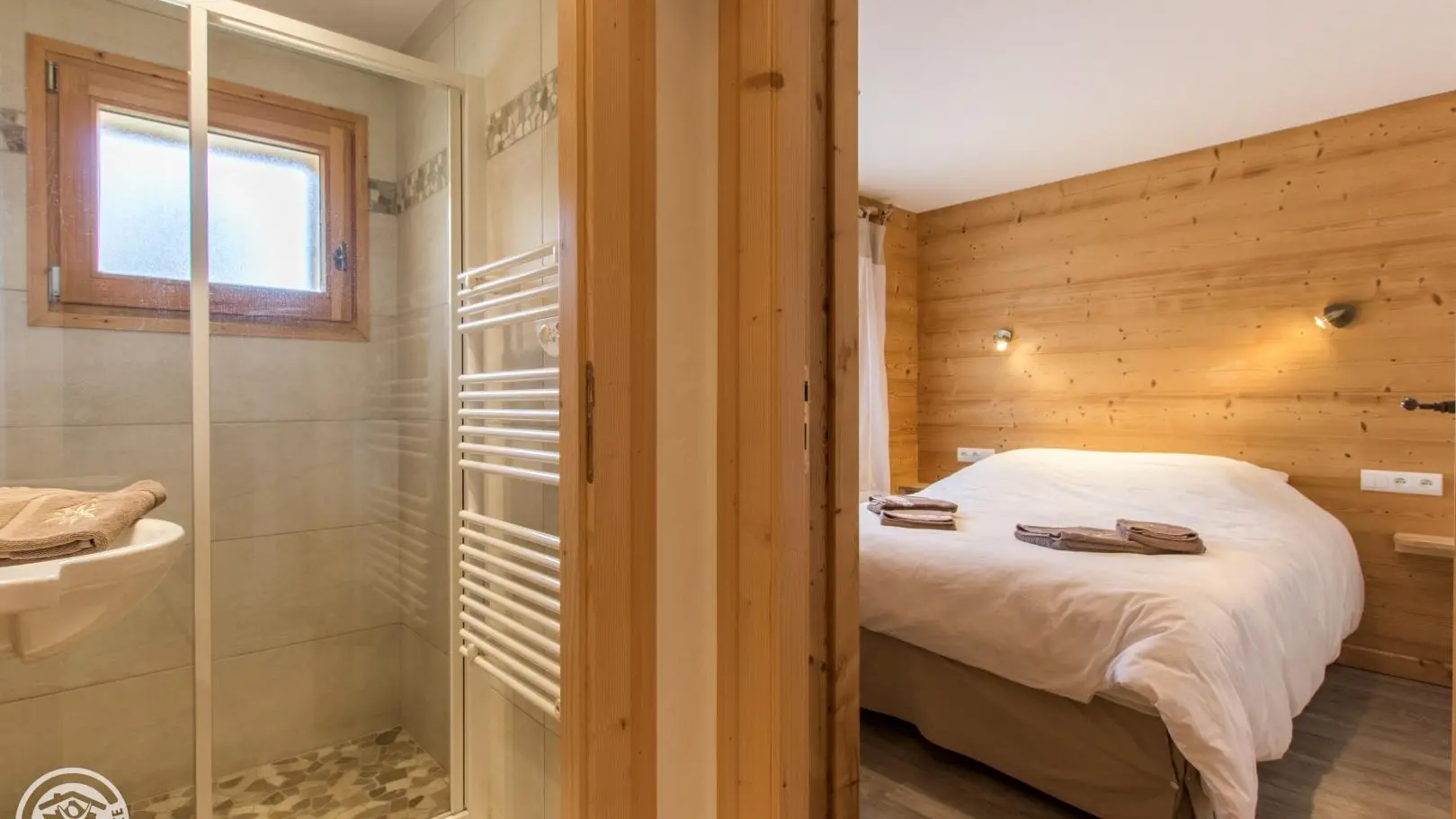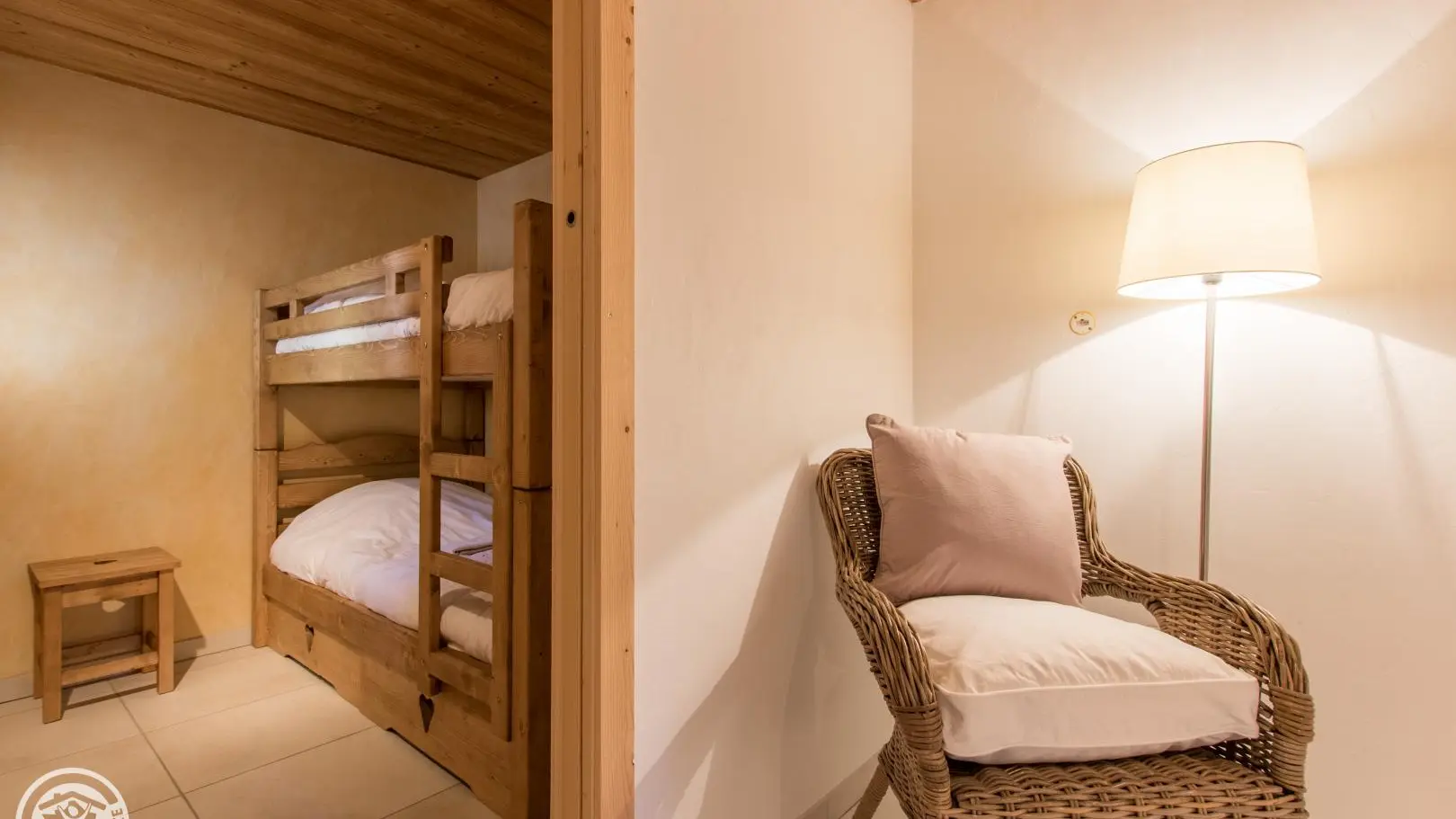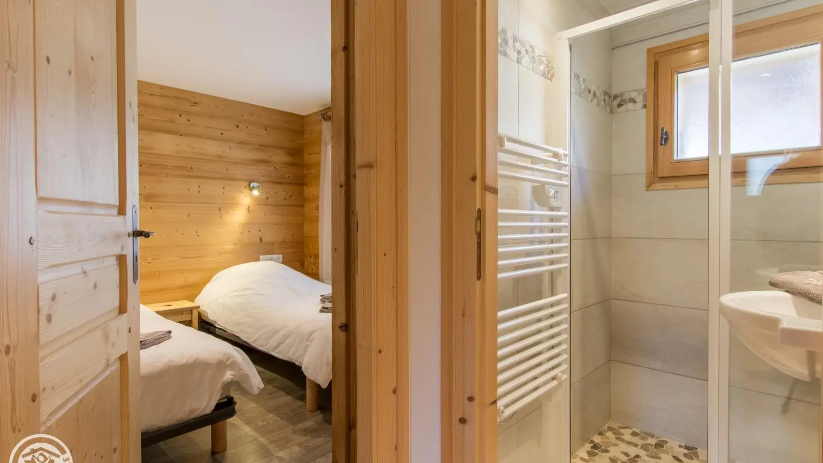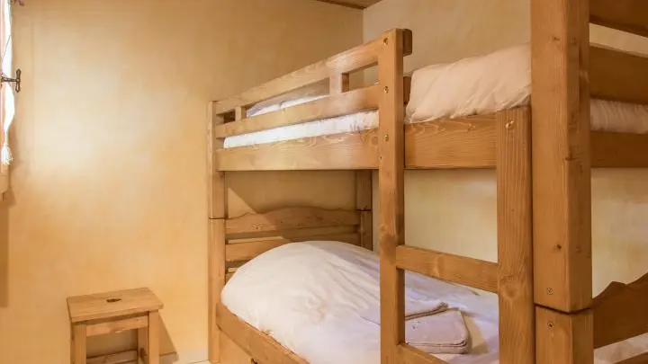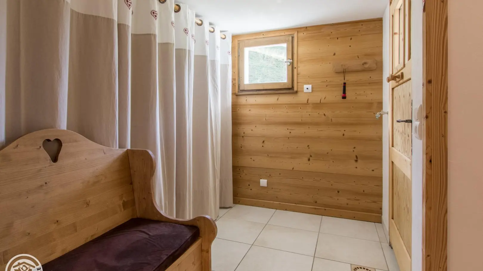 Rez-de-chaussée : chambre 1 (1 lit 140x190cm), chambre 2 (2 lits 80x190cm jumelables pouvant créer 1 lit double), petite chambre 3 (2 lits 90x190cm superposés). 2 salles d'eau (douche), wc indépendant. Hall d'entrée. Coin buanderie avec lave-linge et sèche-linge. Balcon avec vue sur le village, terrasse privative avec vue sur les montagnes, salon de jardin, transats, barbecue électrique. Terrain. Parking privatif sur place l'été (chemin en gravier sur les derniers mètres), stationnement à 80m en cas de neige. Casier à skis.