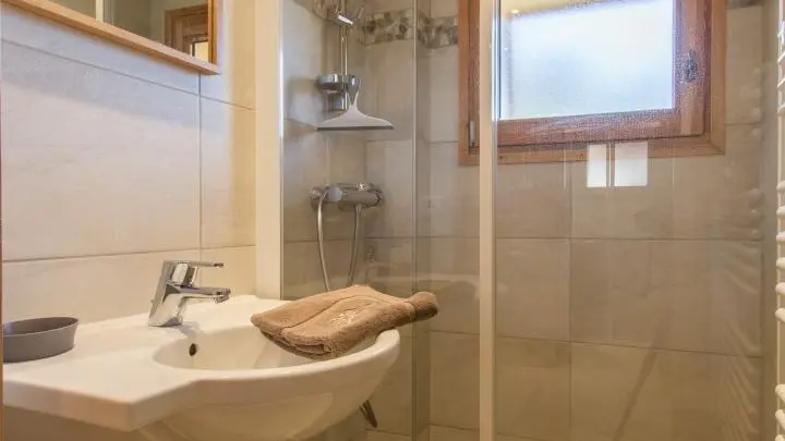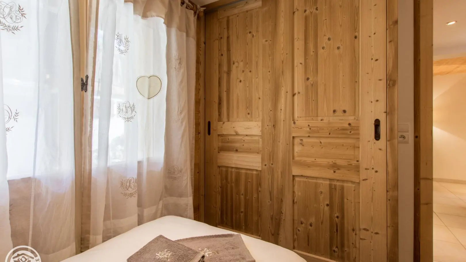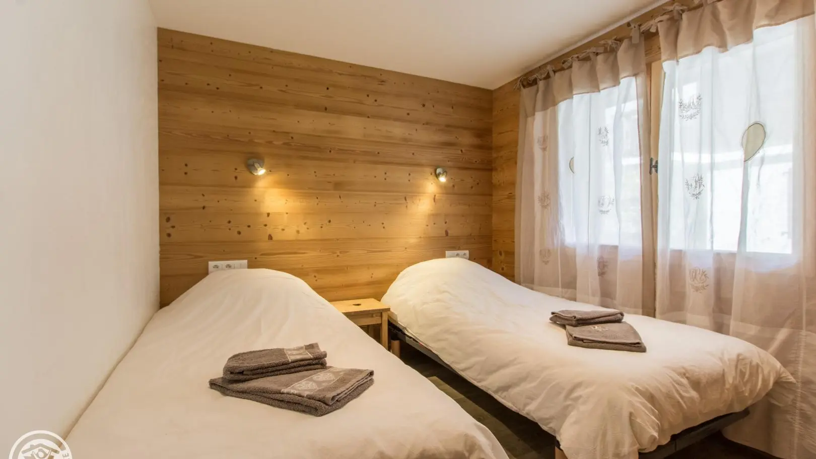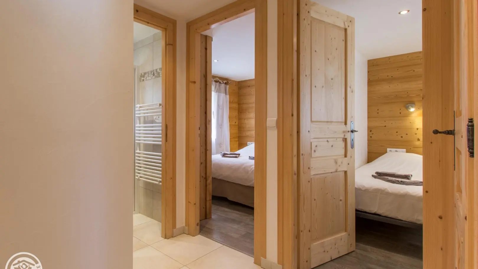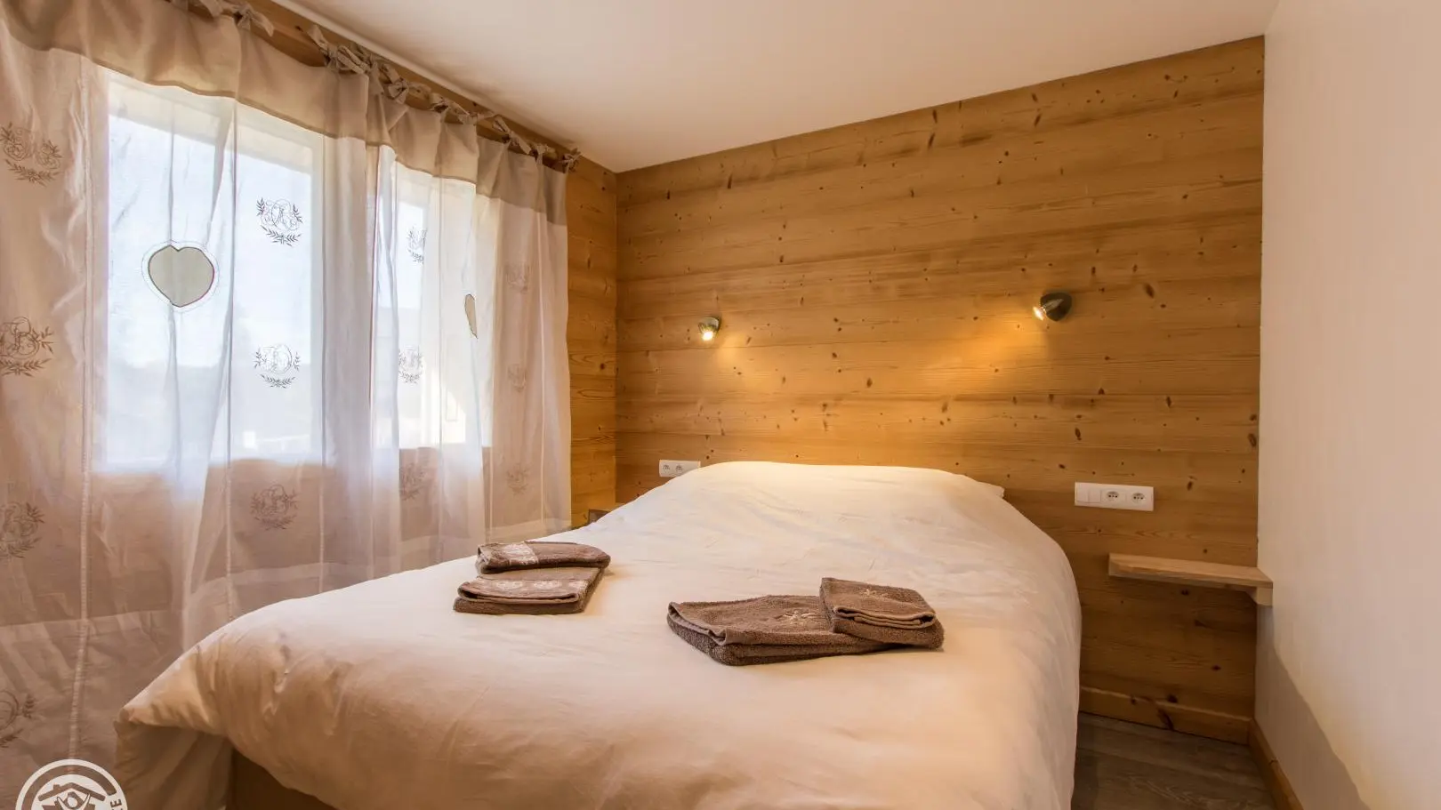 Rez-de-chaussée : chambre 1 (1 lit 140x190cm), chambre 2 (2 lits 80x190cm jumelables pouvant créer 1 lit double), petite chambre 3 (2 lits 90x190cm superposés). 2 salles d'eau (douche), wc indépendant. Hall d'entrée. Coin buanderie avec lave-linge et sèche-linge. Balcon avec vue sur le village, terrasse privative avec vue sur les montagnes, salon de jardin, transats, barbecue électrique. Terrain. Parking privatif sur place l'été (chemin en gravier sur les derniers mètres), stationnement à 80m en cas de neige. Casier à skis.