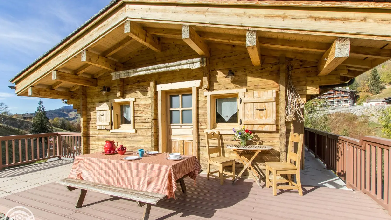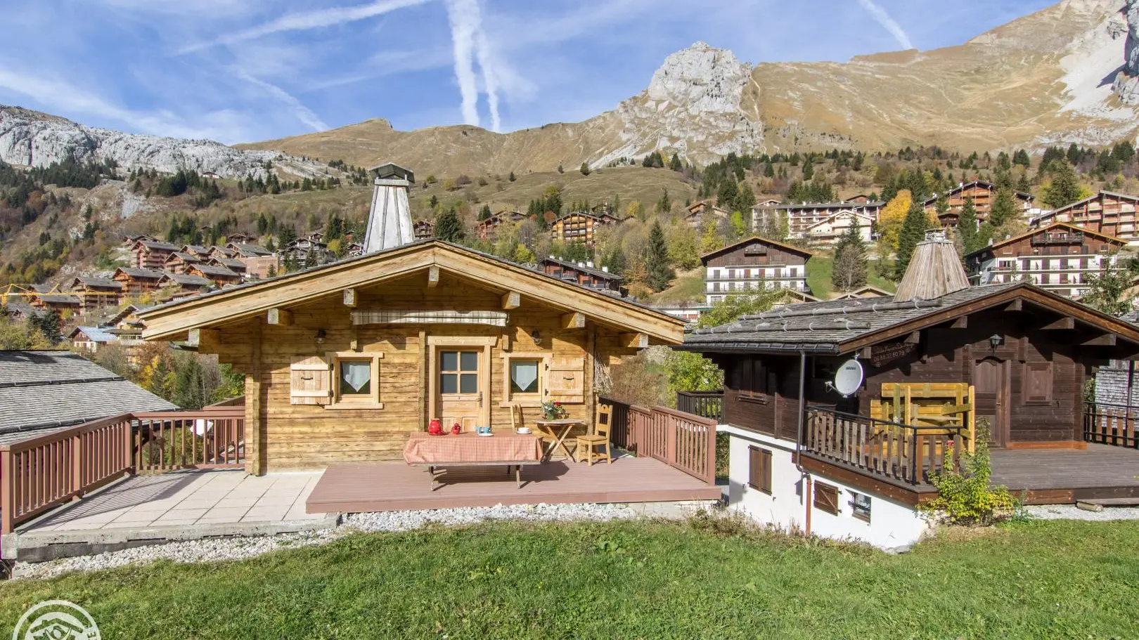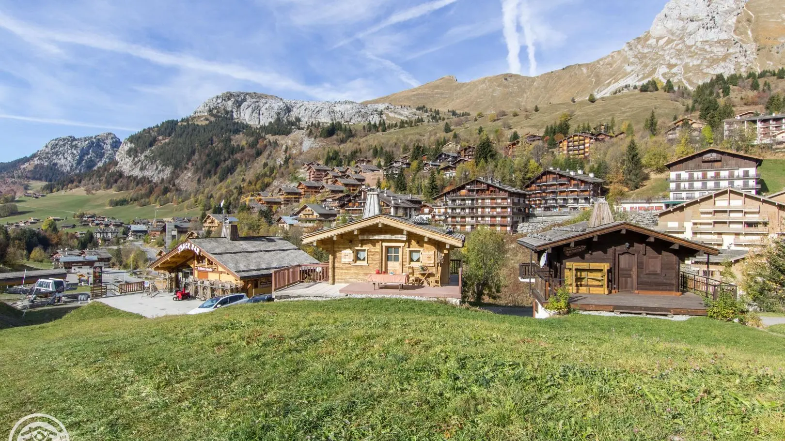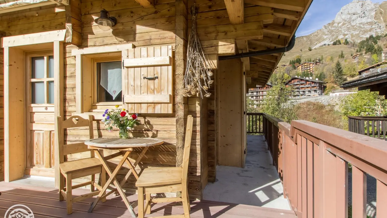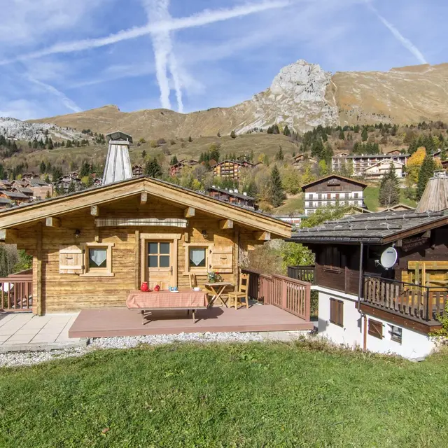 Chalet indépendant de 65m² aménagé sur 2 niveaux avec terrasse privative. Emplacement idéal été comme hiver, face aux montagnes, sur les pistes l'hiver. (piste verte à côté du chalet et rassemblement cours ESF à 200 m)