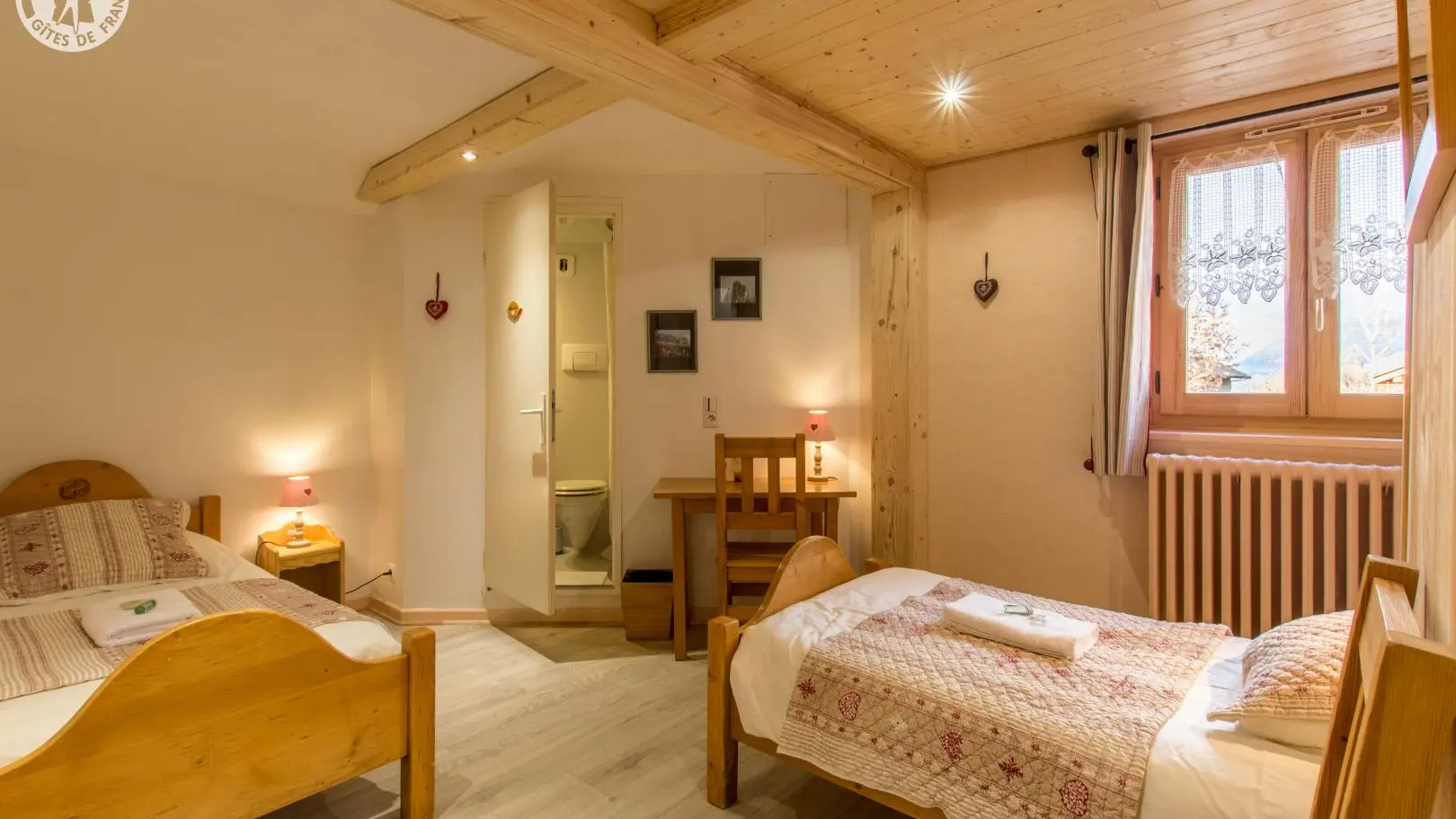 Julien vous accueille au chalet l'Aiglon à Saint-Gervais, dans l'ambiance cosy et chaleureuse de ce vaste chalet rénové et décoré 'à la savoyarde'. A votre disposition, 5 chambres (2 à 4 personnes), avec sanitaires privatifs pour chaque chambre (douche, lavabo, wc). Grande salle vitrée au rez-de-chaussée pour le petit-déjeuner. A votre disposition: cuisine équipée (four, m-ondes) vous permettant de cuisiner en libre accès. Salon commun accessible à tous les hôtes avec cheminée à l'ancienne, Tv, bibliothèque. Internet wifi. Vaste terrain: 1700m2 d'espace fleuri et gazonné avec une grande terrasse entourent le chalet. Hébergement non fumeur. Centre de Saint-Gervais, GR du Tour du Mt-Blanc et télécabine du Bettex à 1.5km.