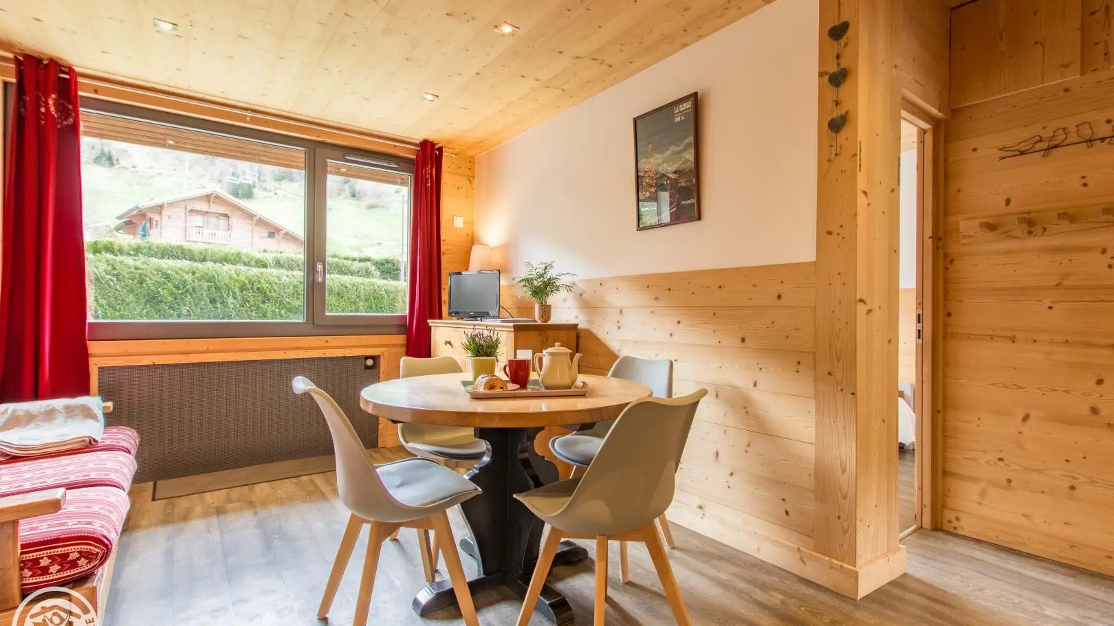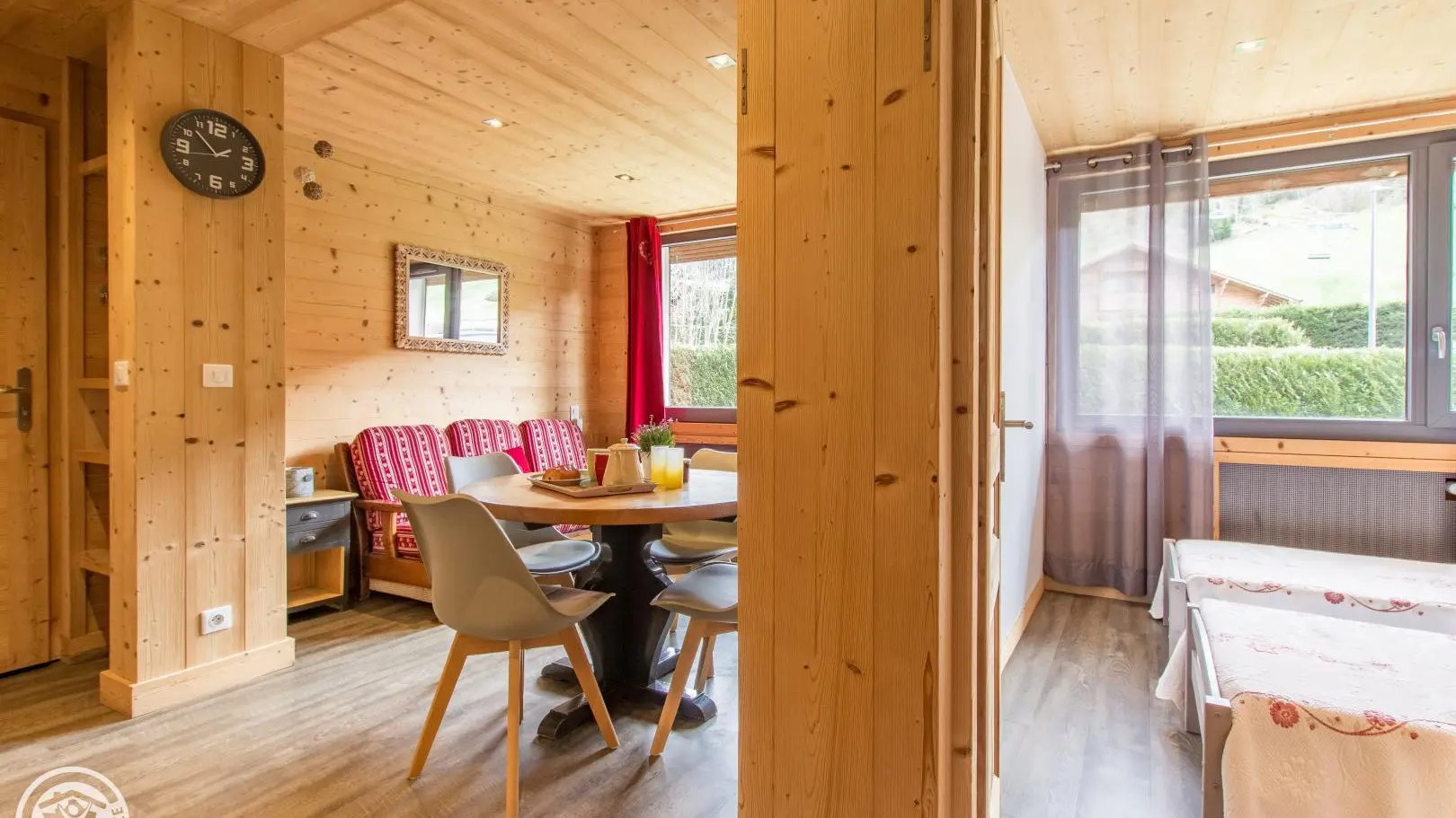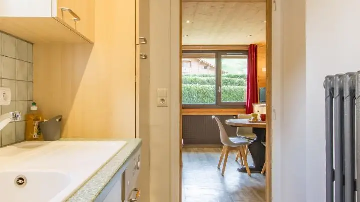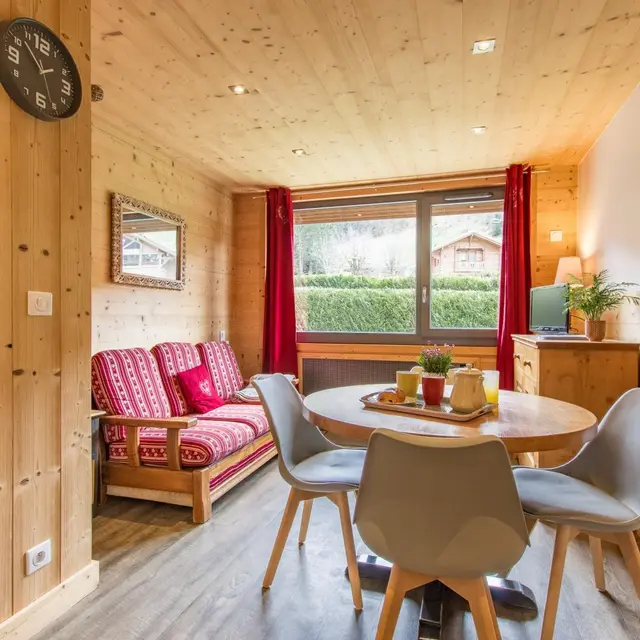 Gîte de 39m² avec 2 chambres et terrasse, aménagé au rez-de-chaussée d'une grande maison idéalement située à 3 minutes à pied du centre de La Clusaz et face aux remontées 'Bossonnet'. La maison comprend également 1 logement propriétaire et 3 autres locations. Entrée indépendante pour le gîte sur le côté de la maison. Cuisine équipée : réfrigérateur, lave-vaisselle, four, micro-ondes... Séjour avec table repas, canapé, télévision.