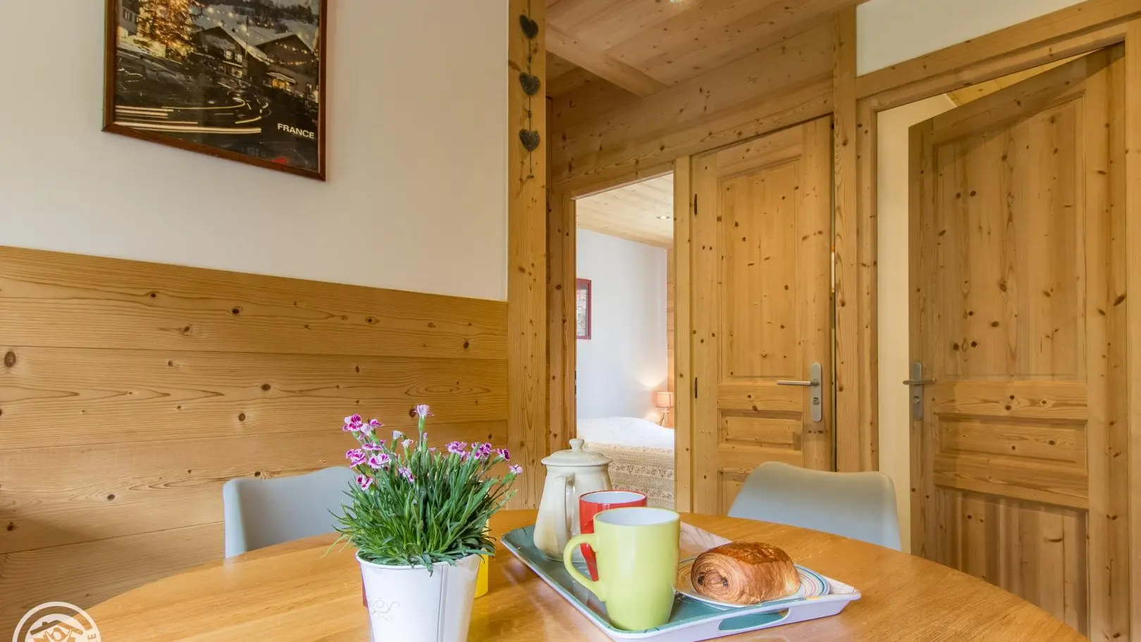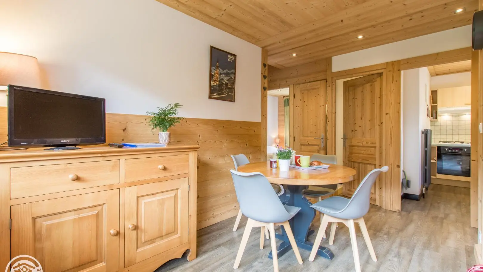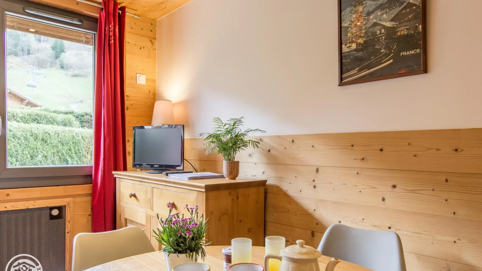Gîte de 39m² avec 2 chambres et terrasse, aménagé au rez-de-chaussée d'une grande maison idéalement située à 3 minutes à pied du centre de La Clusaz et face aux remontées 'Bossonnet'. La maison comprend également 1 logement propriétaire et 3 autres locations. Entrée indépendante pour le gîte sur le côté de la maison. Cuisine équipée : réfrigérateur, lave-vaisselle, four, micro-ondes... Séjour avec table repas, canapé, télévision.