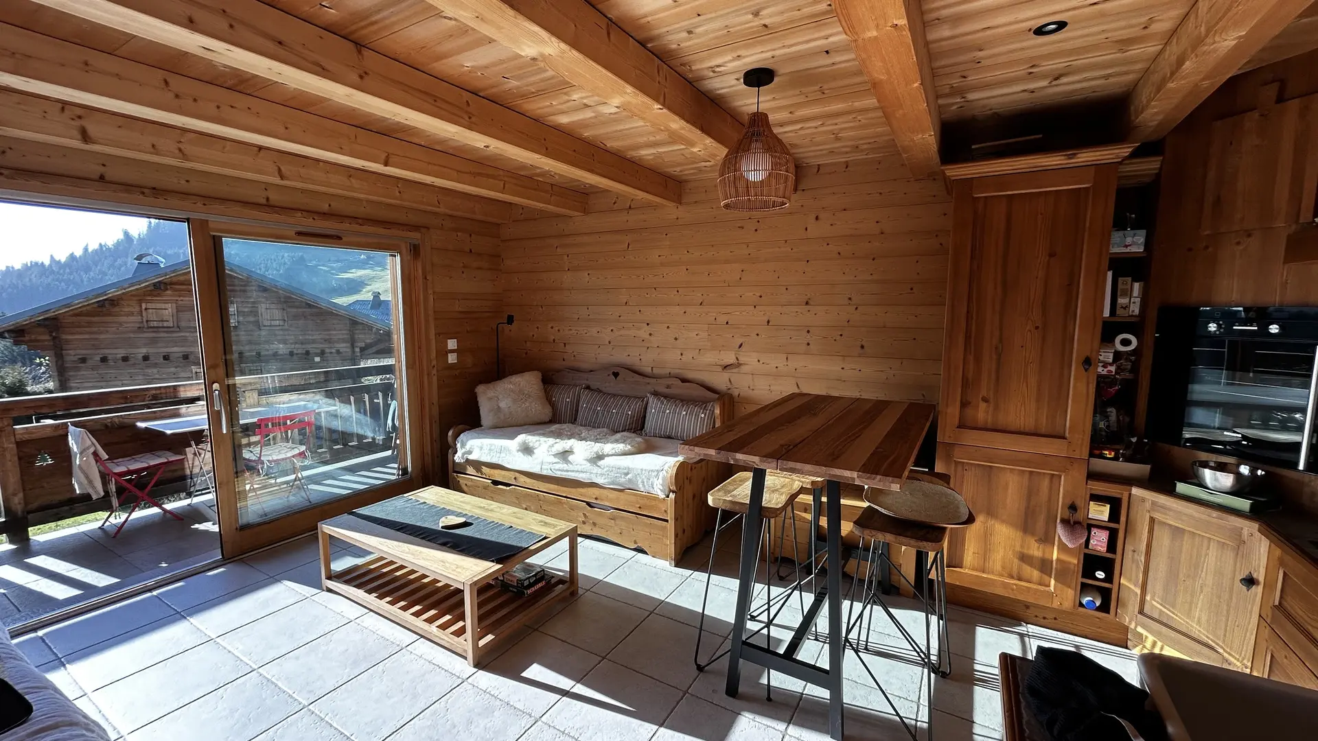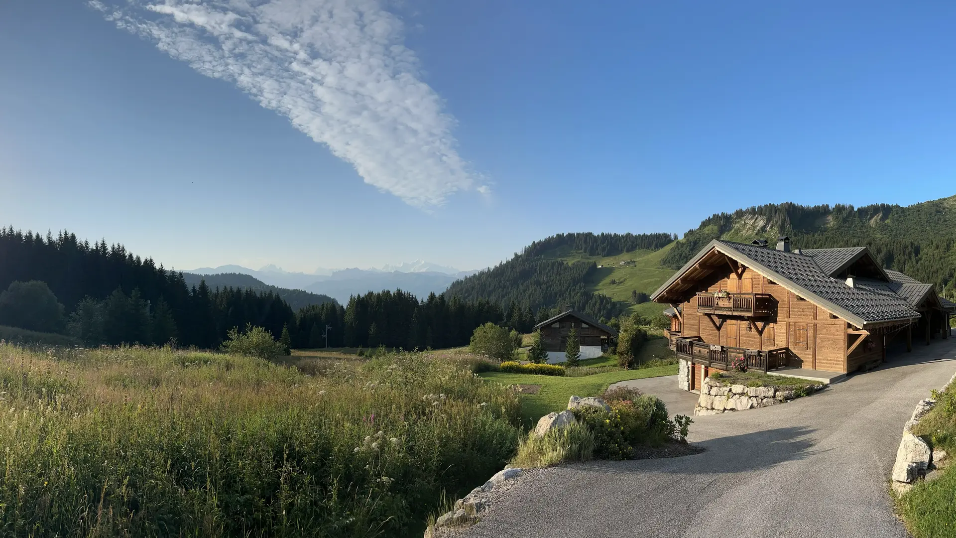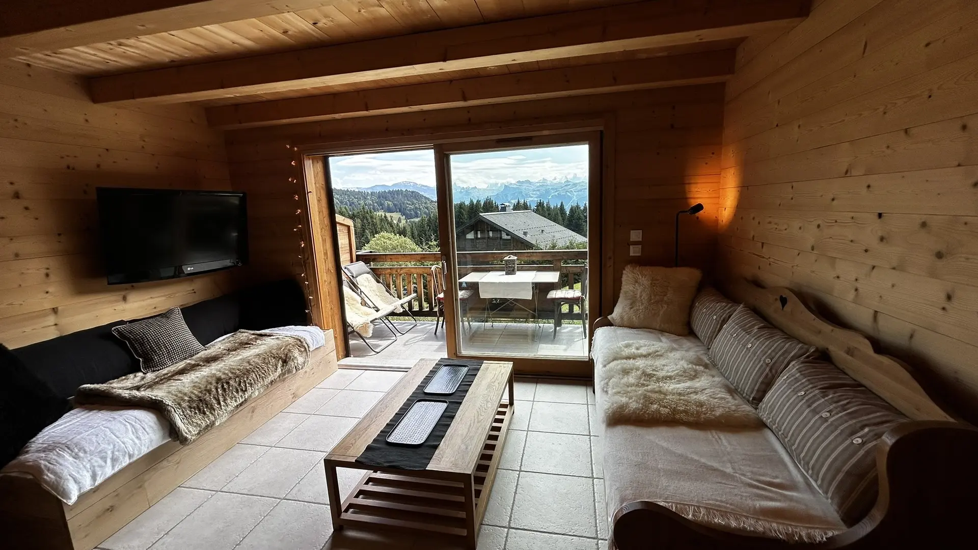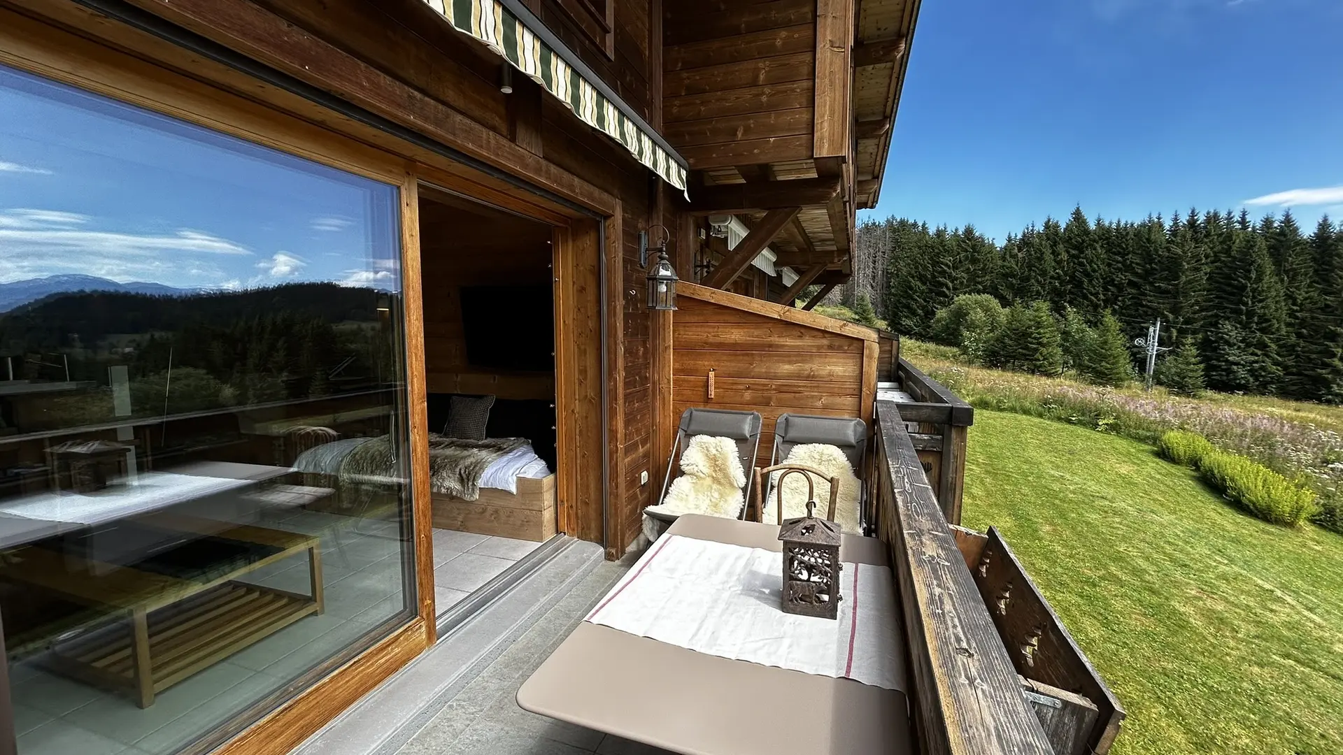 Appartement de plain pied dans une petite résidence de cinq appartements de type chalet avec vue directe sur le Mont Blanc.