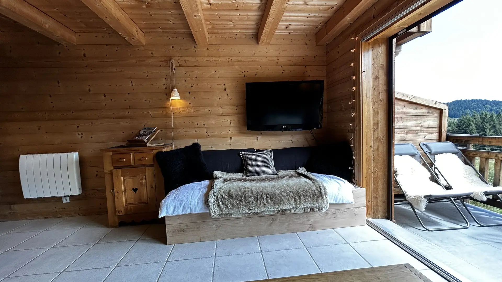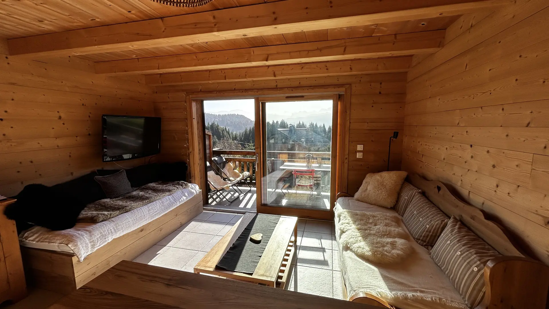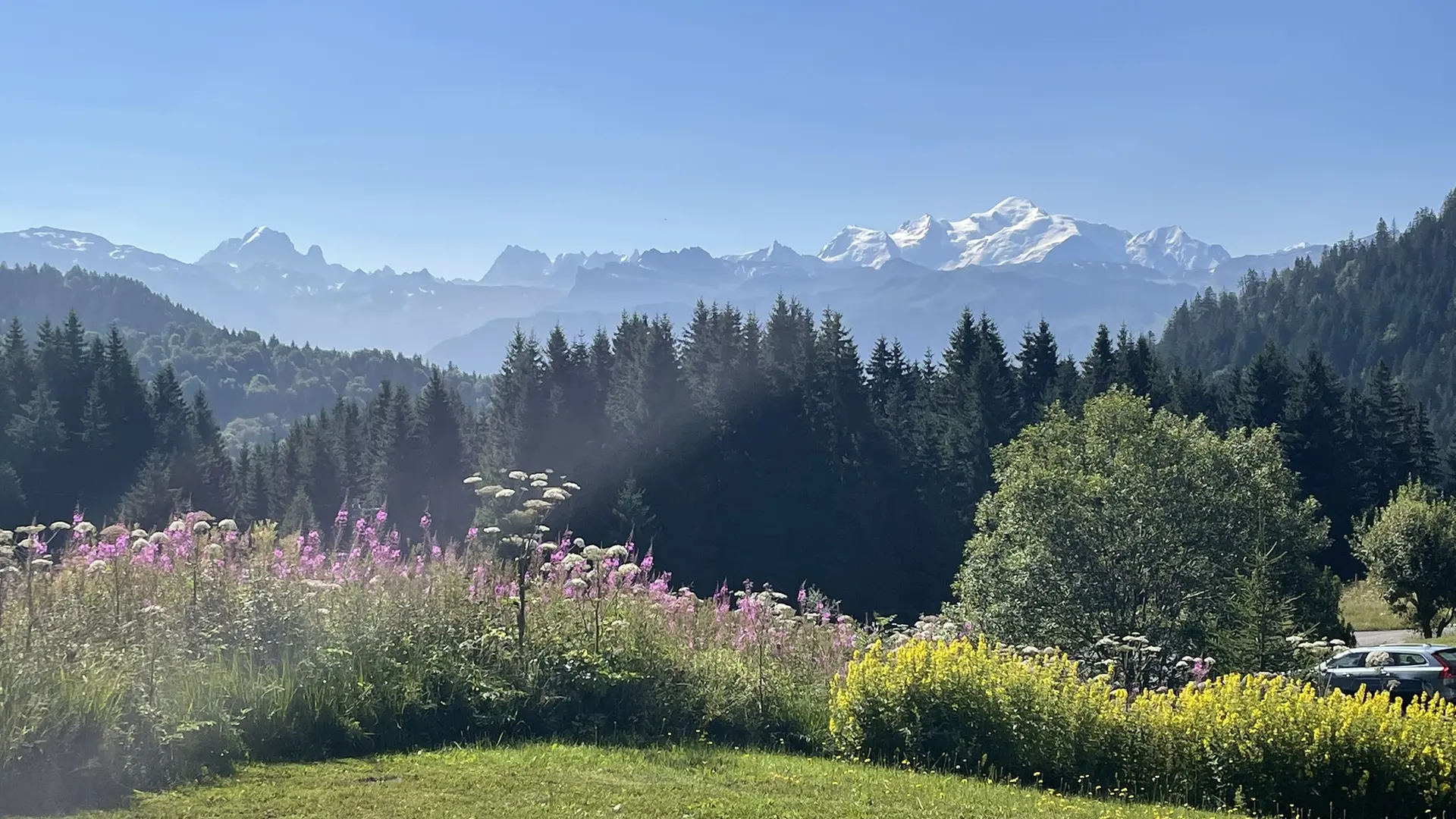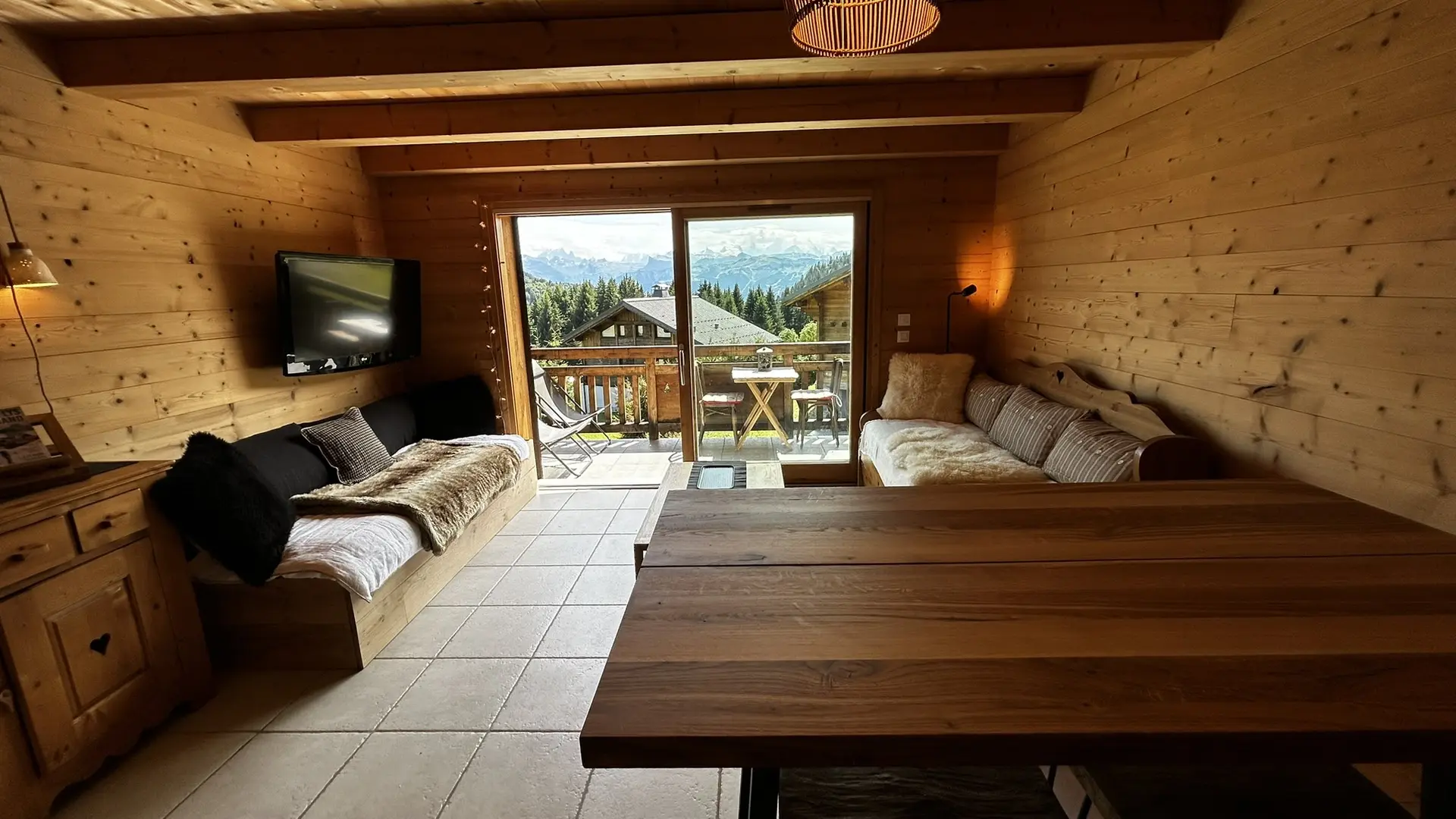 Appartement de plain pied dans une petite résidence de cinq appartements de type chalet avec vue directe sur le Mont Blanc.