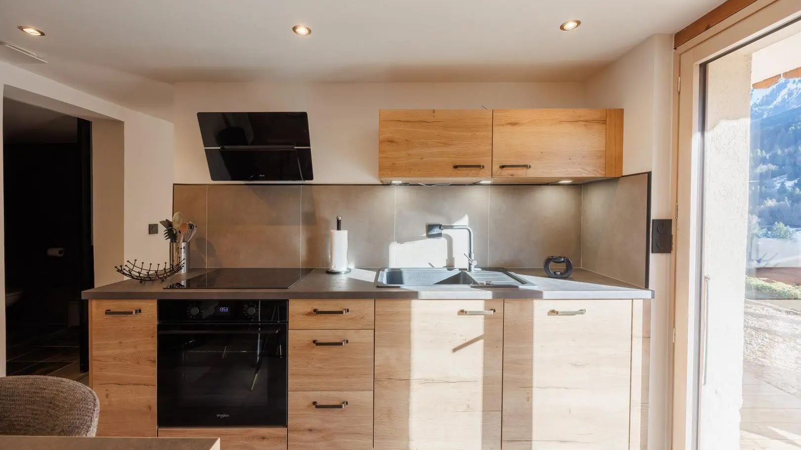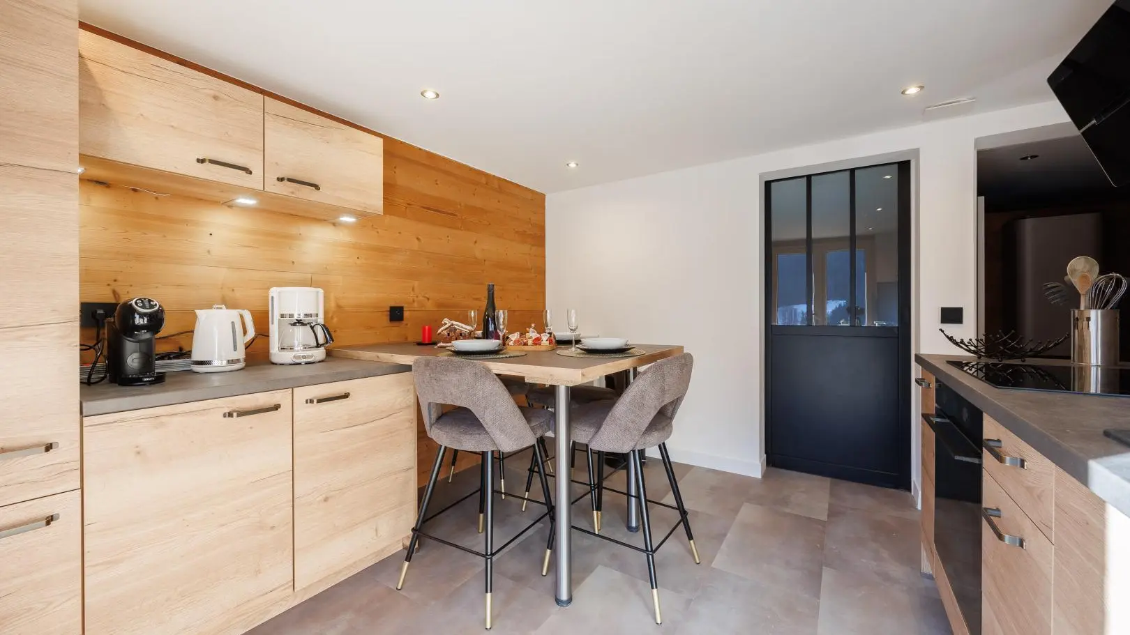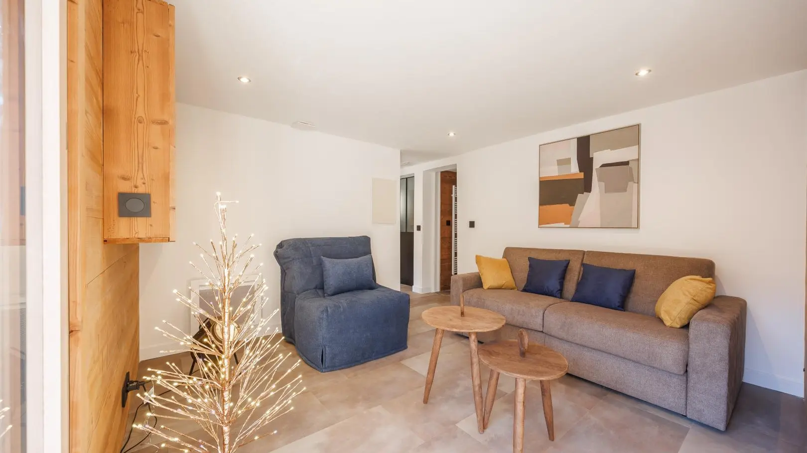 Cuisine équipée avec table pour les repas. Séjour séparé avec canapé convertible type rapido (couchage possible 2 personnes), 1 lit 1 personne, télévision, accès à la terrasse.