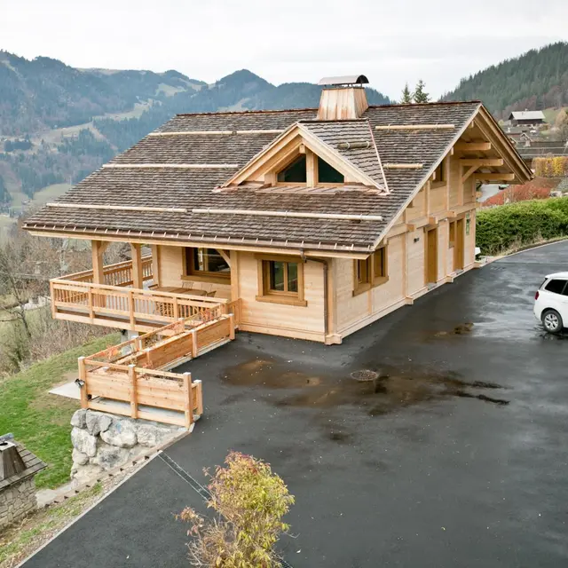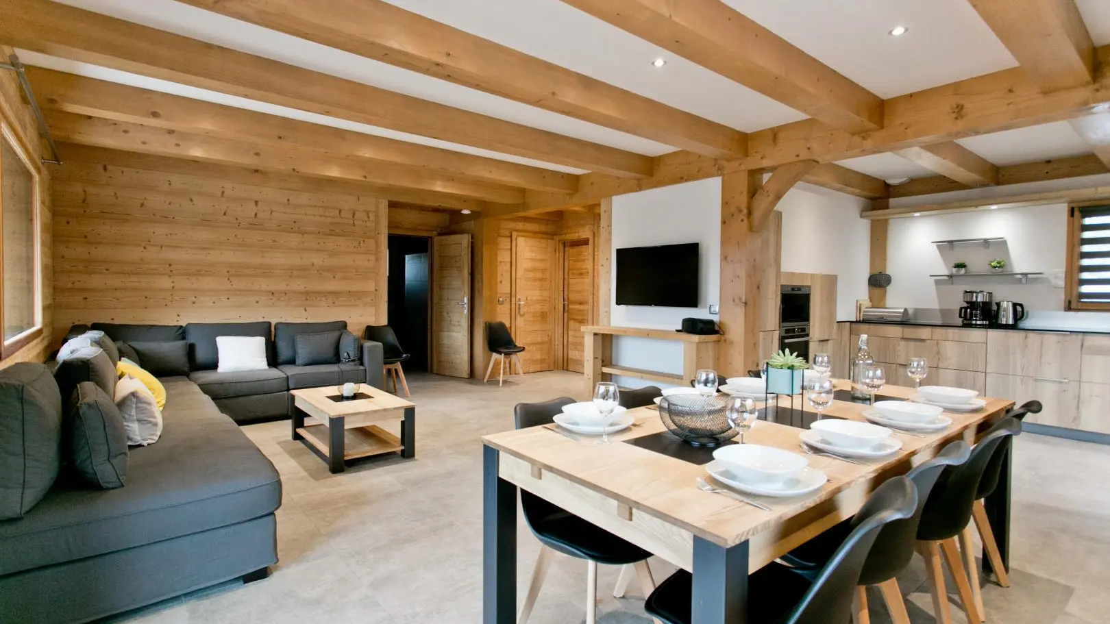 Chalet indépendant de 130m² (+ 15m² mansardés) aménagé sur 2 niveaux, offrant une magnifique vue sur les montagnes. Exposition sud, secteur calme. Rez-de-chaussée (niveau parking) : hall d'entrée avec placard, grande pièce à vivre avec cuisine ouverte sur séjour - salle à manger, baie-vitrée donnant accès à terrasse et balcon, télévision. Chambre 1 (1 lit 160x200cm), salle d'eau avec douche à l'italienne, wc indépendant, buanderie/local ski avec lave et sèche-linge, sèche-chaussures électrique (peut-être utilisé comme entrée dans le chalet). A l'étage : chambre 2 (1 lit 140x200cm, télévision), chambre 3 (2 lits 90x190cm superposés + 1 90x190cm, balcon), chambre 4 (2 lits 90x200cm jumelables), espace détente avec TV /jeux(canapé convertible 130x190cm, télévision), salle d'eau (douche), wc indépendant. Draps fournis, serviettes en location. Parking privatif dont 2 places couvertes. Accès internet par wifi. Animal accepté avec supplément sur demande (caution supplémentaire demandée).