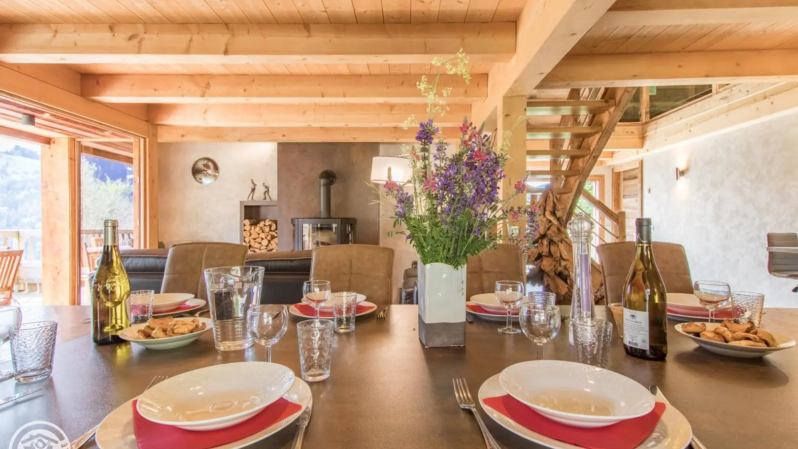 Secteur calme et préservé pour cette magnifique ancienne ferme traditionnelle entièrement restaurée située au milieu des prés ! 205m² (+ 11m² mansardés) aménagés sur 2 niveaux. Accès par la terrasse couverte Est, idéale pour le petit-déjeuner. Rez-de-chaussée du chalet : vestiaire, cuisine entièrement équipée ouverte sur le séjour, grande table pour les repas, cheminée, espace télévision (connectée). Accès à la terrasse Sud et la terrasse Ouest (coucher de soleil), toutes les 2 offrant un magnifique panorama sur les montagnes.