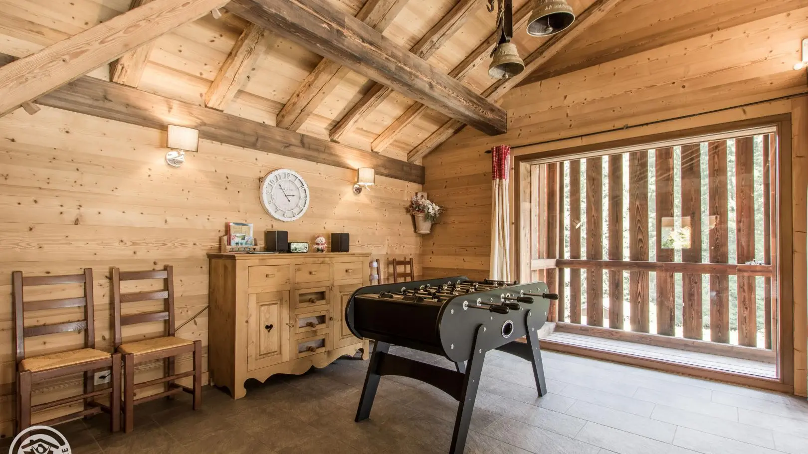 Au 1er étage : grande pièce de vie de 110m² avec cuisine intégrée ouverte sur salle à manger et séjour (poêle à granulés, baby-foot). Accès terrasse et balcon sur le même niveau. 1 wc indépendant. A l'étage supérieur, grande mezzanine , 2 chambres (chambre 6 et 7) avec chacune 2 lits 90x200 jumelables, accès balcon. Salle de bains (baignoire), wc. Garage pour 2 voitures avec aménagement pour le ski (sèche-chaussures, rack skis), parking. Buanderie avec lave + sèche-linge et réfrigérateur supplémentaire.