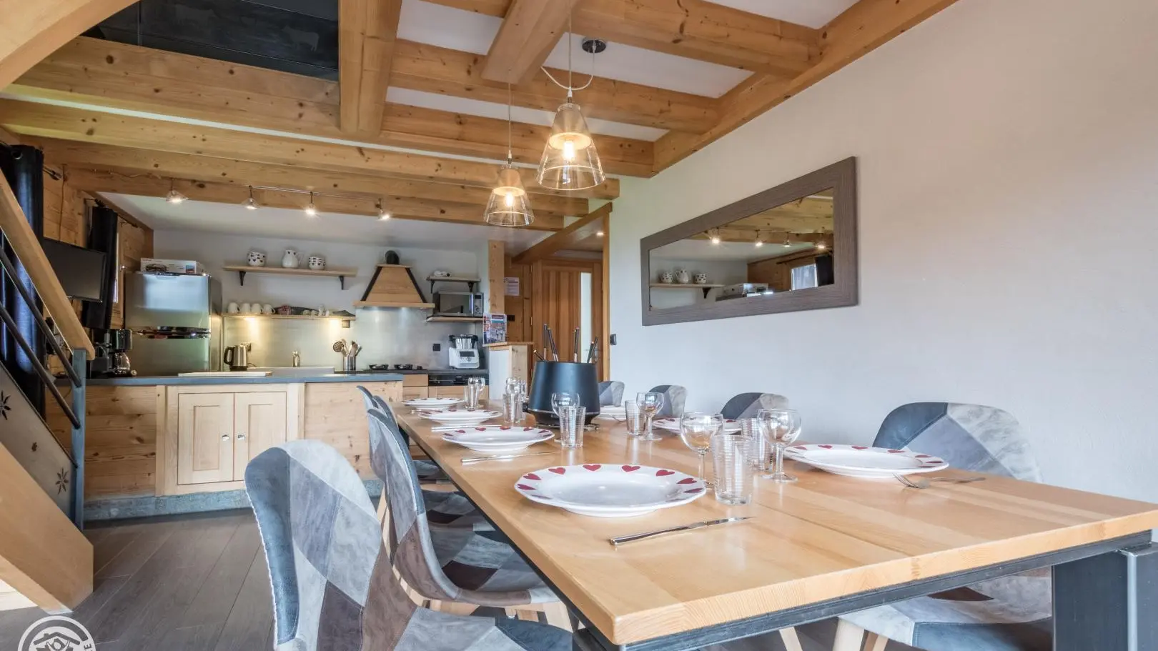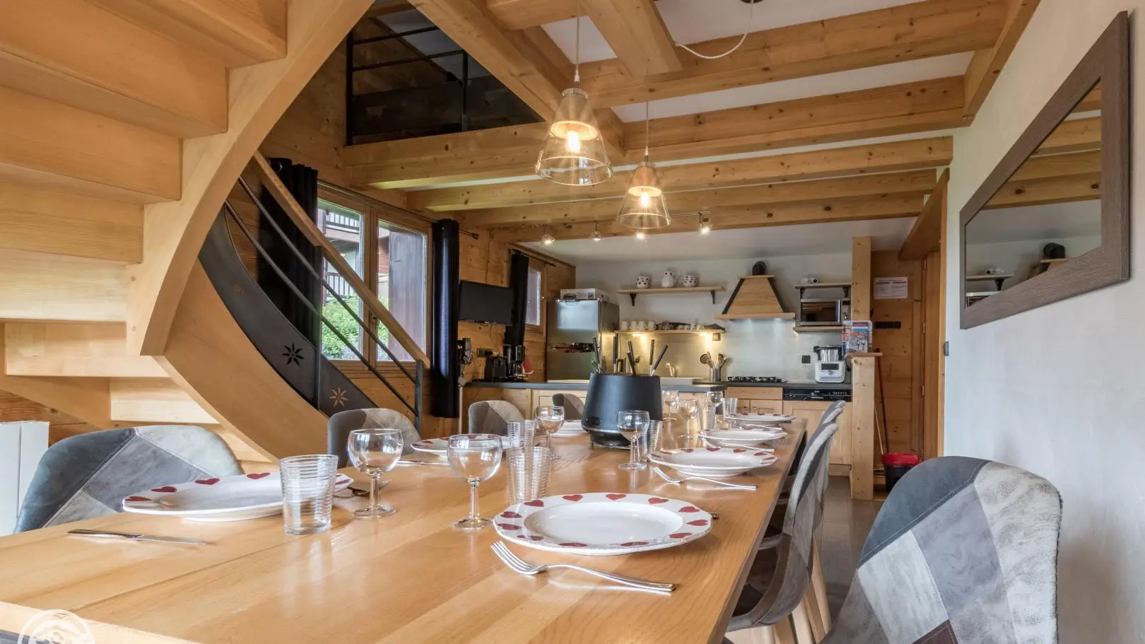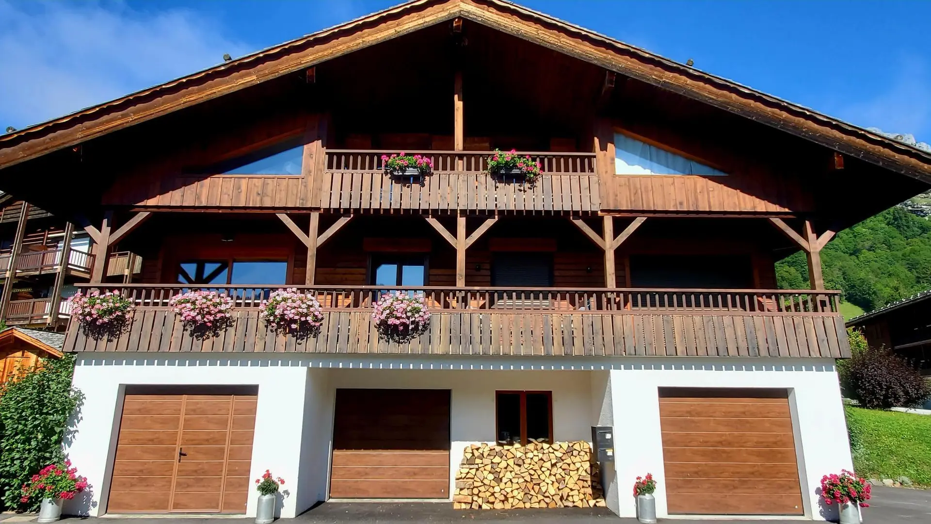 Face aux montagnes du Chinaillon (Le Grand-Bornand), chalet comprenant une autre location en mitoyenneté. Gîte (86m² + 14m² mansardés) aménagé sur 2 niveaux dans une belle ambiance mêlant ancien bois, pierre et modernité. Entrée indépendante. 1er étage: cuisine/salle à manger avec accès à terrasse et au jardin sur le même niveau, balcon, Chambre 1 (1 lit 180 pouvant être séparé en 2x90), salle d'eau, WC indépendant. A l'étage: séjour en mezzanine + coin lecture, Chambre 2 (2 lits 90 jumelables, 2 lits 90 superposés, salle d'eau/WC), Chambre 3 (1 lit 140, 1 lit 90, salle d'eau, balcon). Mobilier de jardin, barbecue. Table de ping-pong et balançoire l'été. Parking privé. Local skis/vélos. Ski: Grand-Bornand / Chinaillon 600m, fond sur place. Navettes devant le chalet. Lac d'Annecy (baignade) 32km. Nombreuses et randonnées au départ du gite.