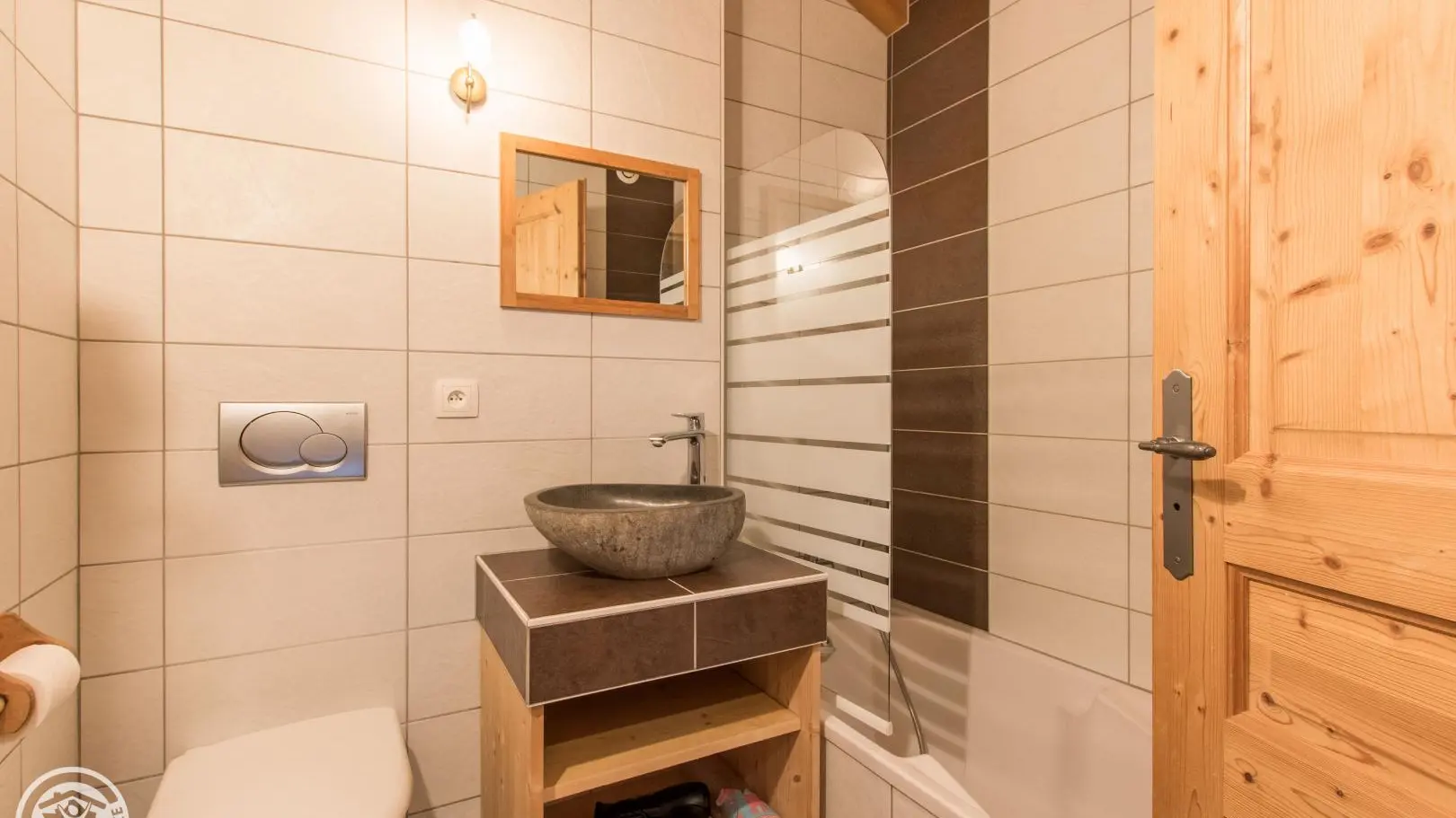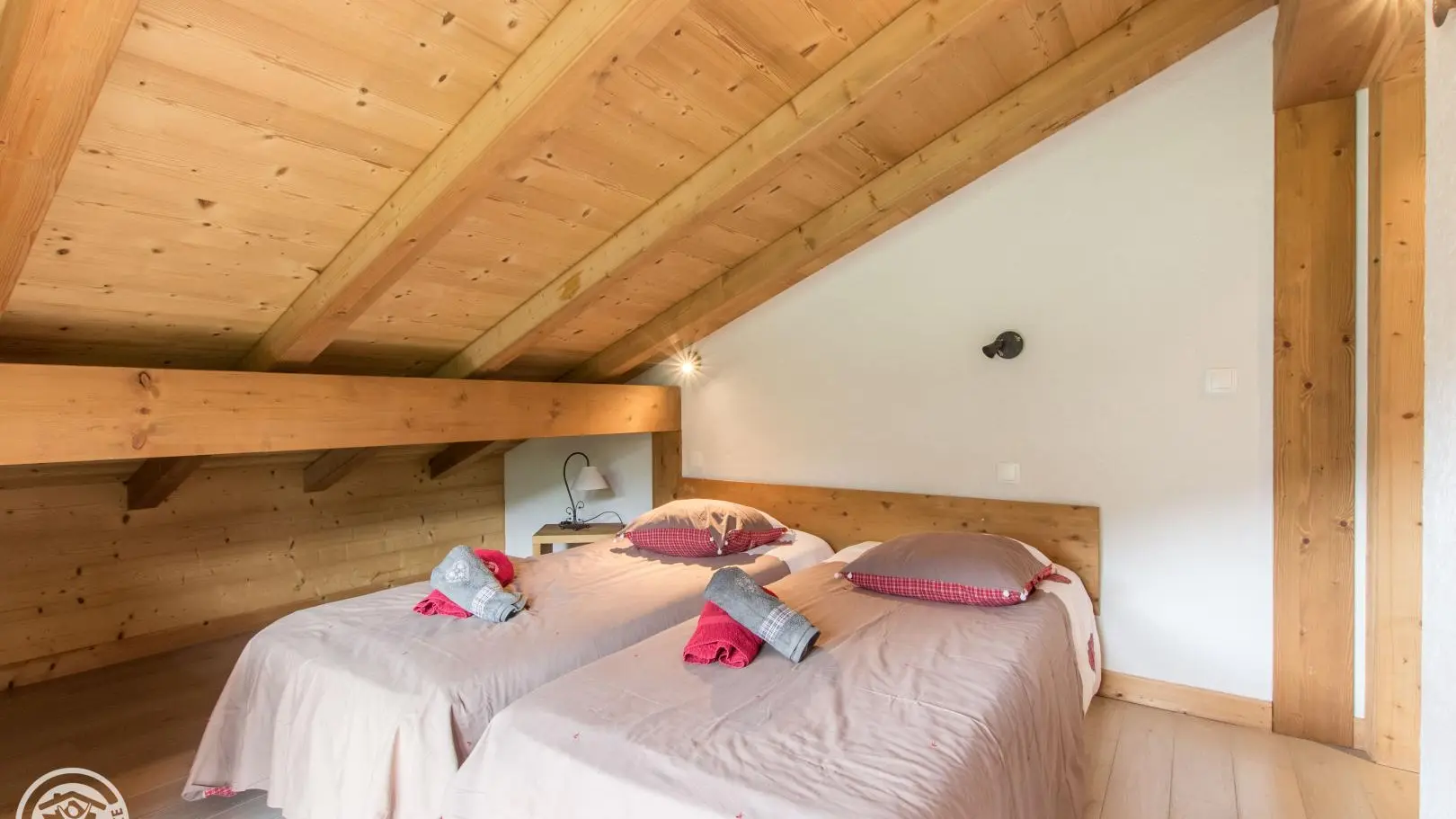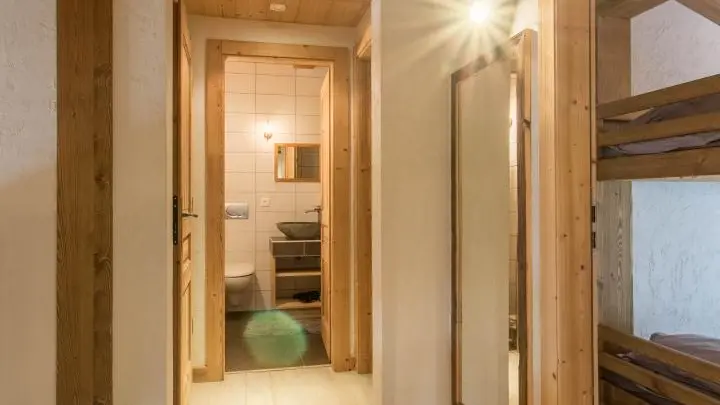Au 2ème: 5 chambres avec pour chacune: 2 lits 90x200cm (dont une petite chambre où les lits sont superposés), salle d'eau (douche) avec wc + salle de bains (baignoire) avec wc.